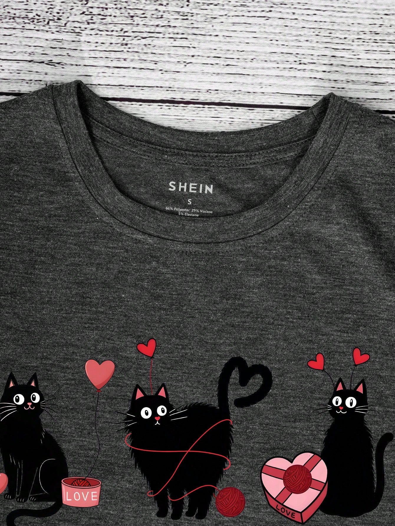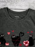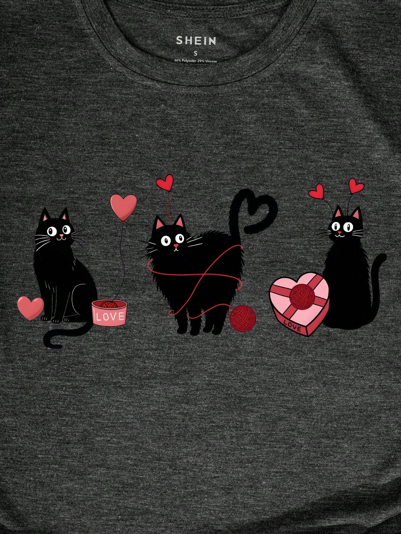 Love Feline Style: Black Cat Graphic T-Shirt for Valentine's Day