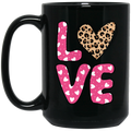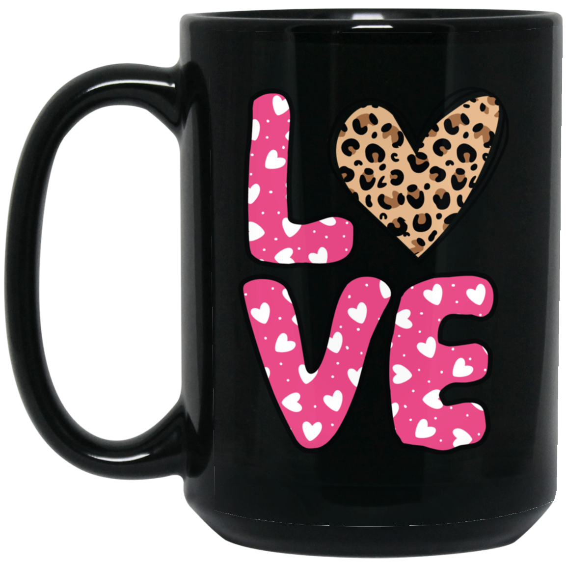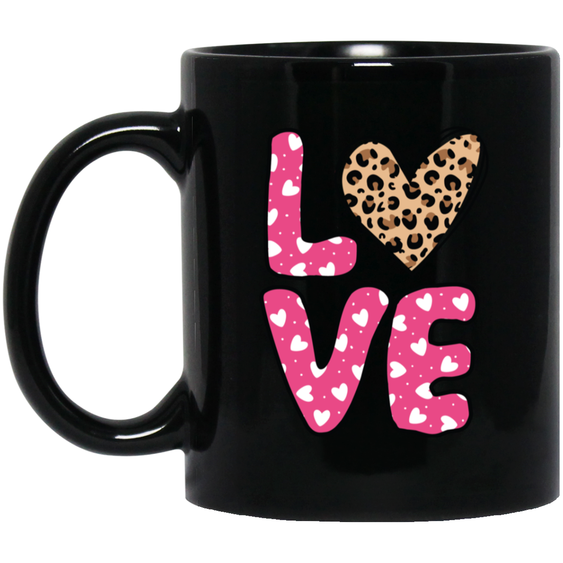 Love Heart Design, Leopard Pattern, Valentine's Day Black Mug