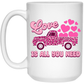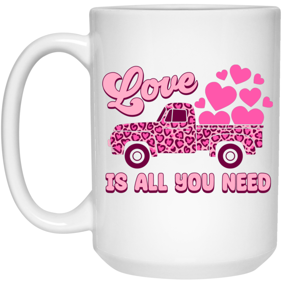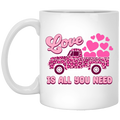 Love Is All You Need, Truck Drive Heart, Car Bring My Love, Valentine's Day, Trendy Valentine White Mug