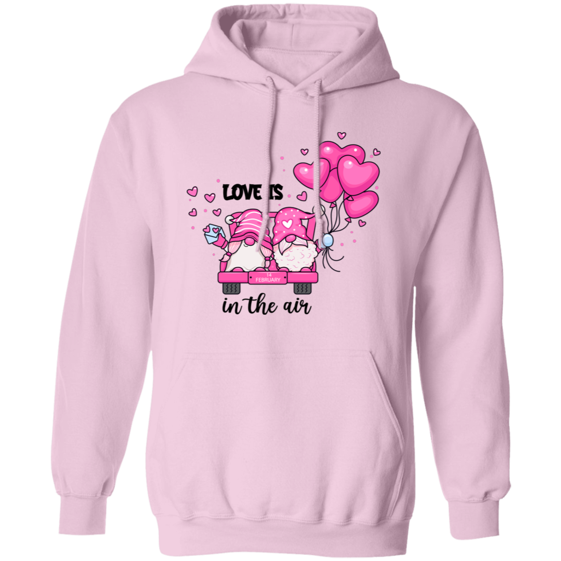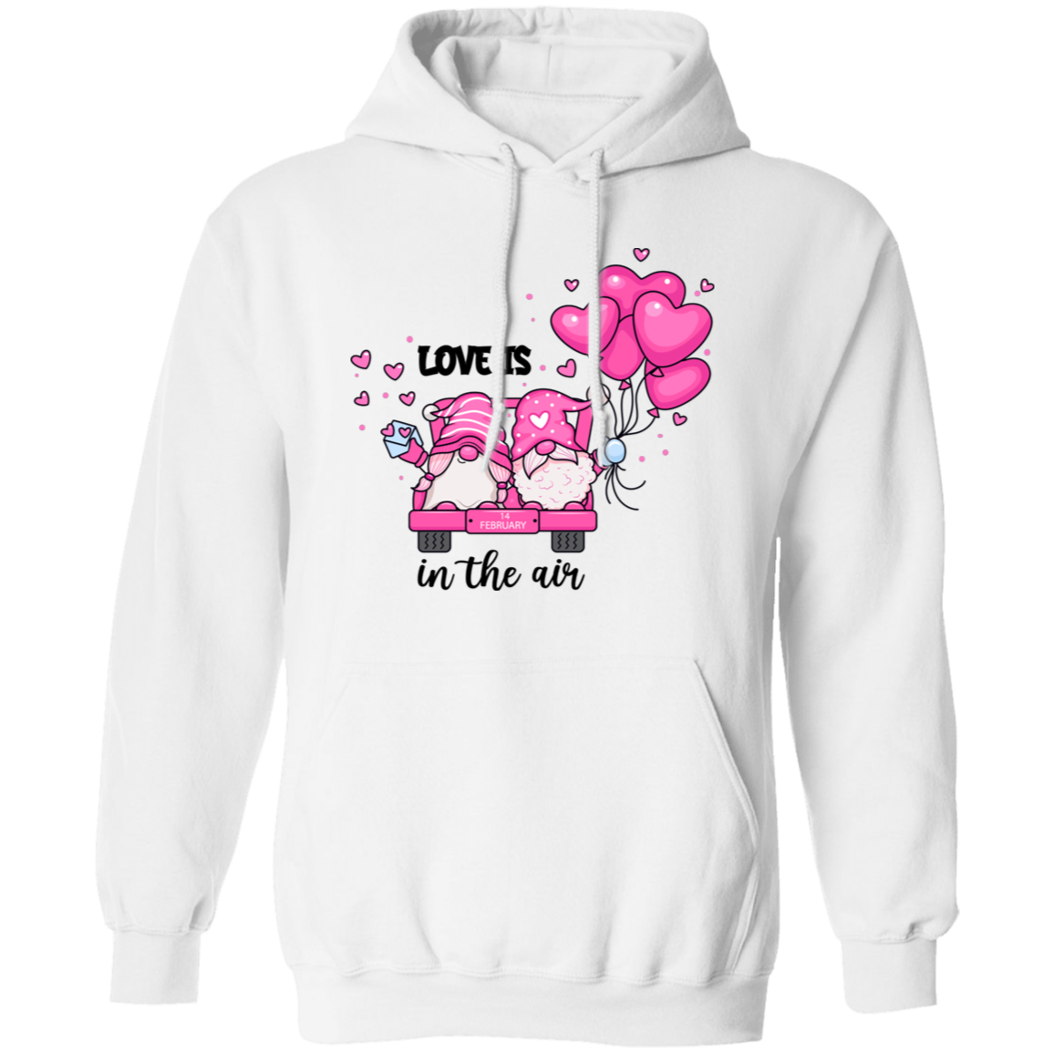Love Is In The Air, Lovely Gnome, Couple Gnome, Pink Balloons, Valentine's Day, Trendy Valentine Pullover Hoodie