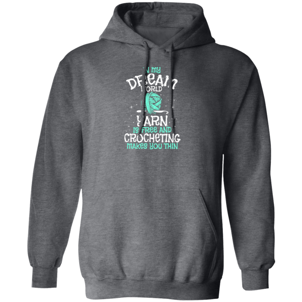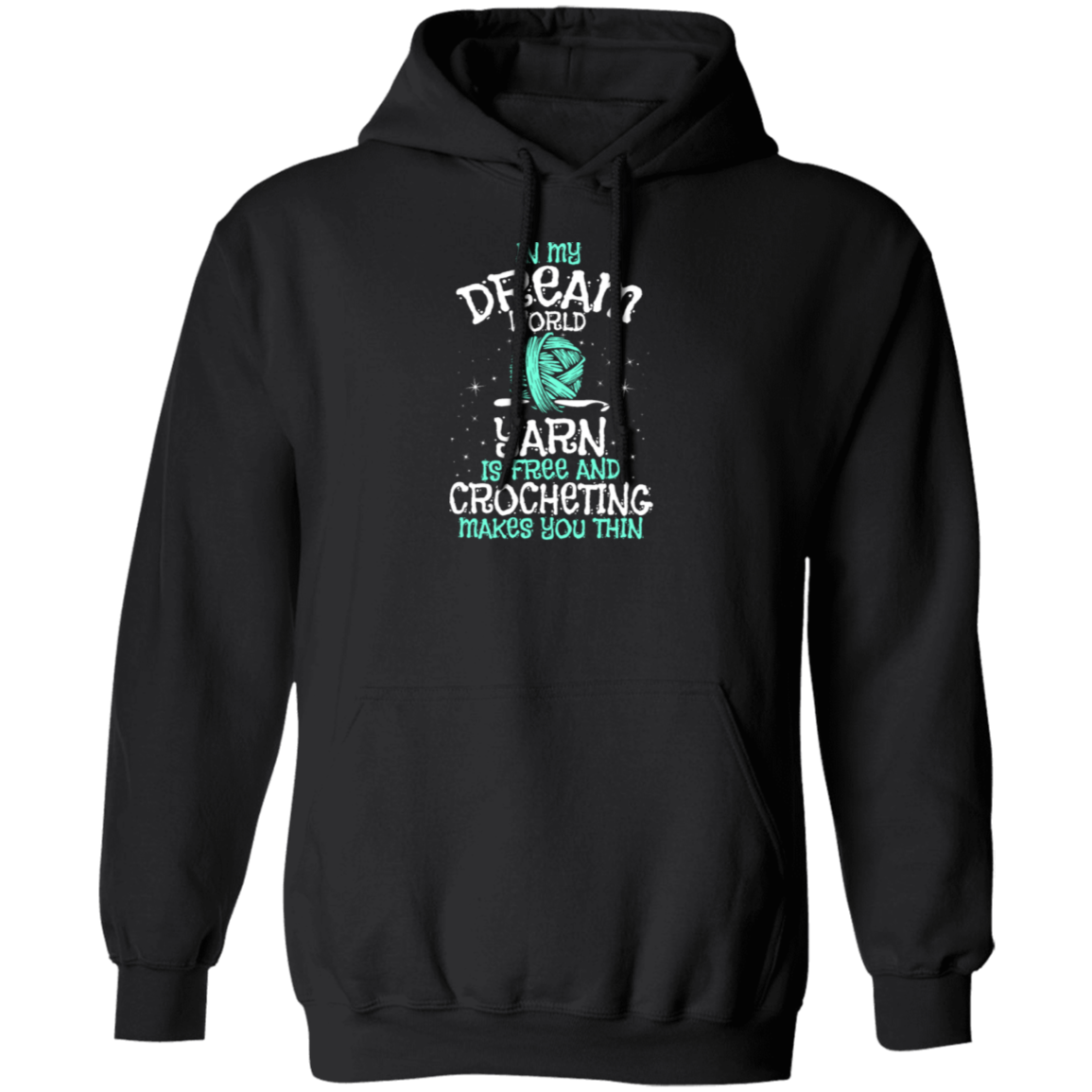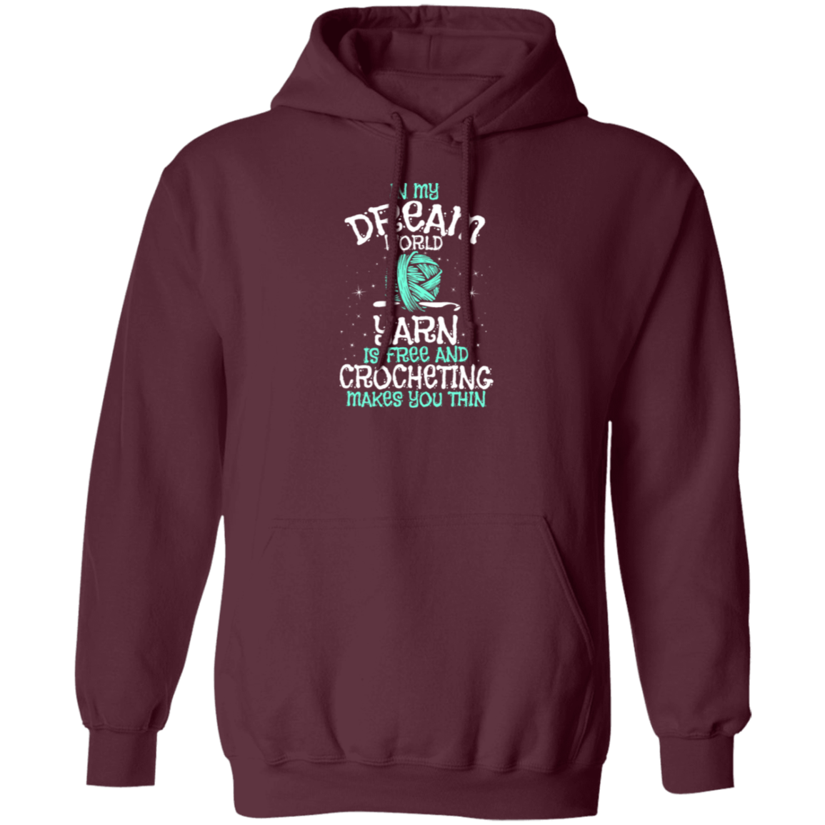 Love To Crocheting, In My Dream World, Yarn Is Free And Crocheting Makes You Thin Pullover Hoodie