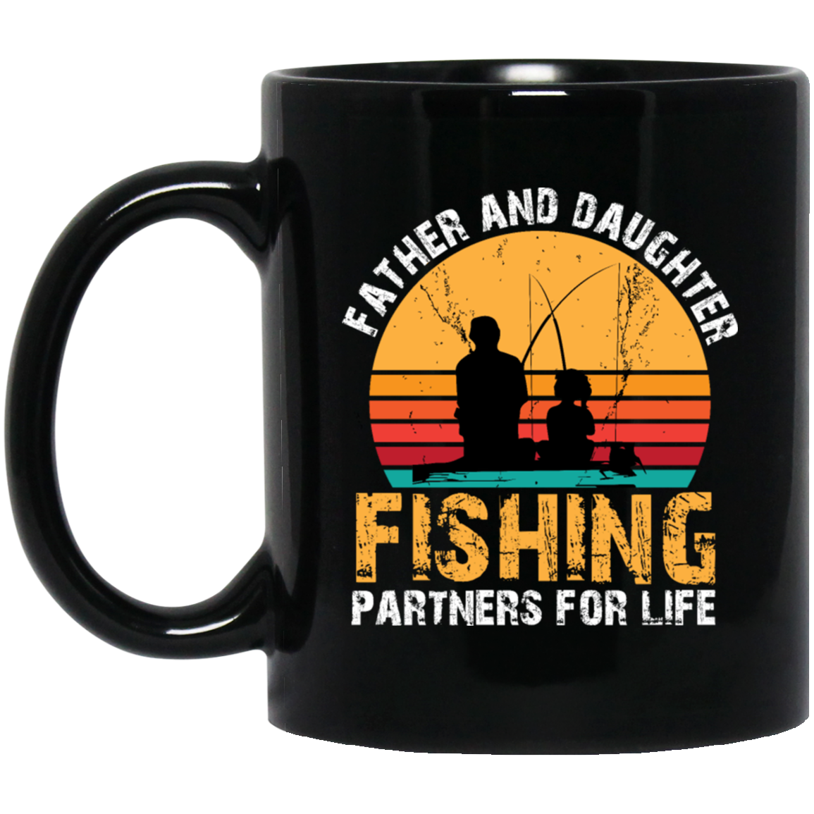 Love To Fishing, Father And Daughter, Partners For Life, Love Family Black Mug