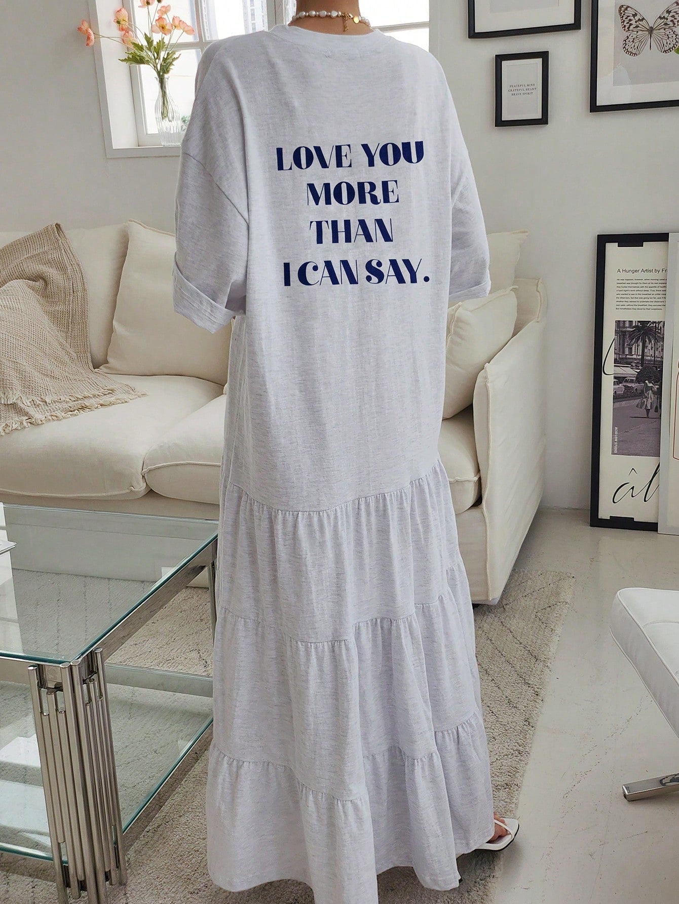 Make a Statement in Style with Long Back Slogan Print Maxi Dress for Women