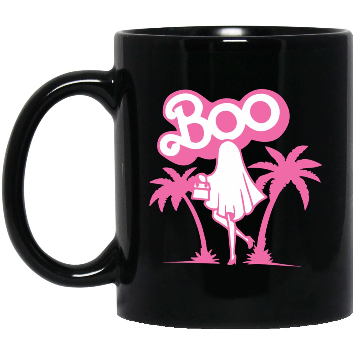 Maliboo, Ghost Boo, Ghost Pink, Pinky Ghost, Woman Boo Black Mug