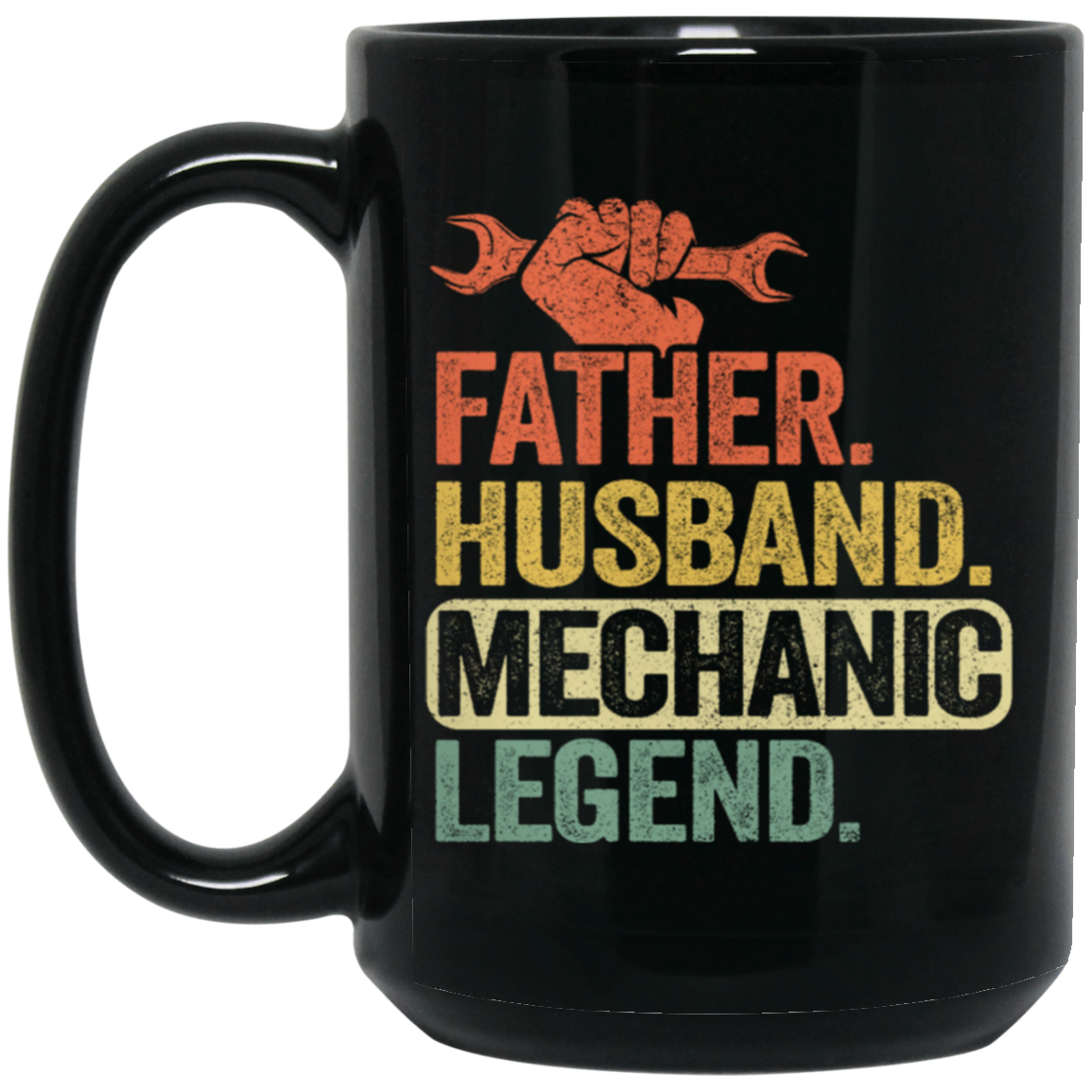 Mechanic Lover, Father Husband Mechanic Legend, Retro Mechanic Black Mug