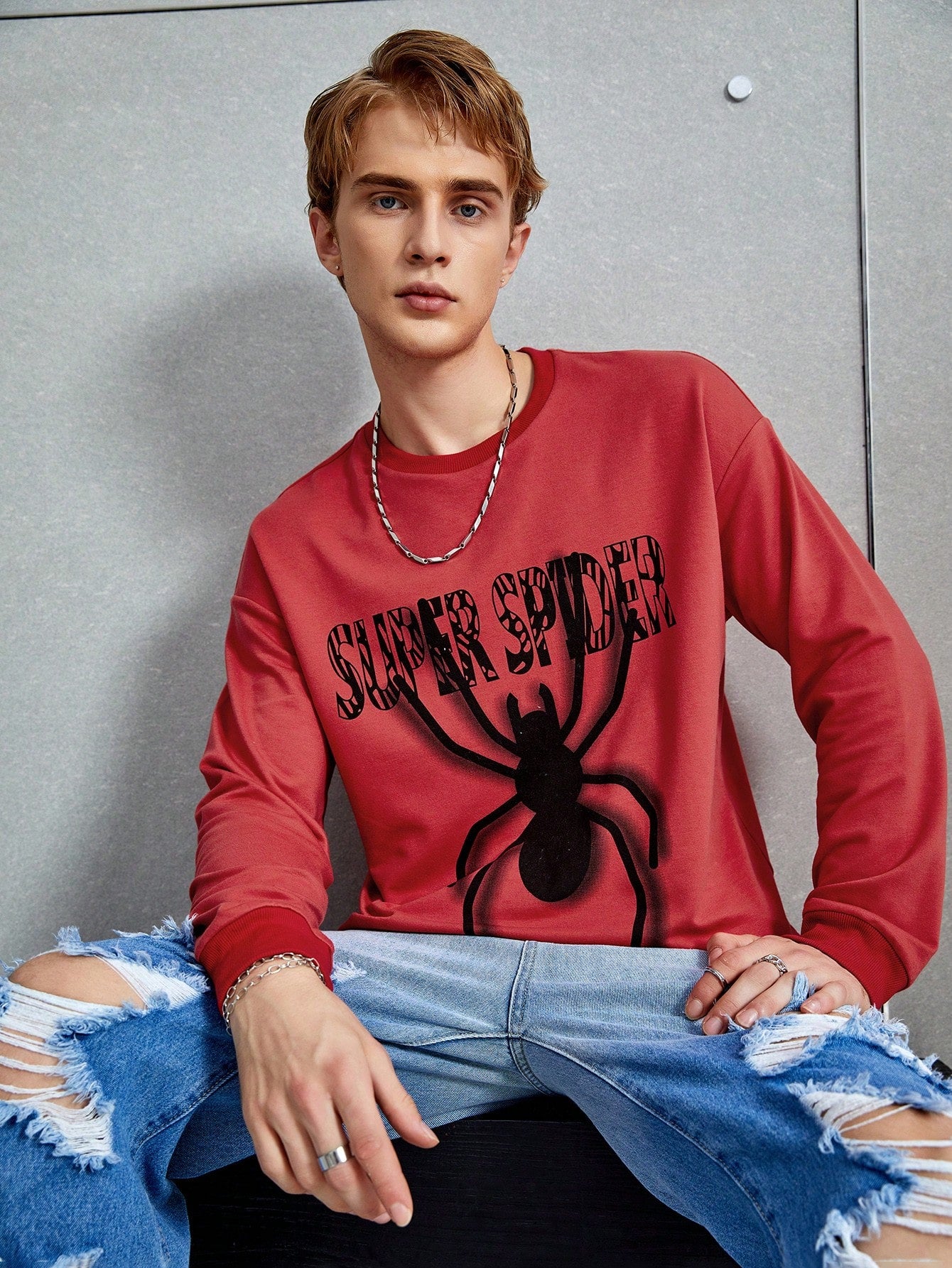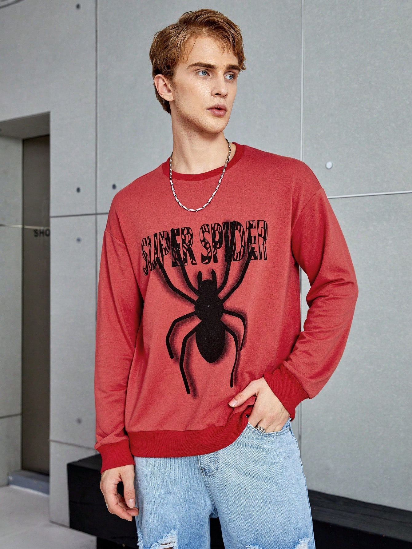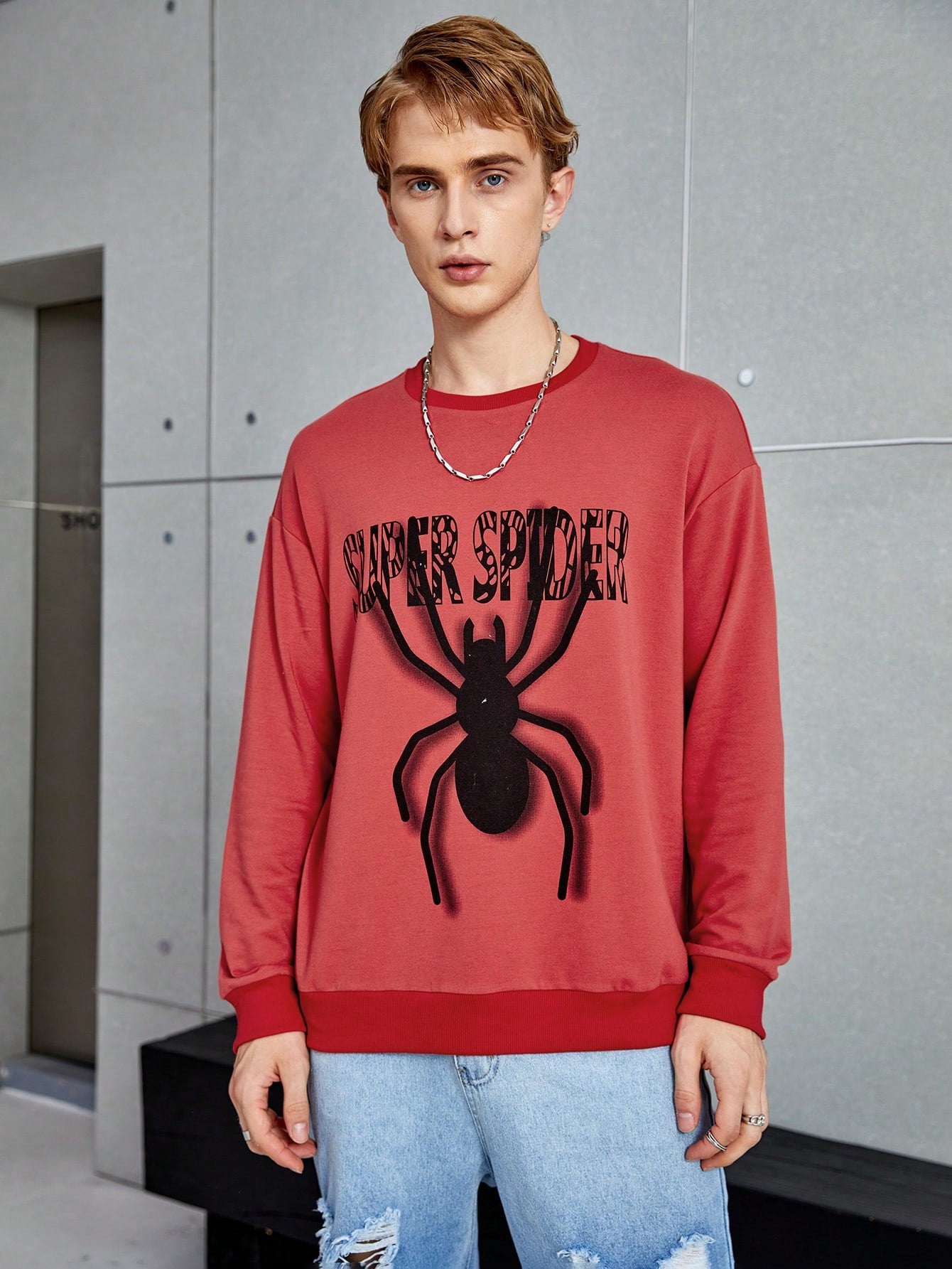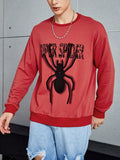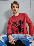 Men's Spider Print Drop Shoulder Pullover: Stay Stylish and Comfortable with Slogan Design