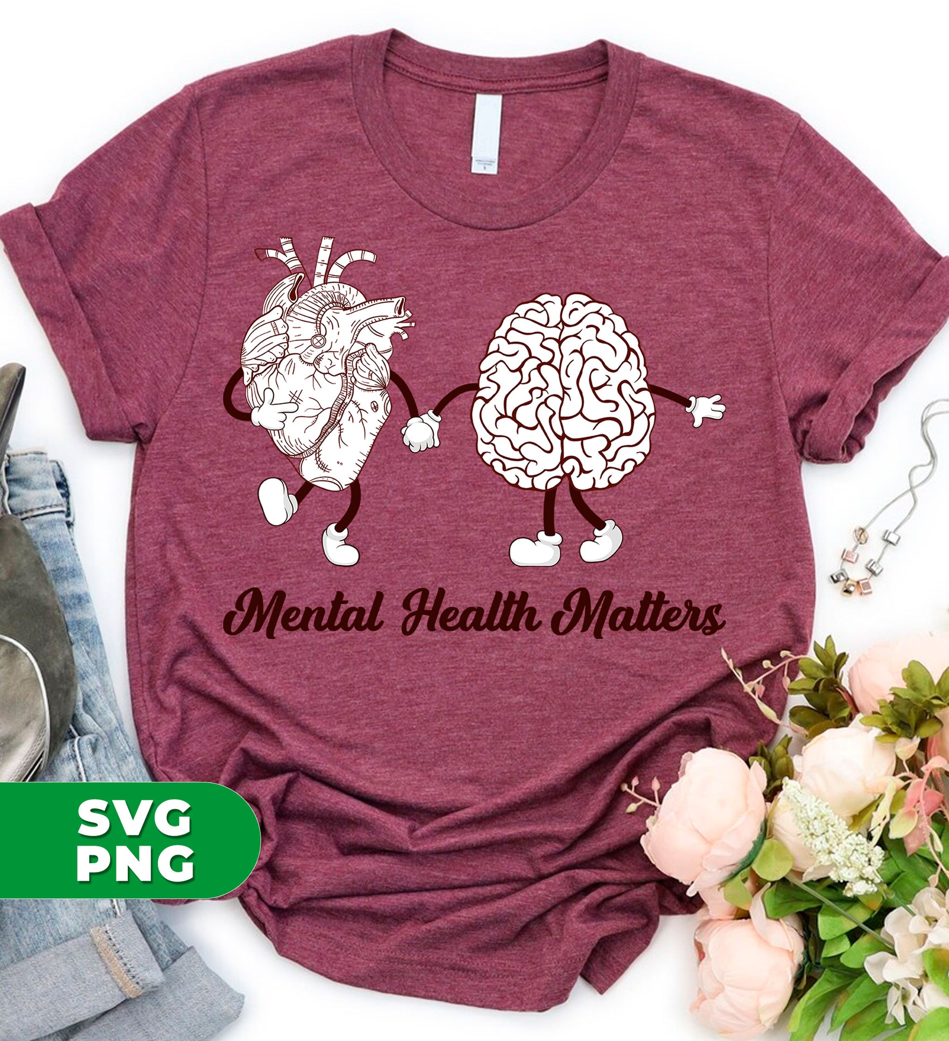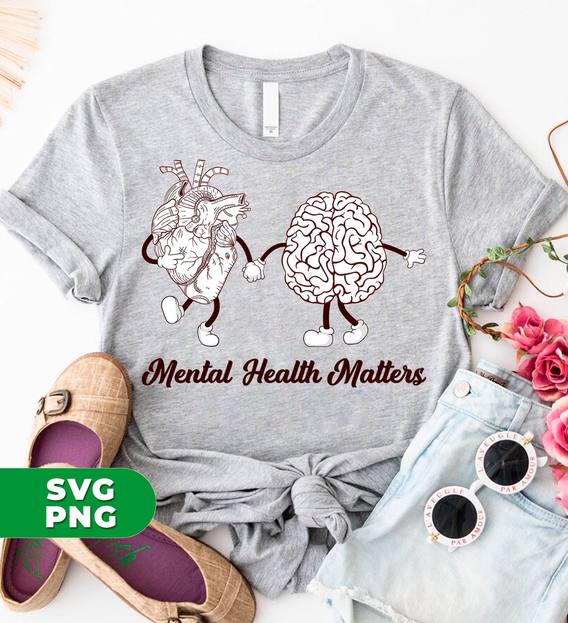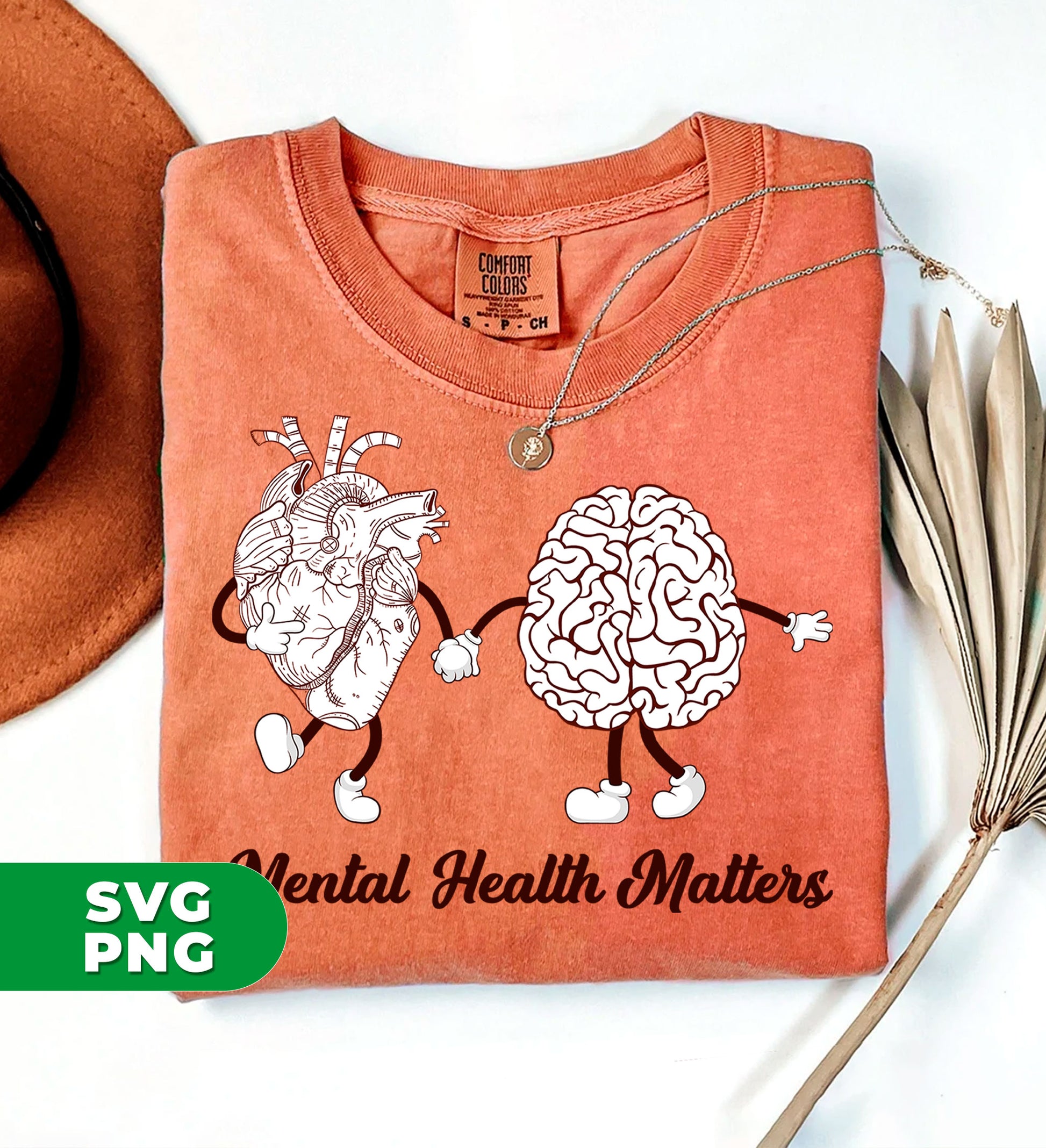 Mental Heath Matters, Heart And Brain Are Friends, Digital Files, Png Sublimation