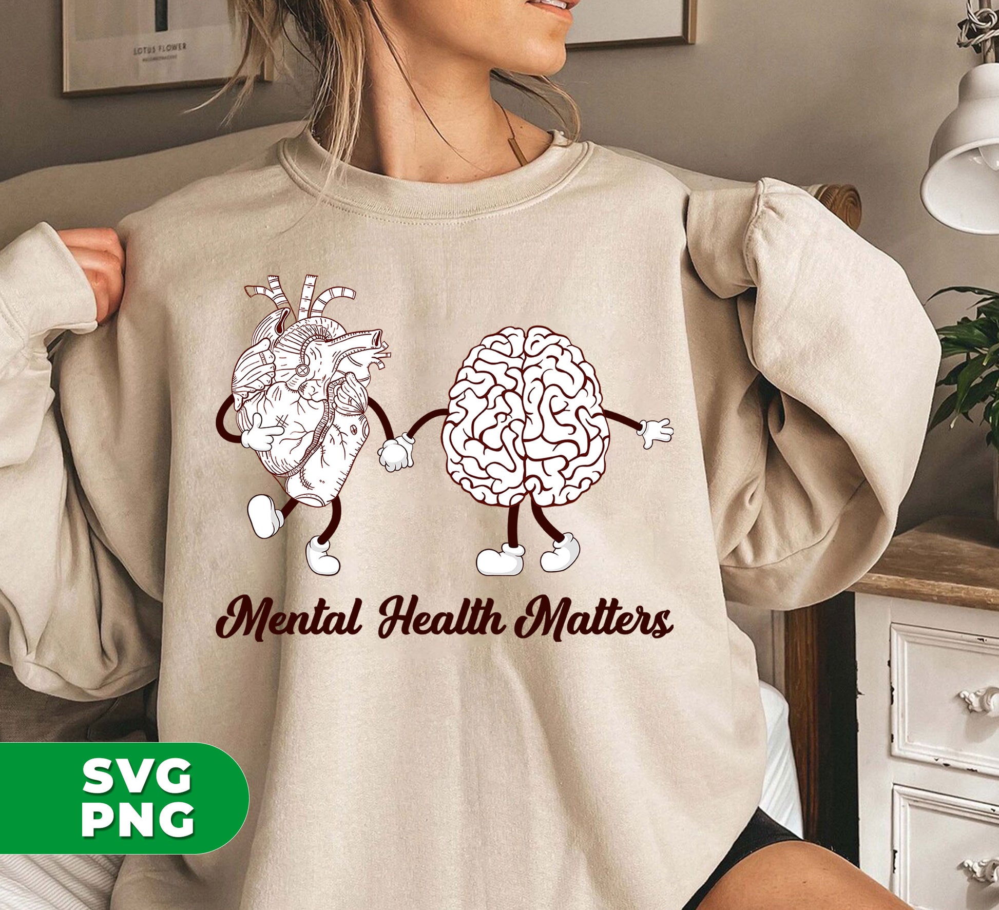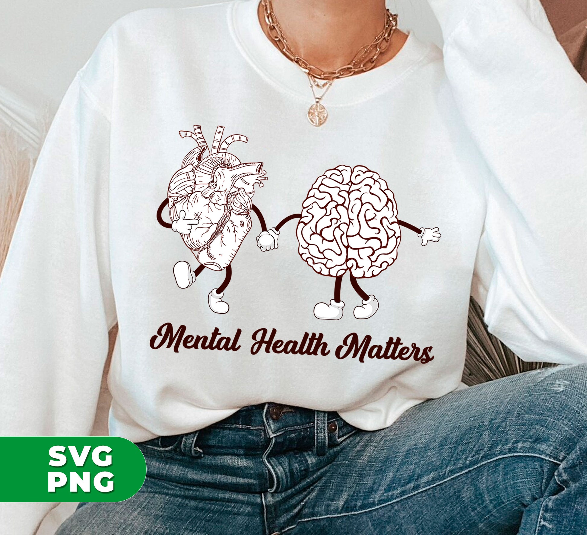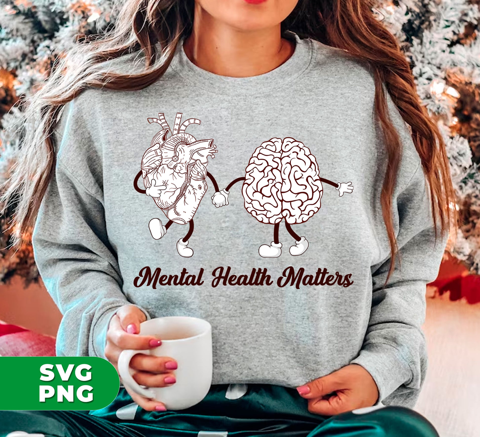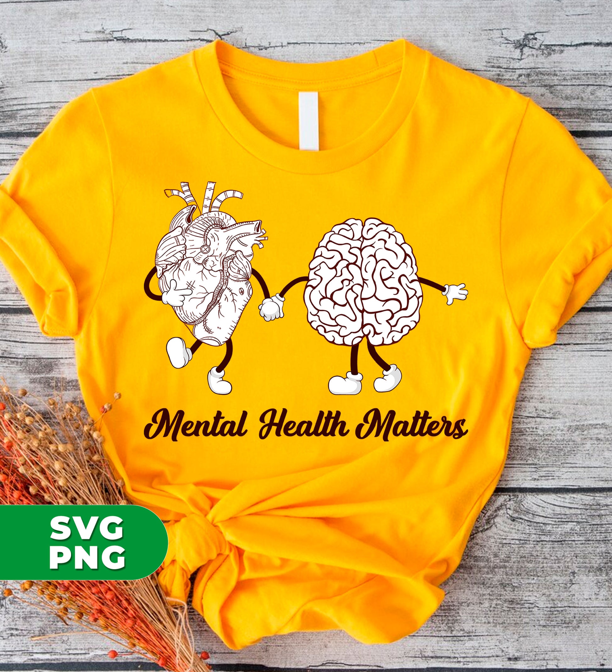 Mental Heath Matters, Heart And Brain Are Friends, Digital Files, Png Sublimation