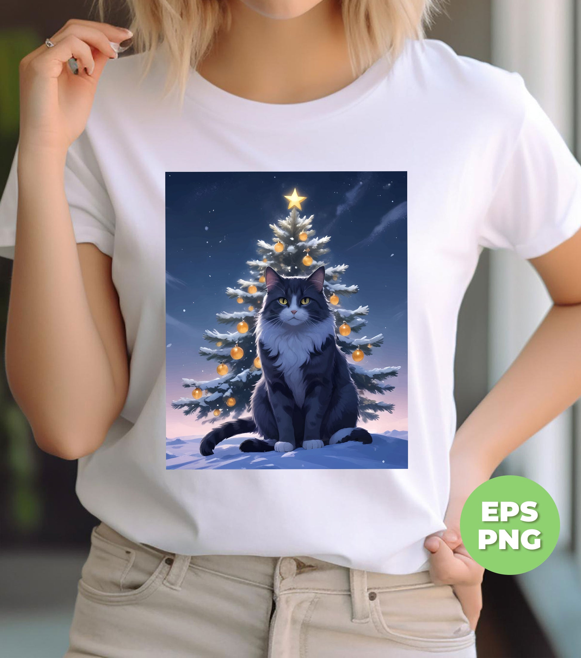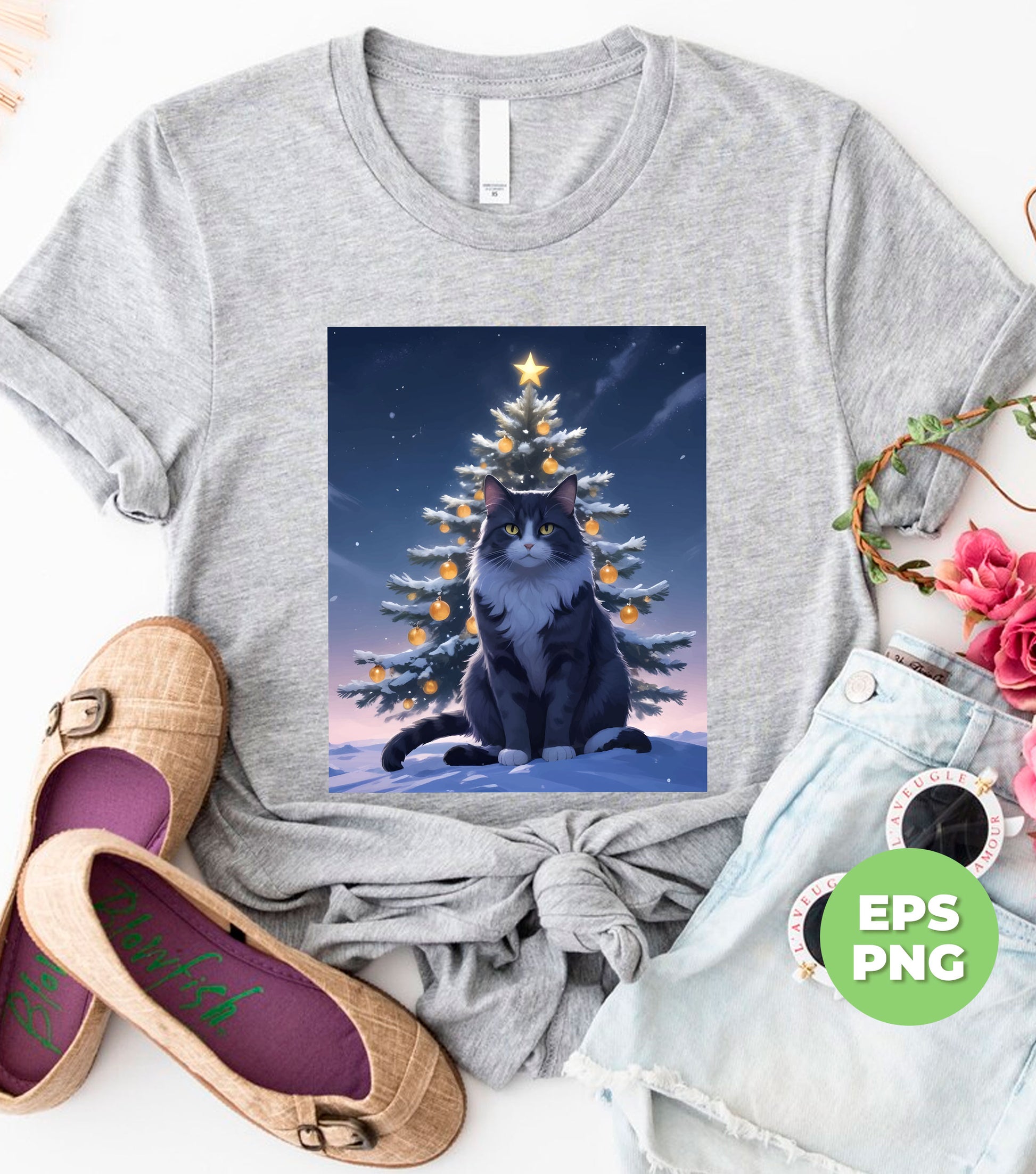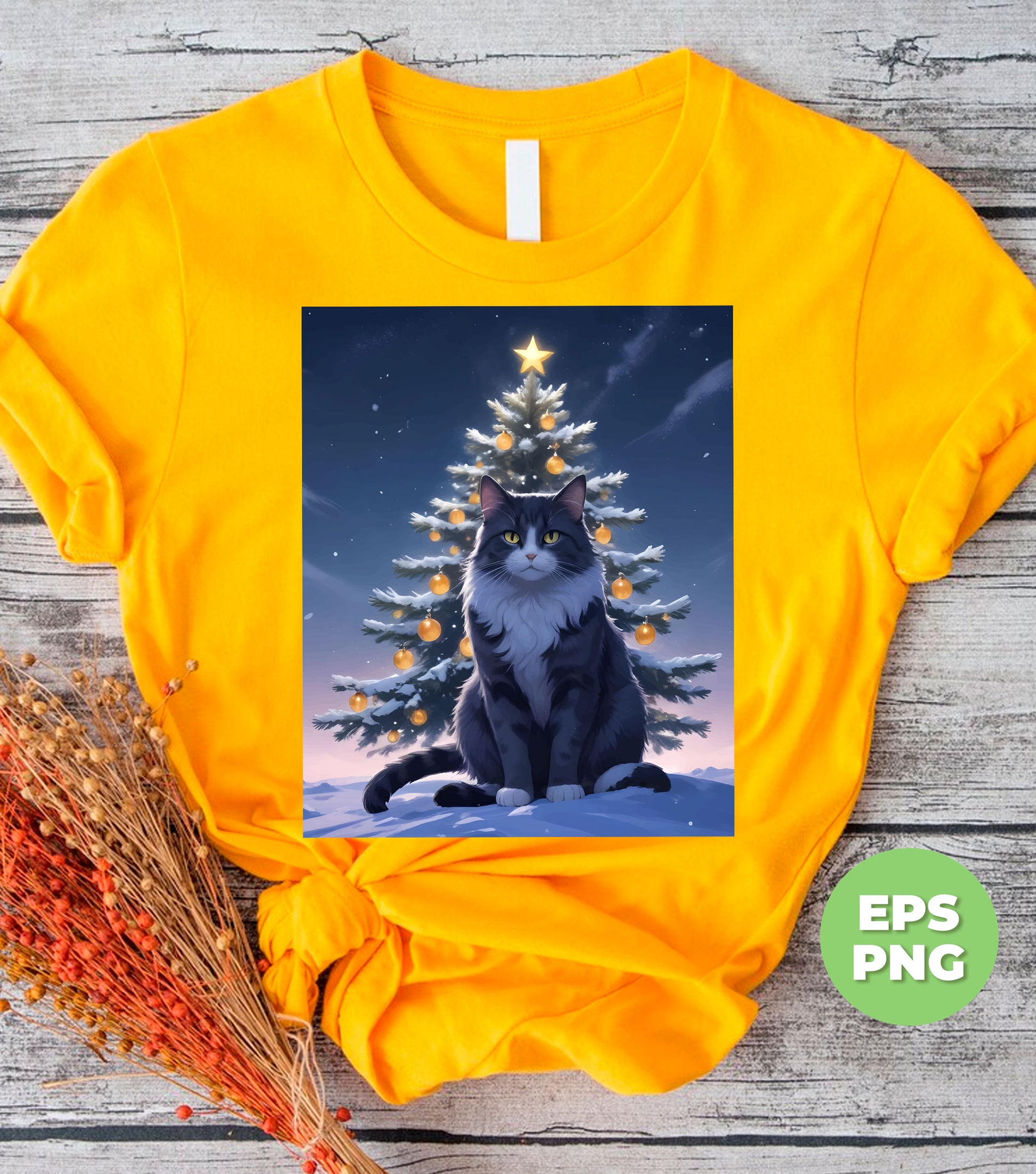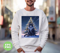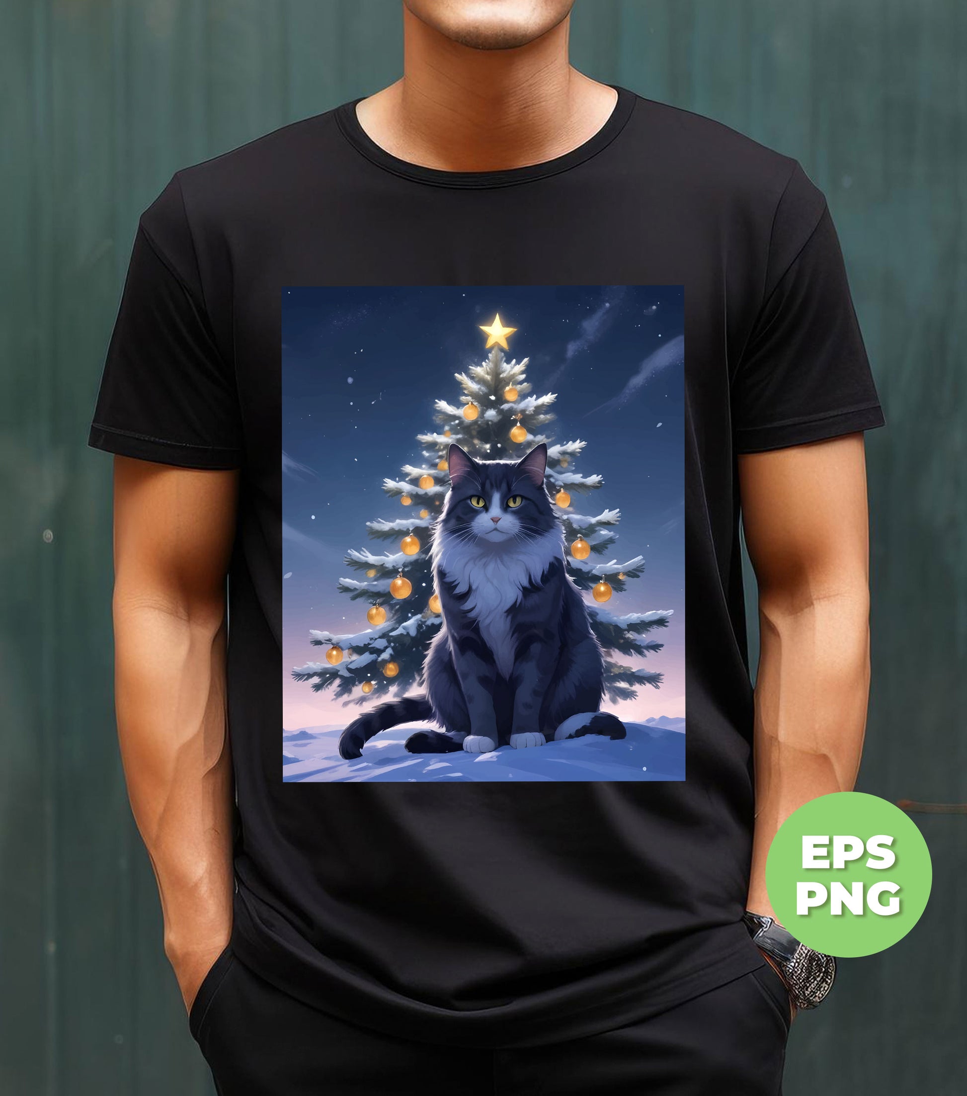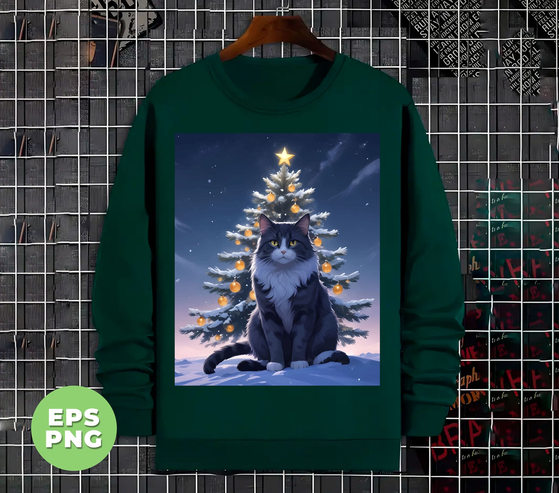 Merry Catmas, Cool Cat, Xmas Tree, Christmas Night, Digital Files, Png Sublimation