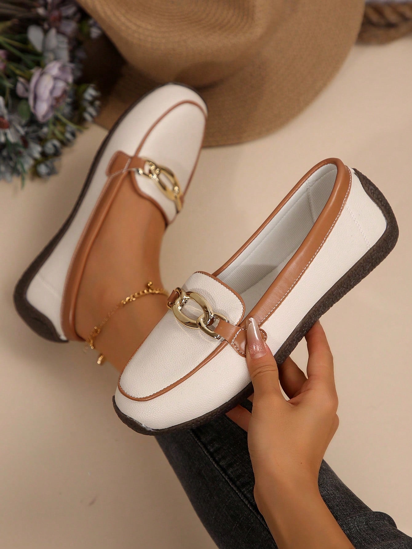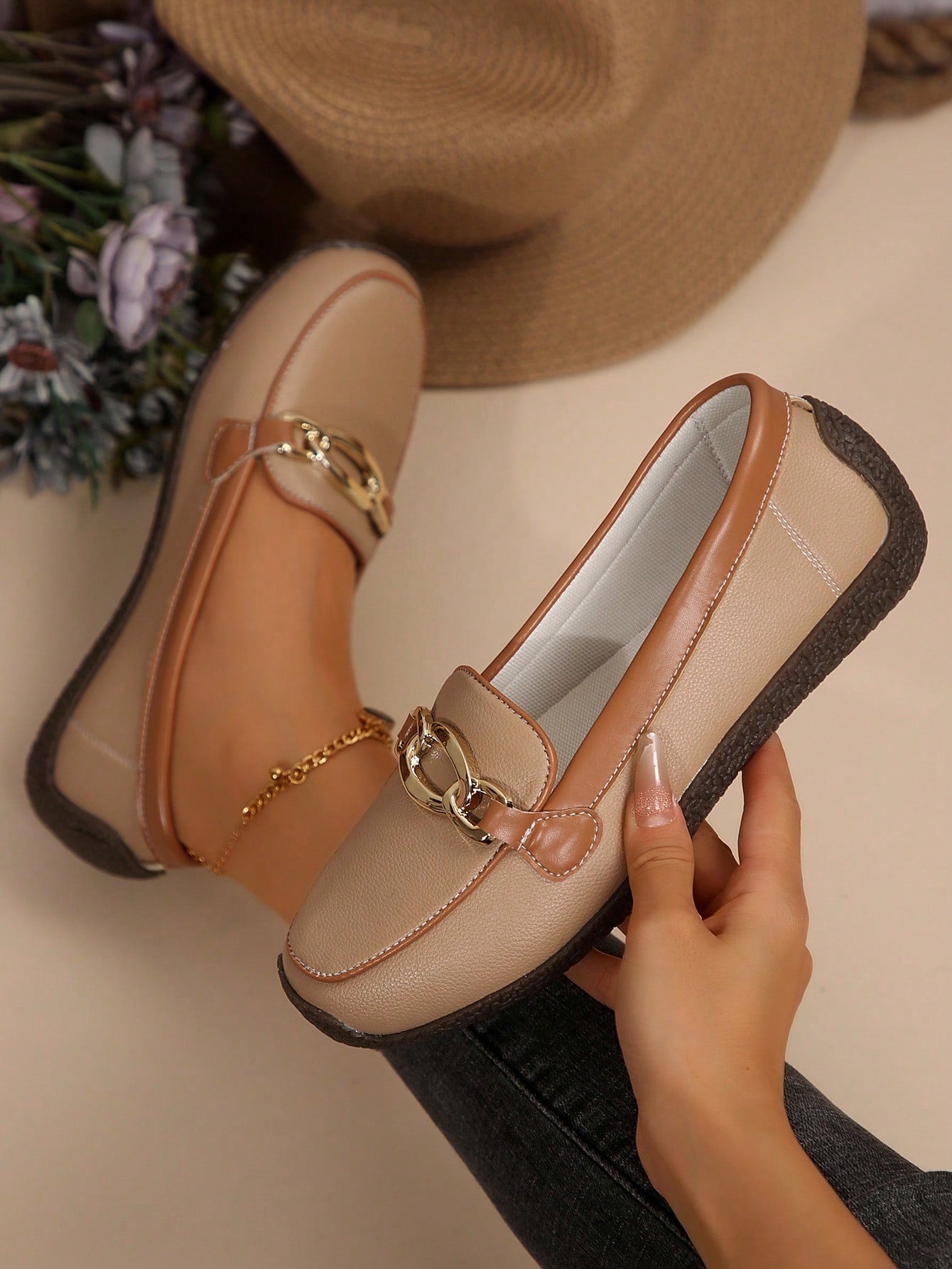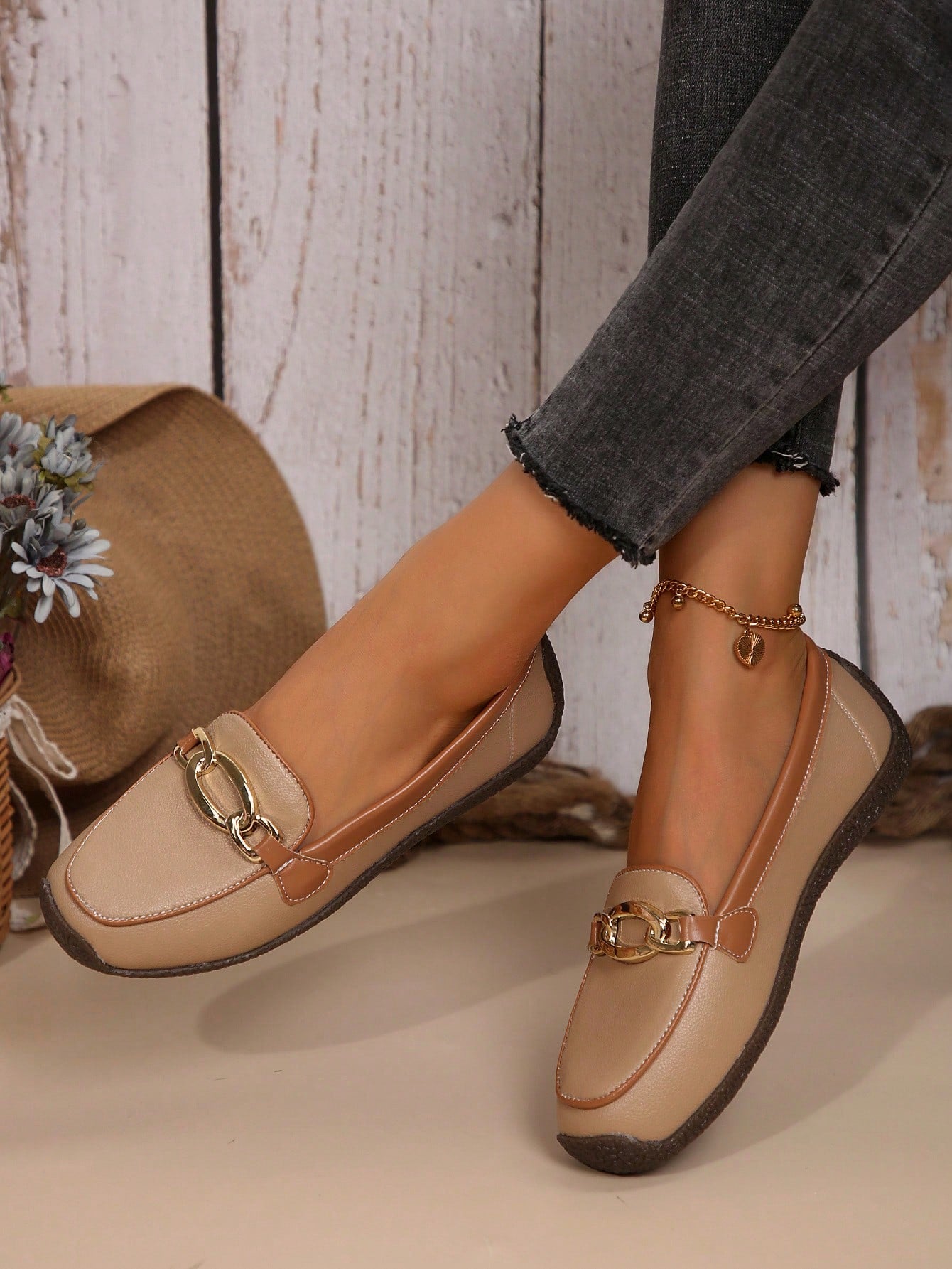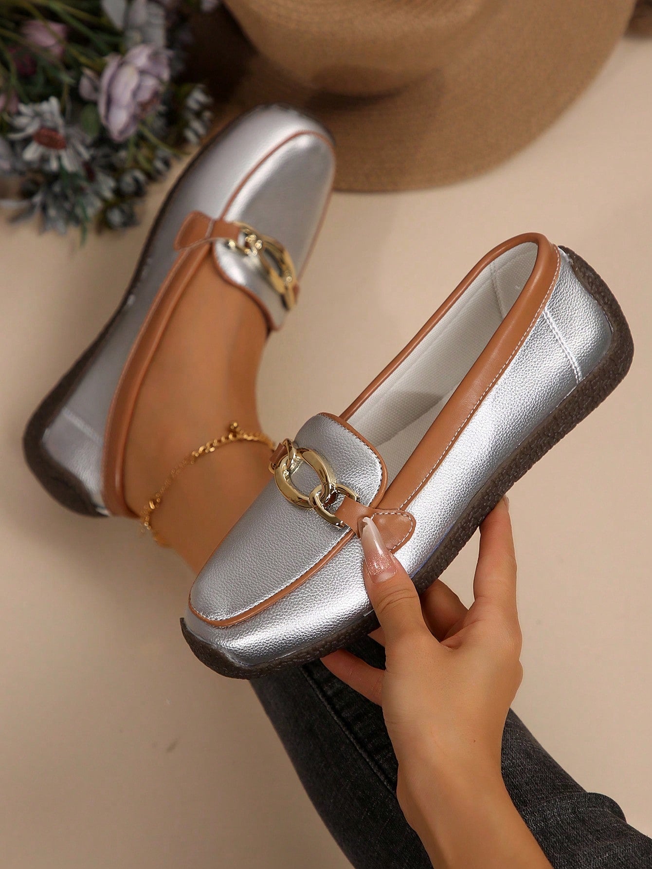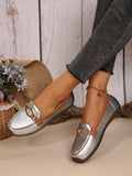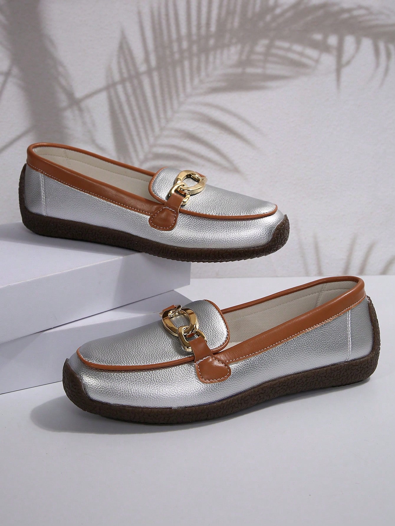 Metallic Charm: Stylish Women's Leather Loafers for a Versatile Casual Look