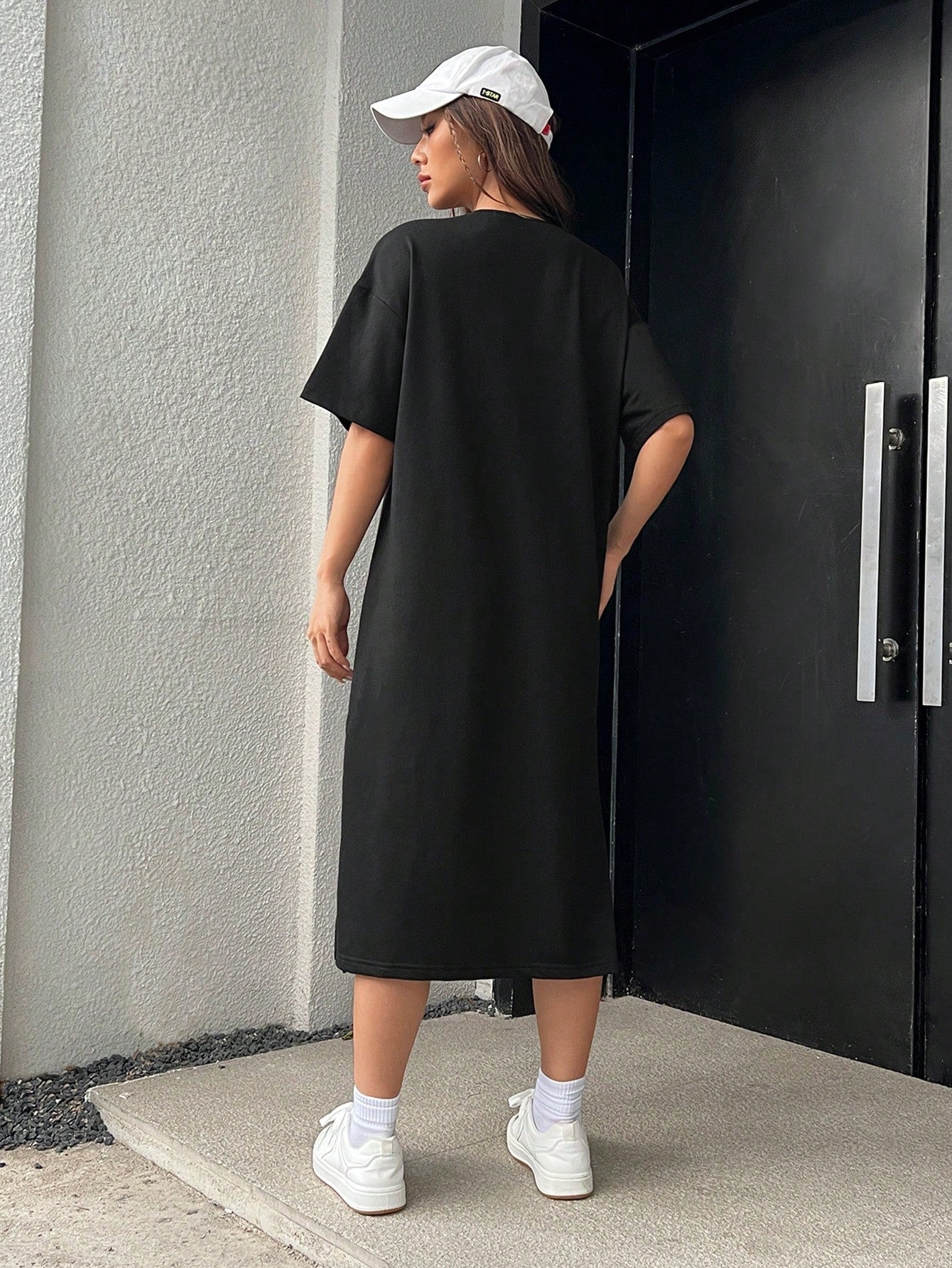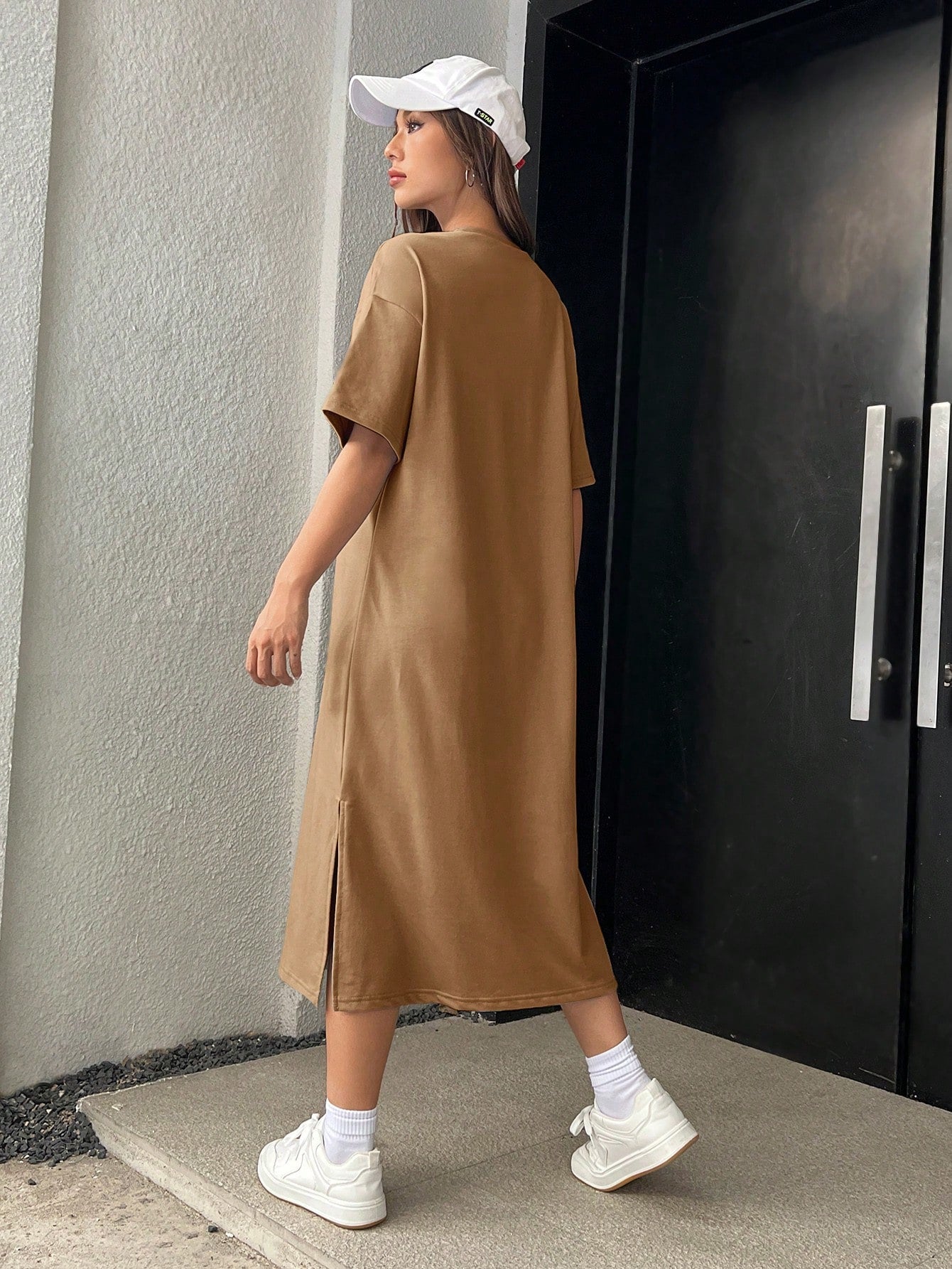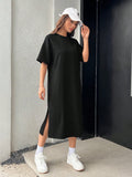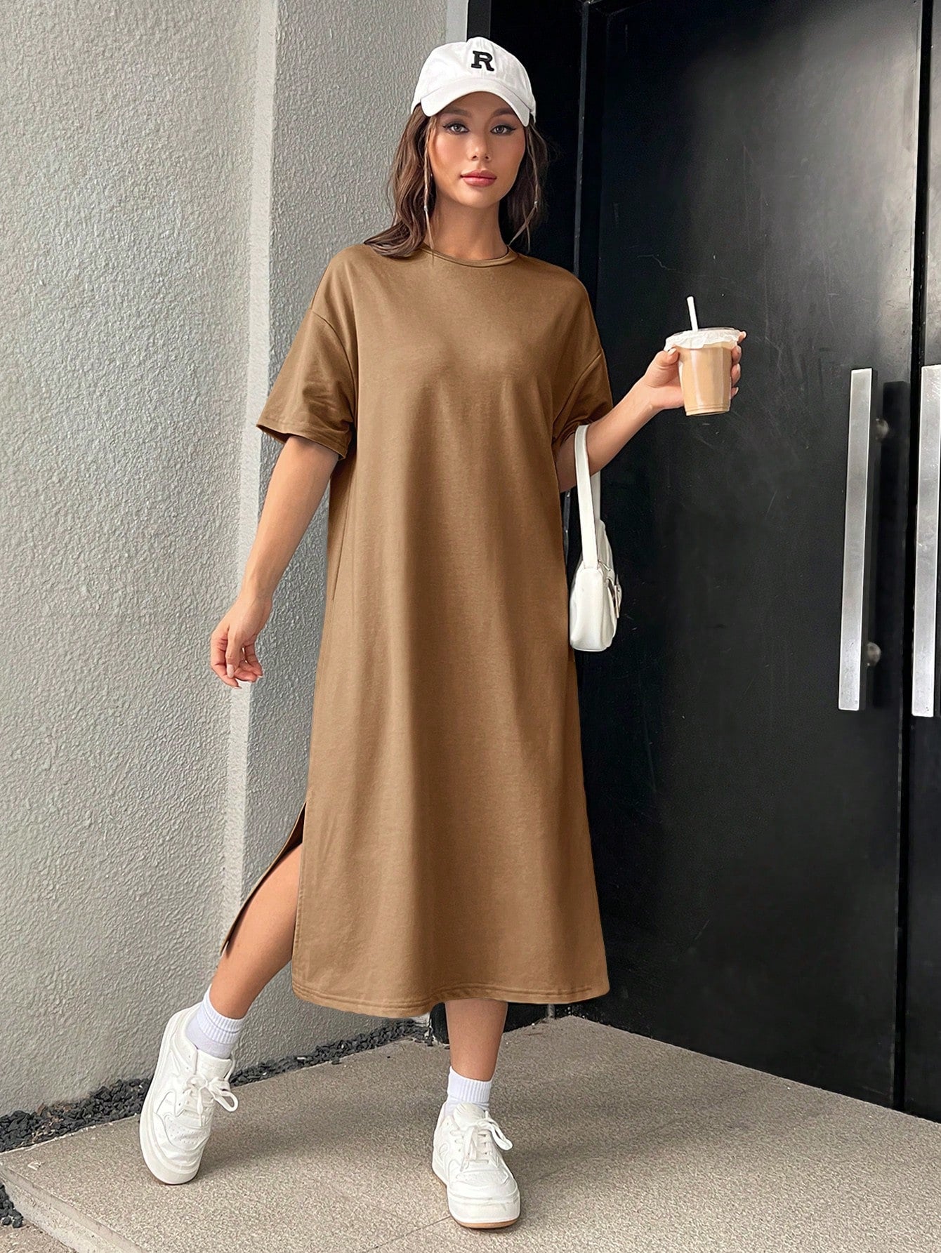 Mint Green Drop Shoulder Tee Dress with Split Hem