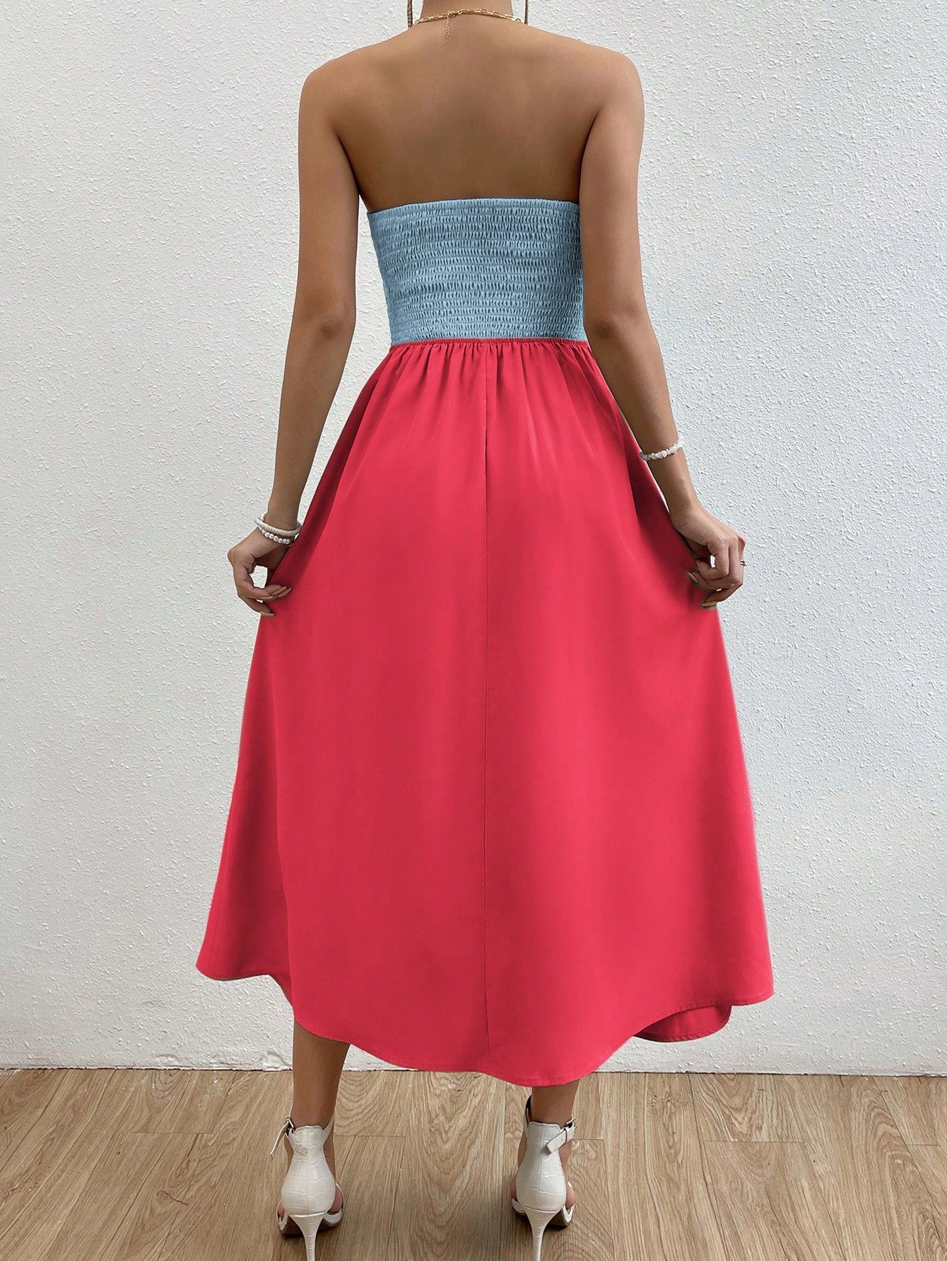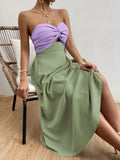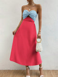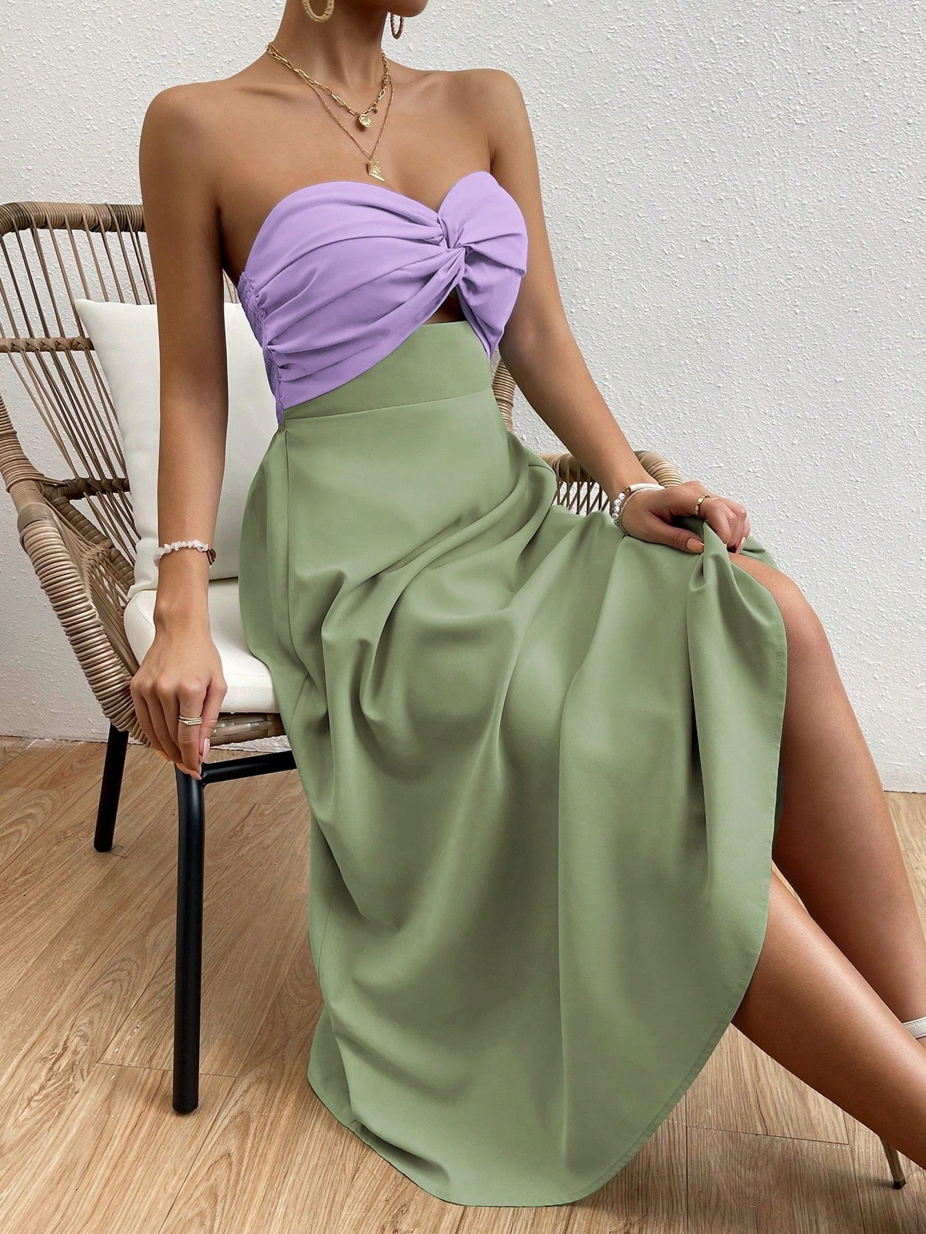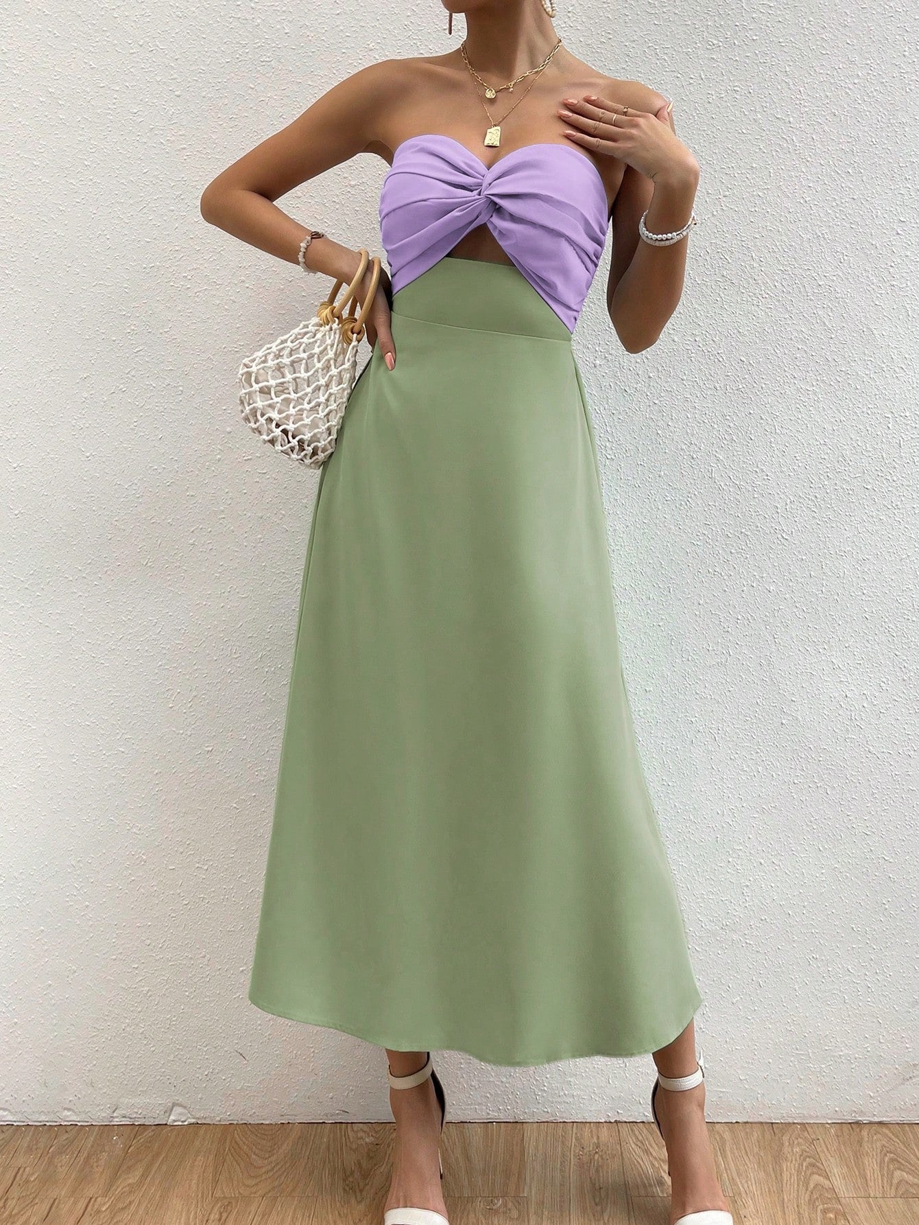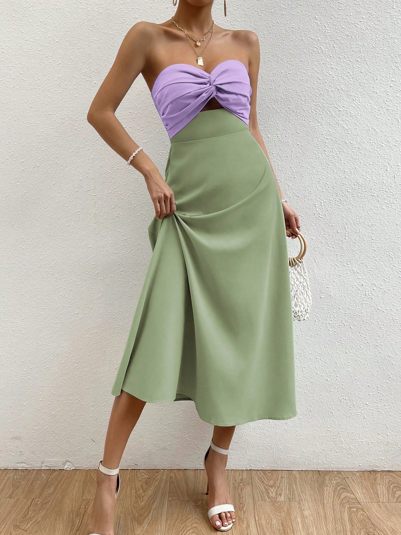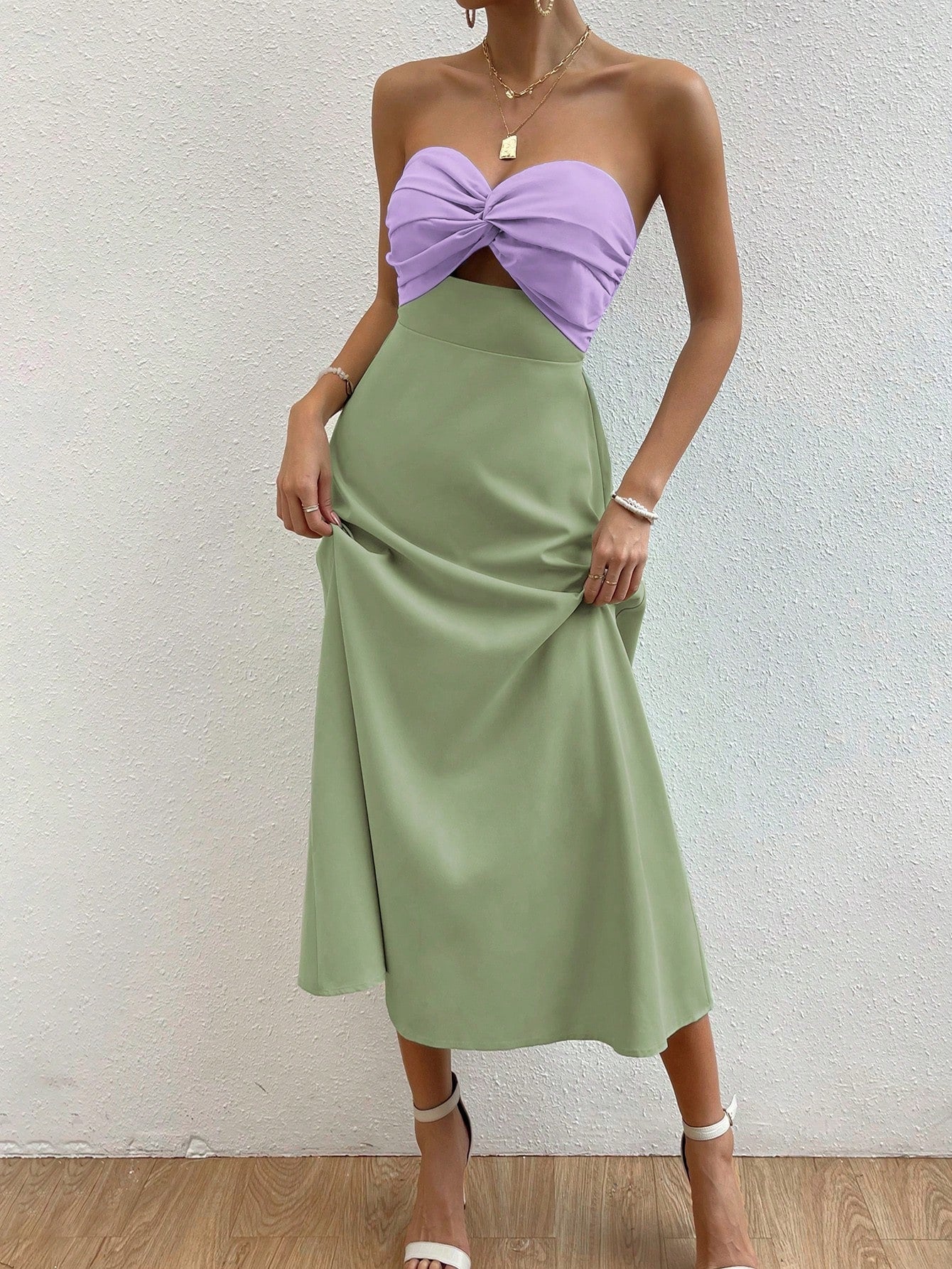 Minty Fresh: Two-Tone Twist Front Tube Dress features a flattering twist front design and a two-tone color pattern. The lightweight and breathable fabric make it perfect for any occasion.