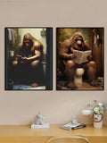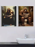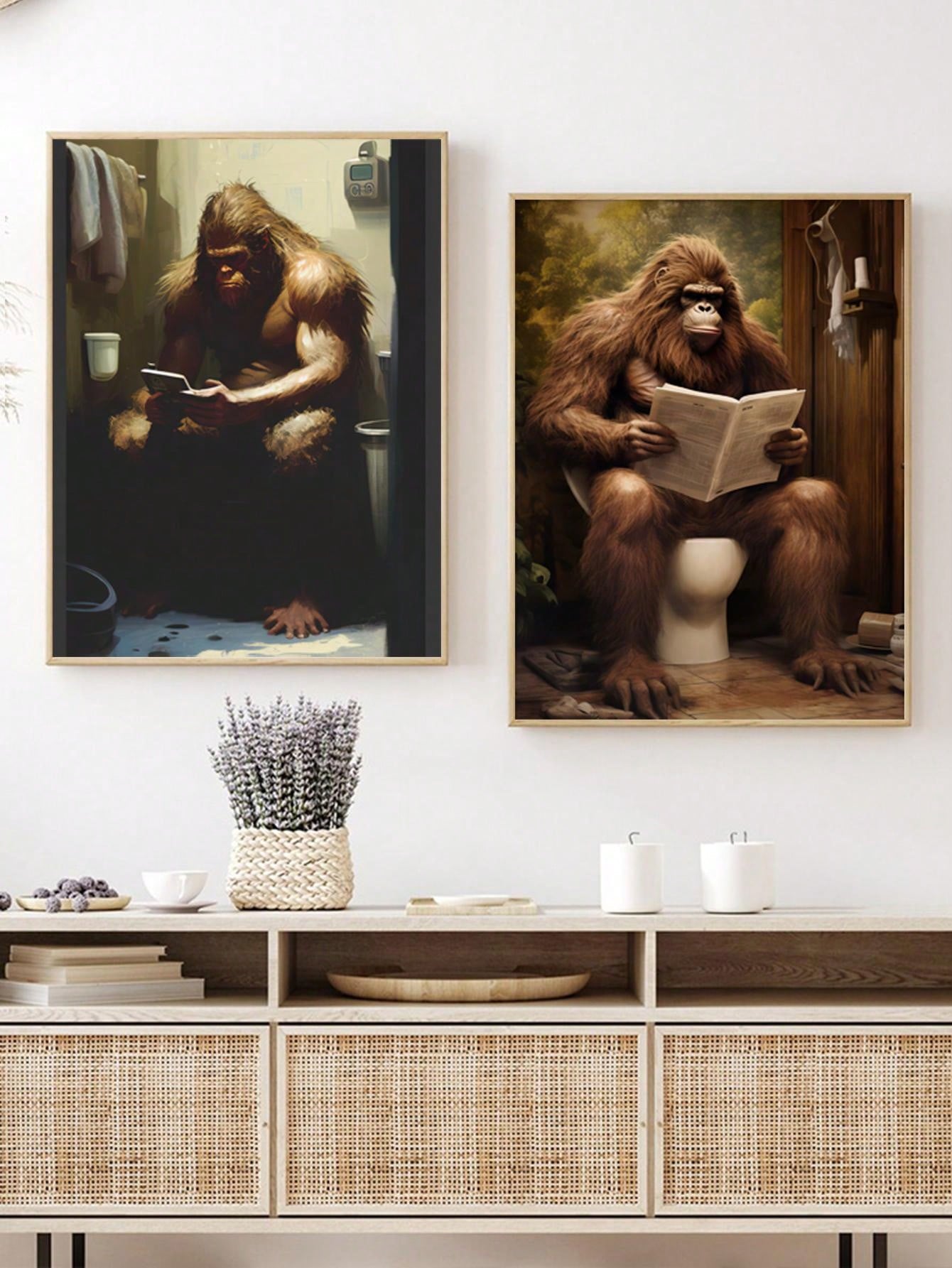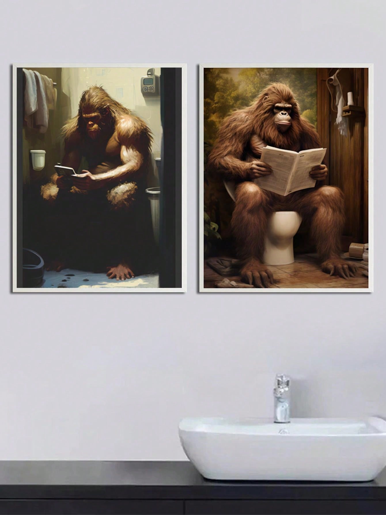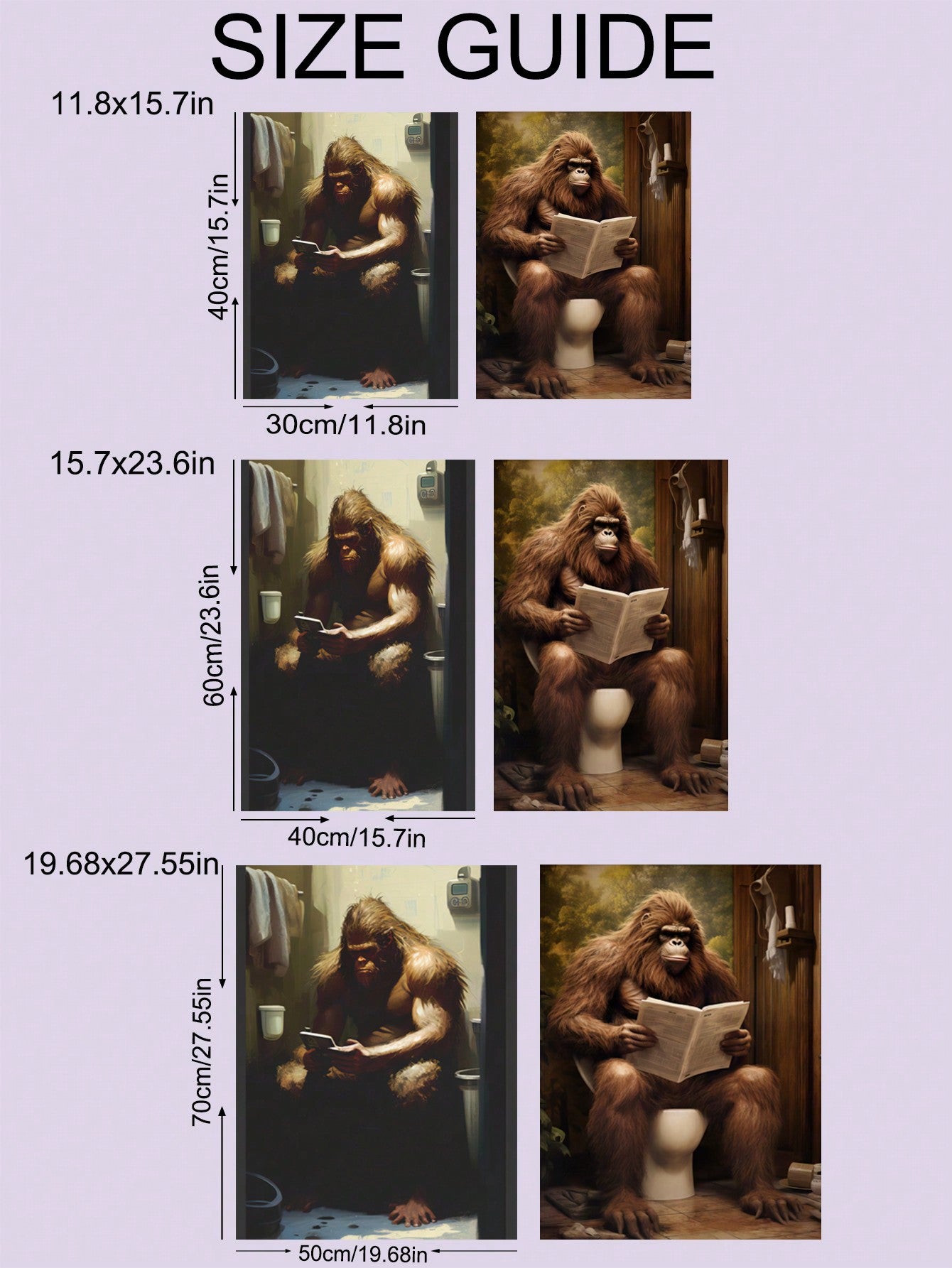 Modern Art: Gorilla in Bathroom Canvas Poster - Unique Winter Room Decoration