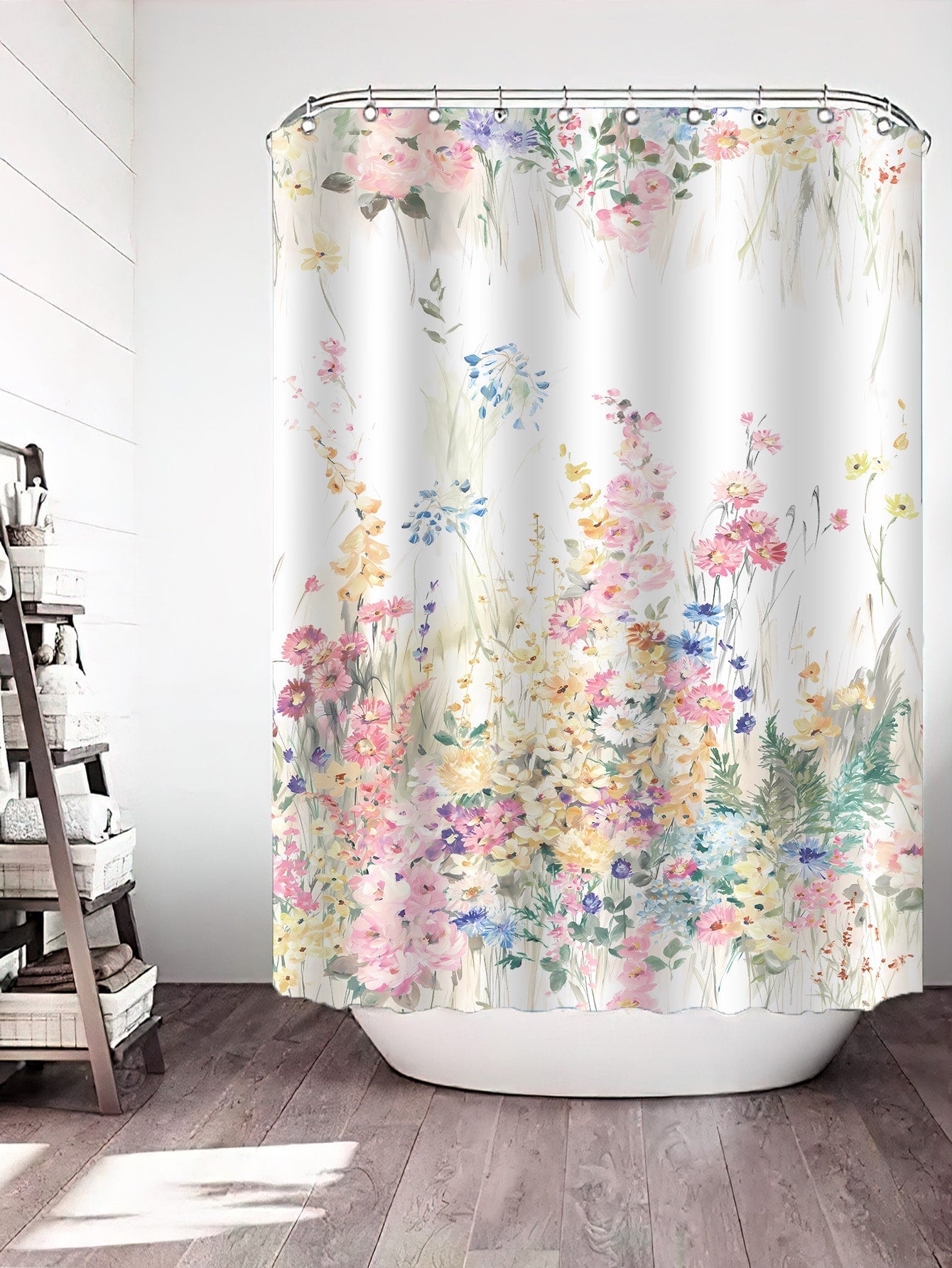 Shower Curtain. Made with waterproof material, it not only brings a touch of elegance with its floral design but also acts as a practical bath window divider. Keep your bathroom clean and dry with this must-have accessory."