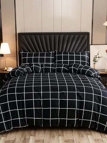 Modern Plaid Pattern Duvet Cover Set: Stylish Polyester Bedding for All Seasons