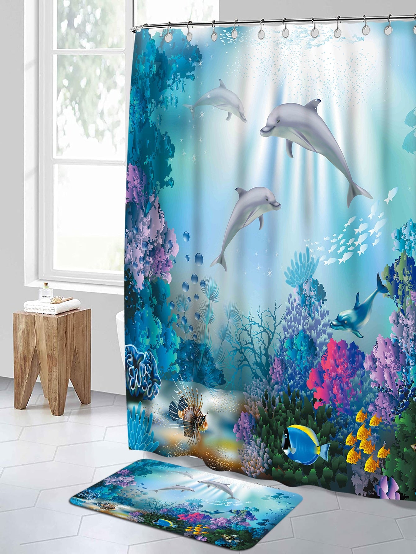 Elevate your bathroom style with our Modern Waterproof Dolphin Shower Curtain. Crafted for both function and fashion, this curtain is designed to keep your bathroom dry while its stylish dolphin print adds a touch of whimsy. With its waterproof material, you can enjoy a worry-free shower experience.