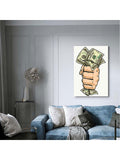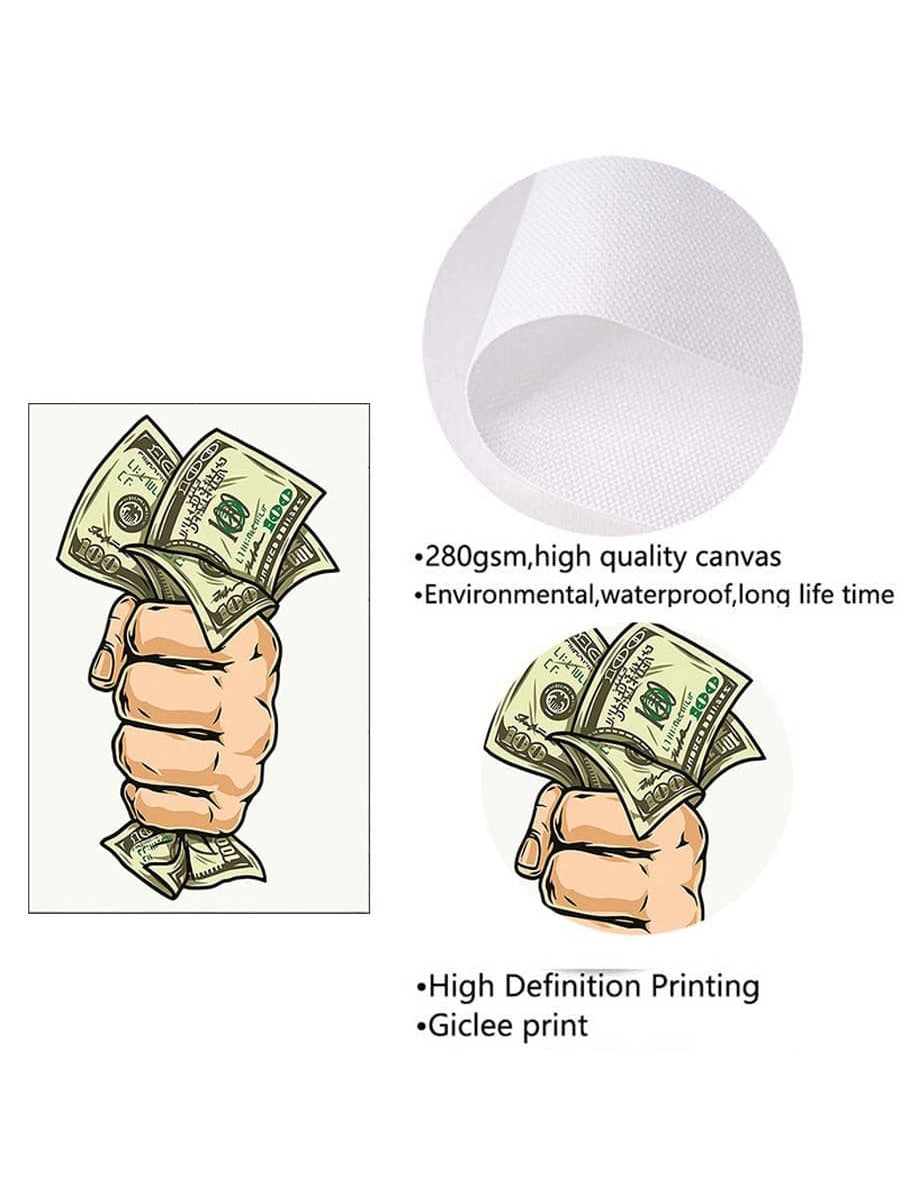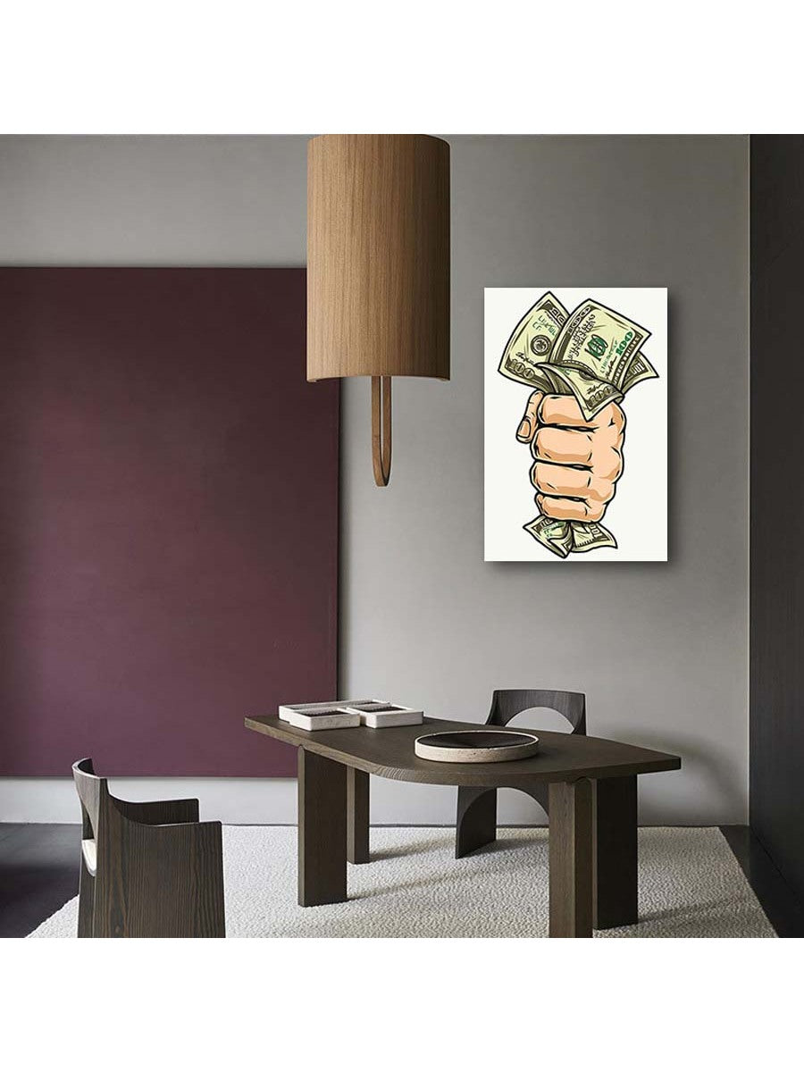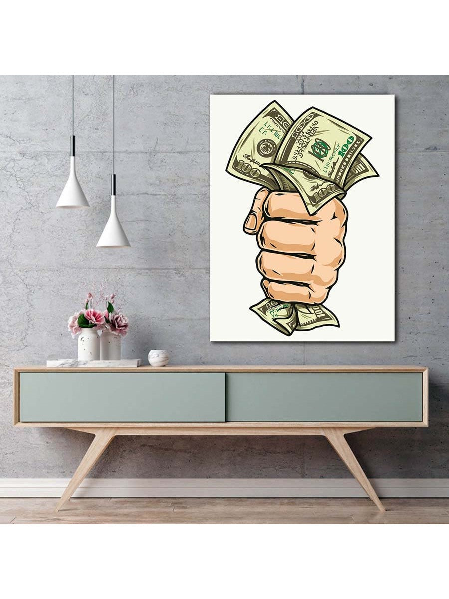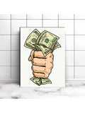 wall decor with our Money Talks poster. Featuring a unique male hand holding dollar bills, this poster adds a touch of sophistication and financial prowess to any room. Made with high-quality materials, it's sure to be a conversation starter."