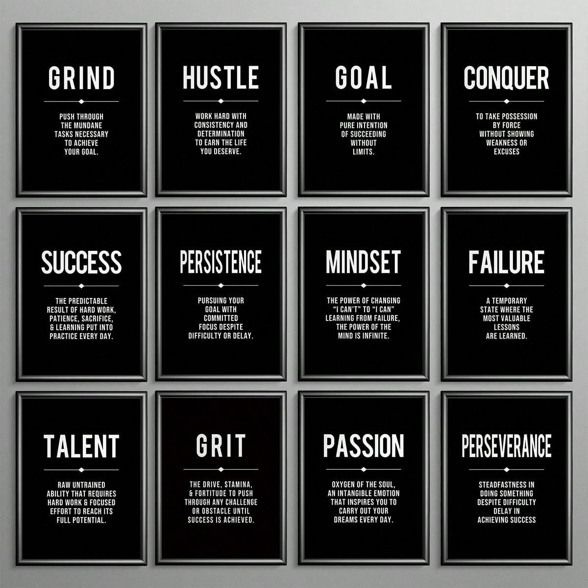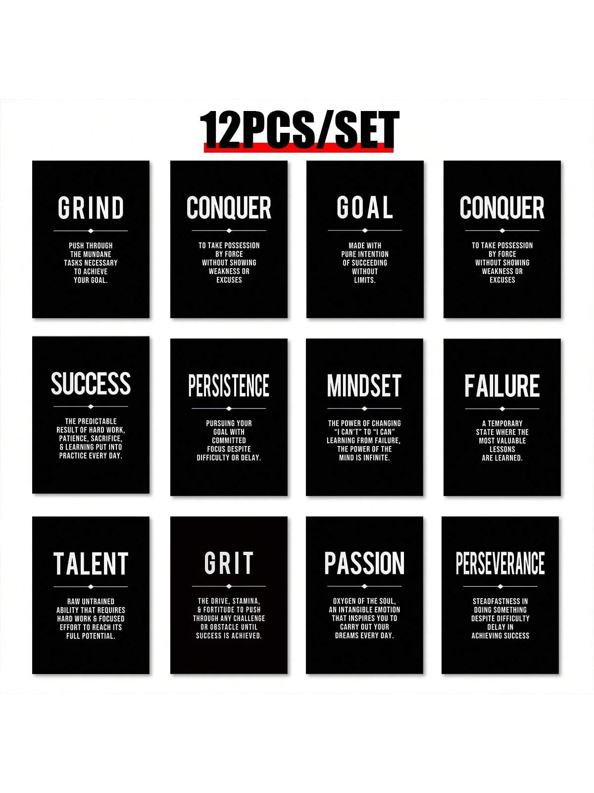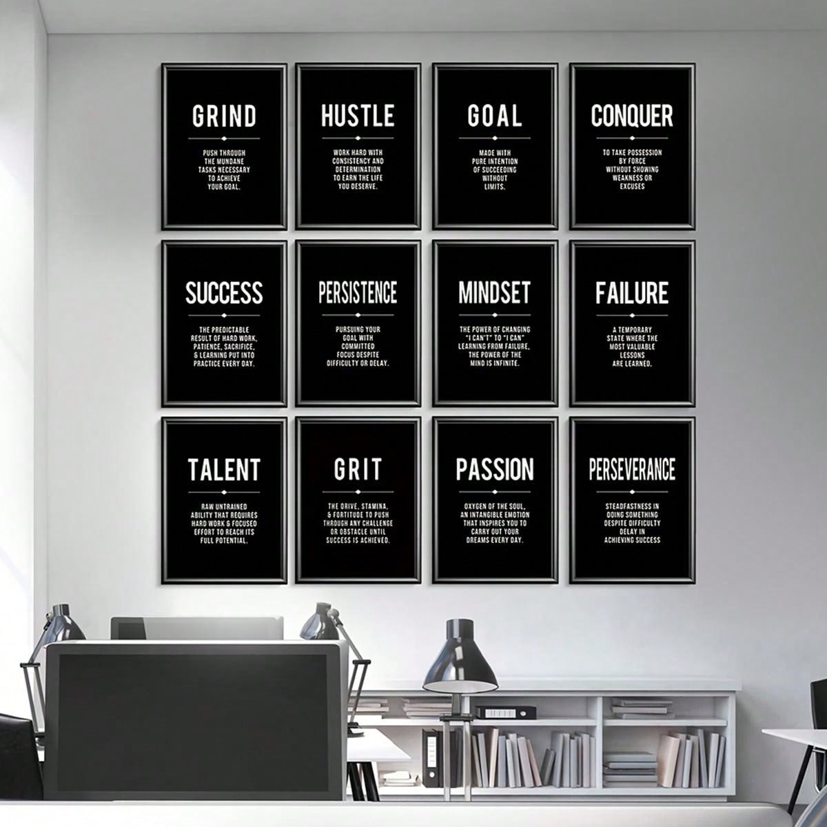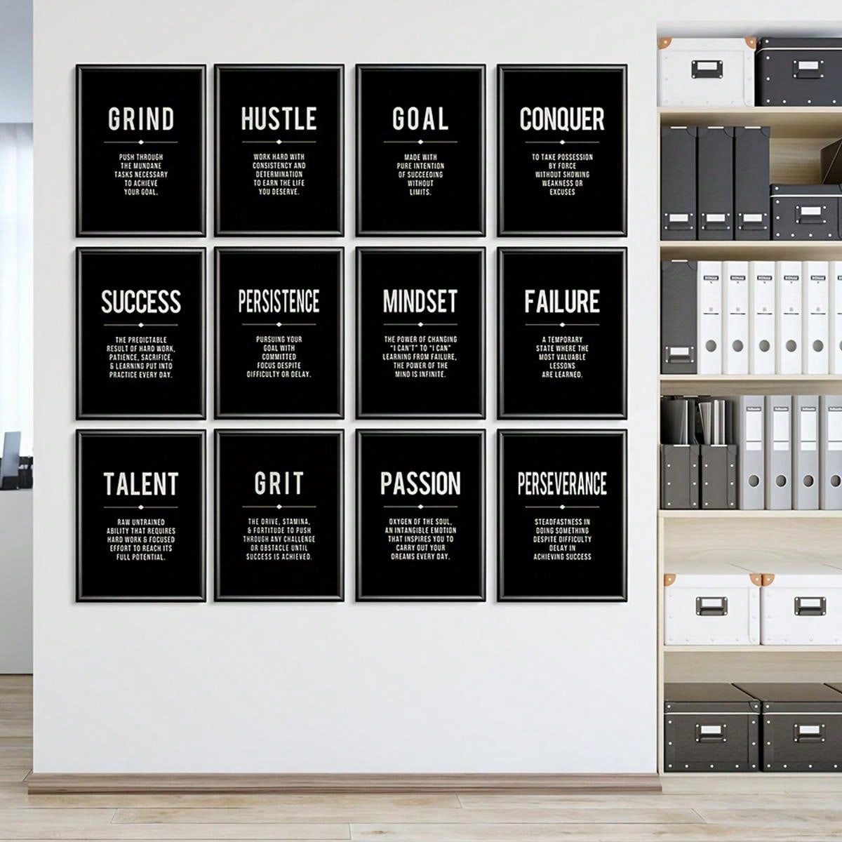 Motivational Minimalism: 12 Piece Modern Black Canvas Wall Art Set for Home, Office, and Gifts
