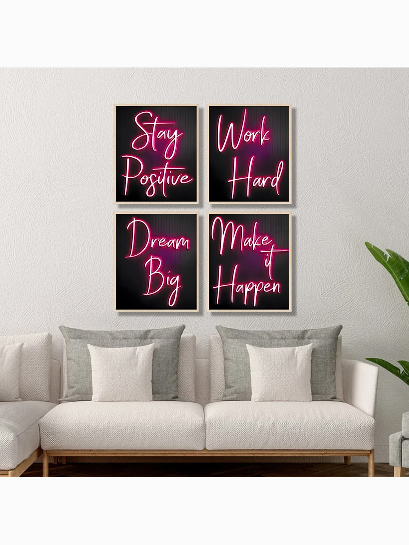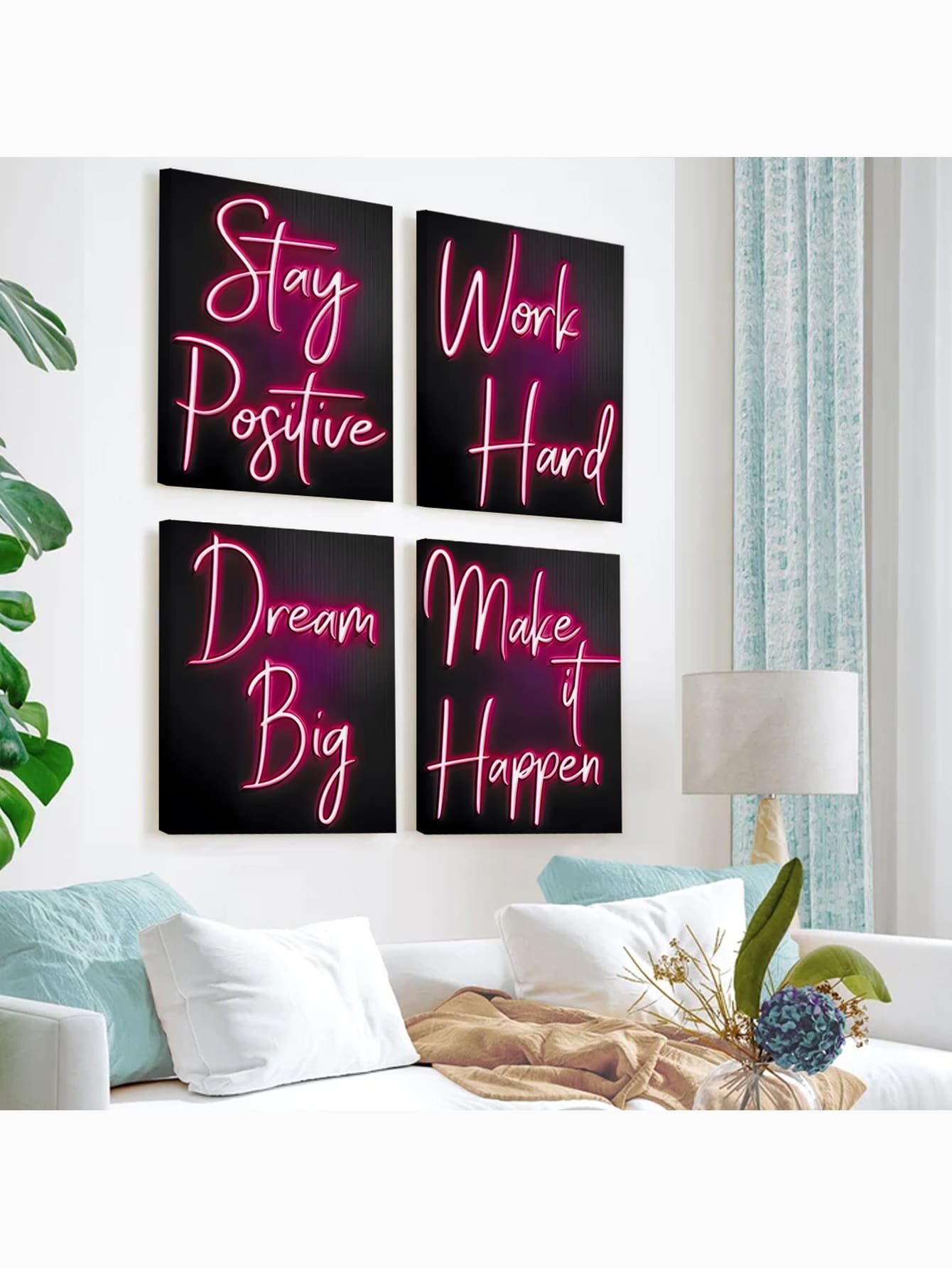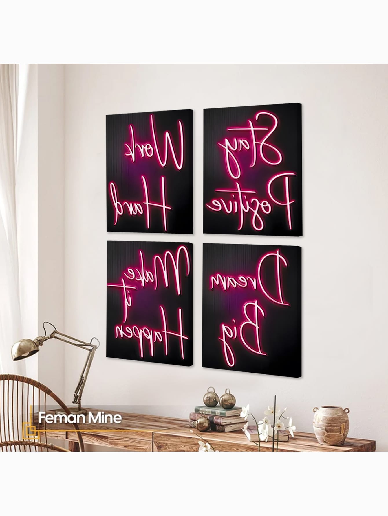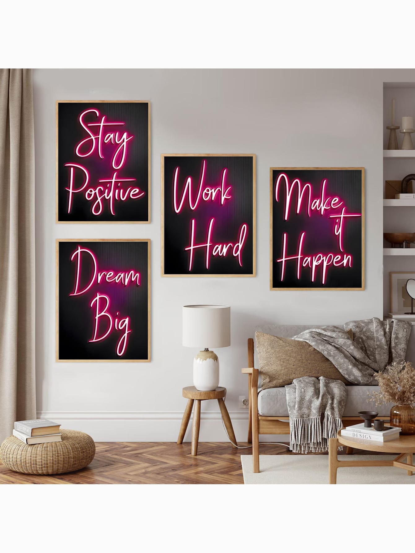 Motivational Red Neon Canvas Wall Art Set - Enhance Your Living Room and Bedroom Decor with Inspiring Prints!