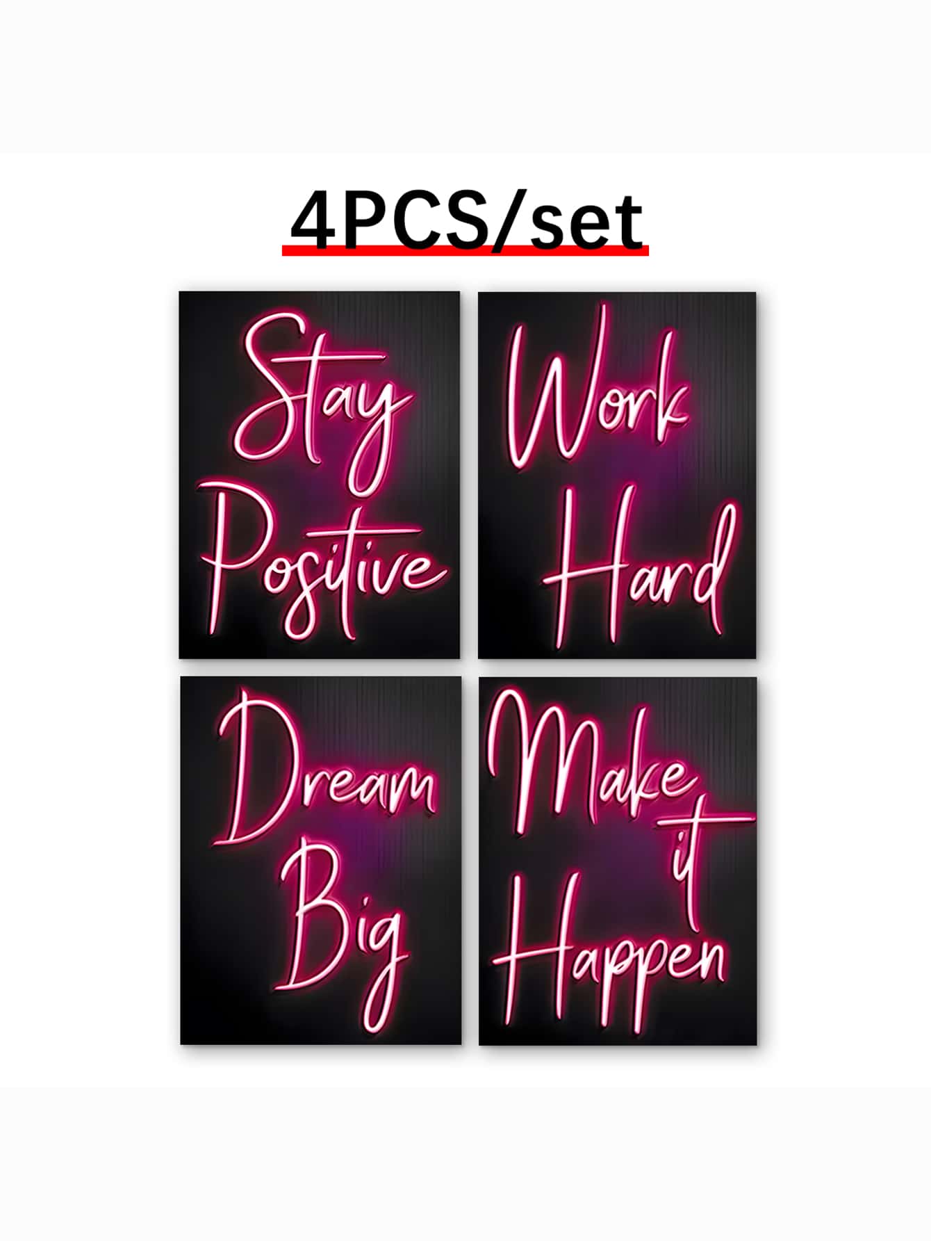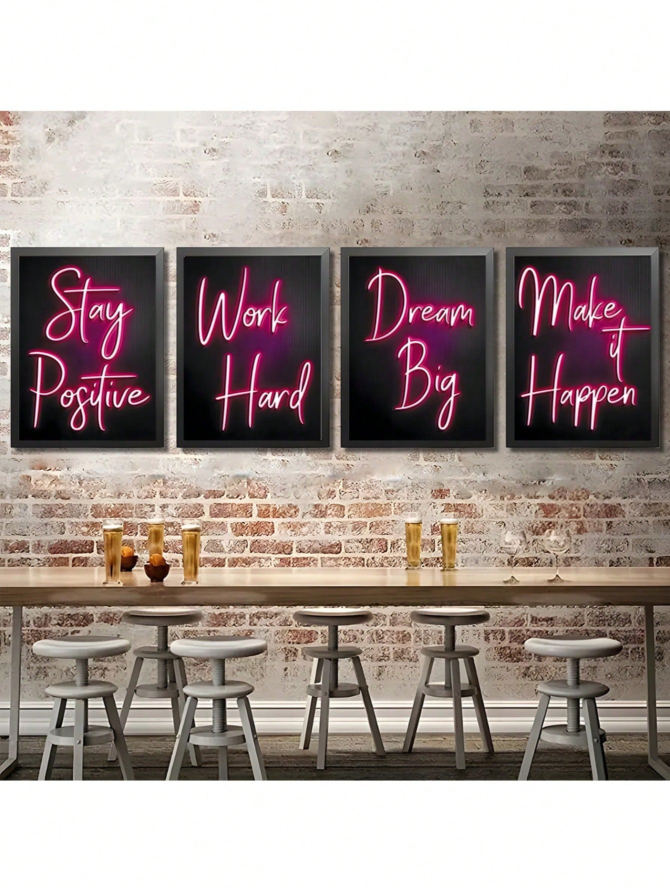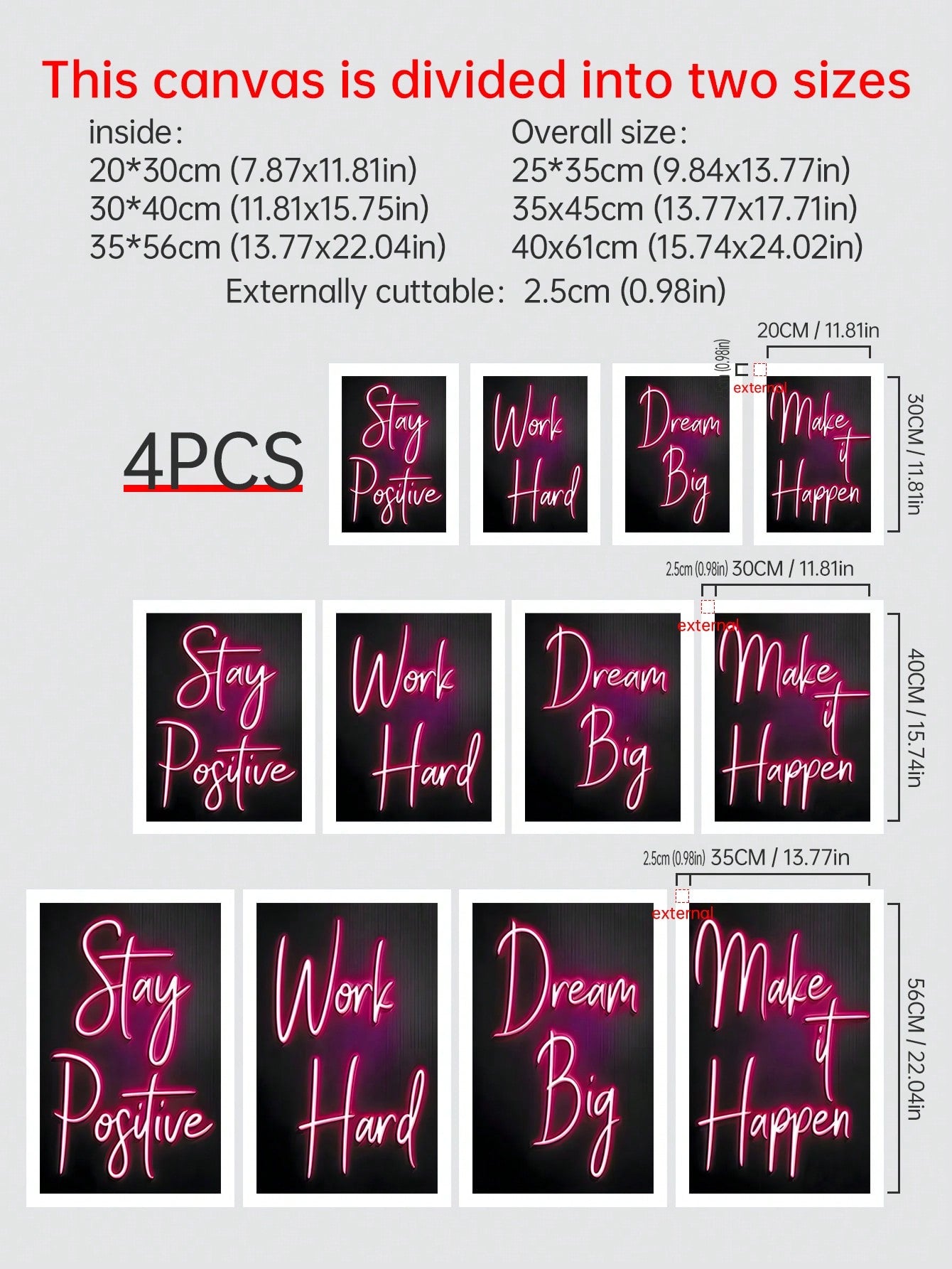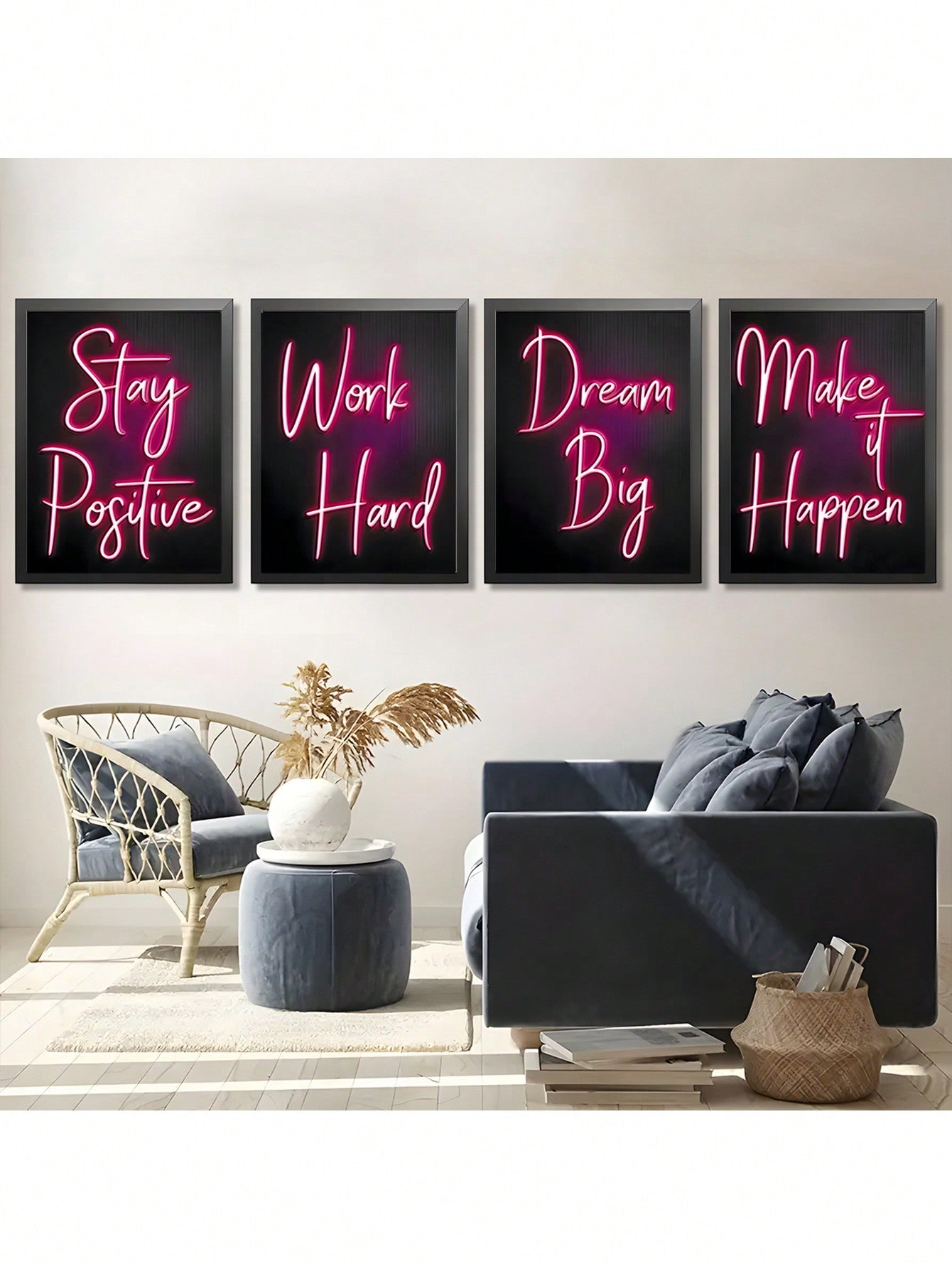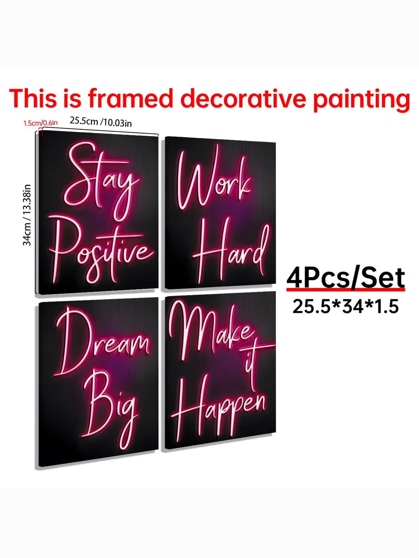 Motivational Red Neon Canvas Wall Art Set - Enhance Your Living Room and Bedroom Decor with Inspiring Prints!