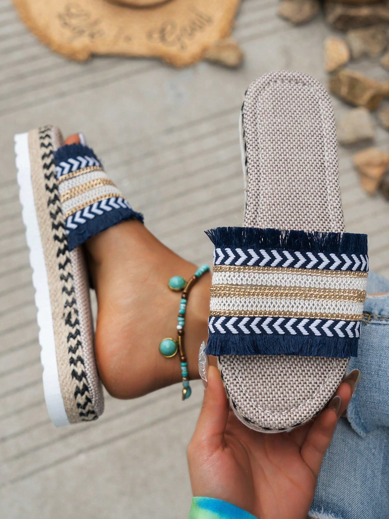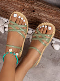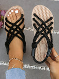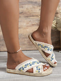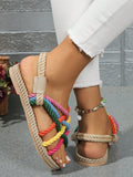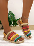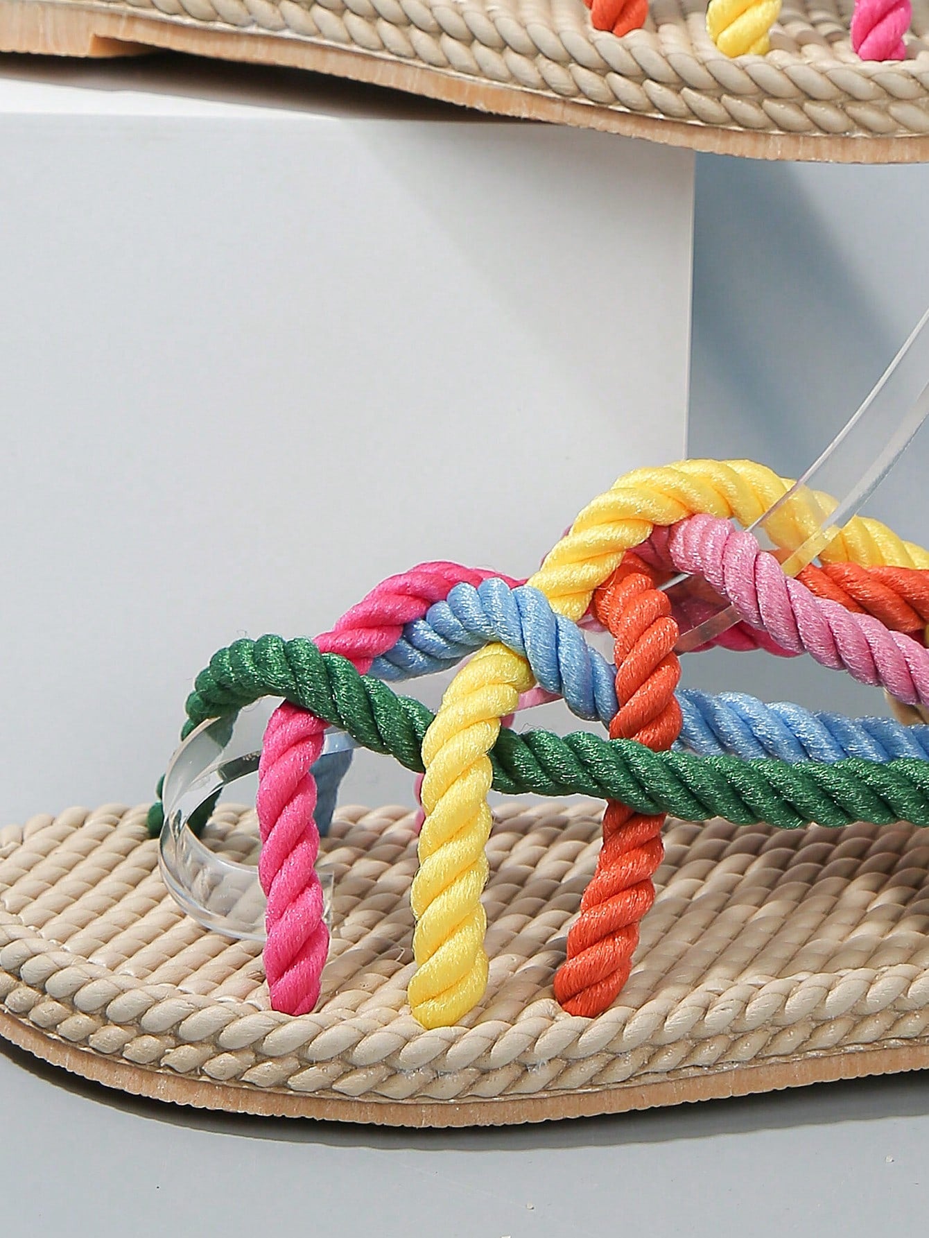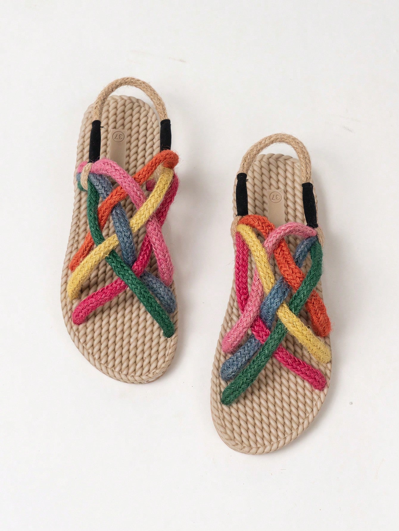 Multicolor Rainbow Flat Summer Sandals: Stylish Mule Style with Weaved Bottom for Comfort and Easy Slip-On Wrap Toe
