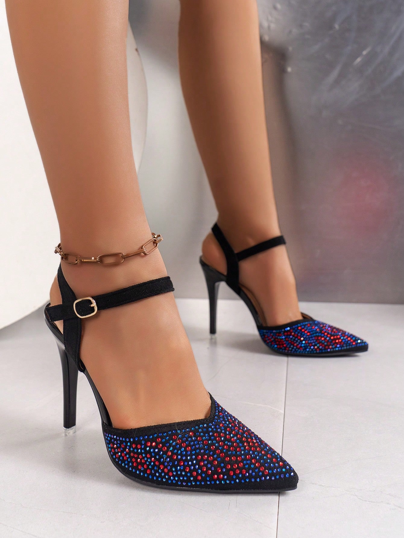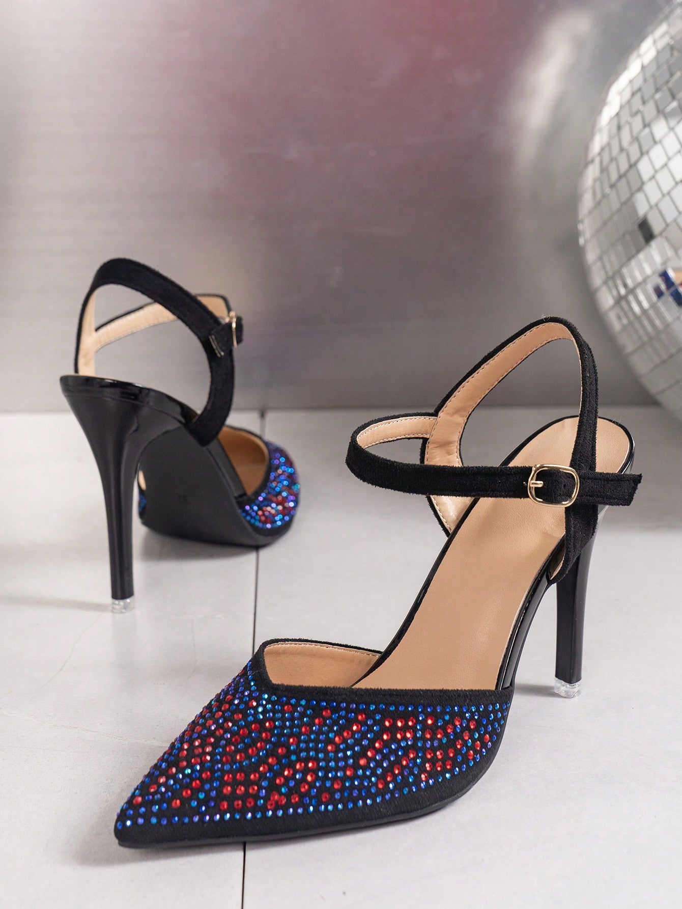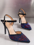 Multicolor Rhinestone Stiletto Heels: Sparkle and Shine with Cutout Pointed Toe