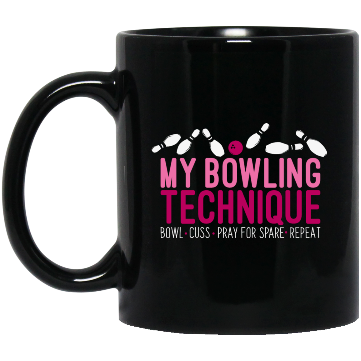 My Bowling Technique Funny Bowling Bowler Black Mug