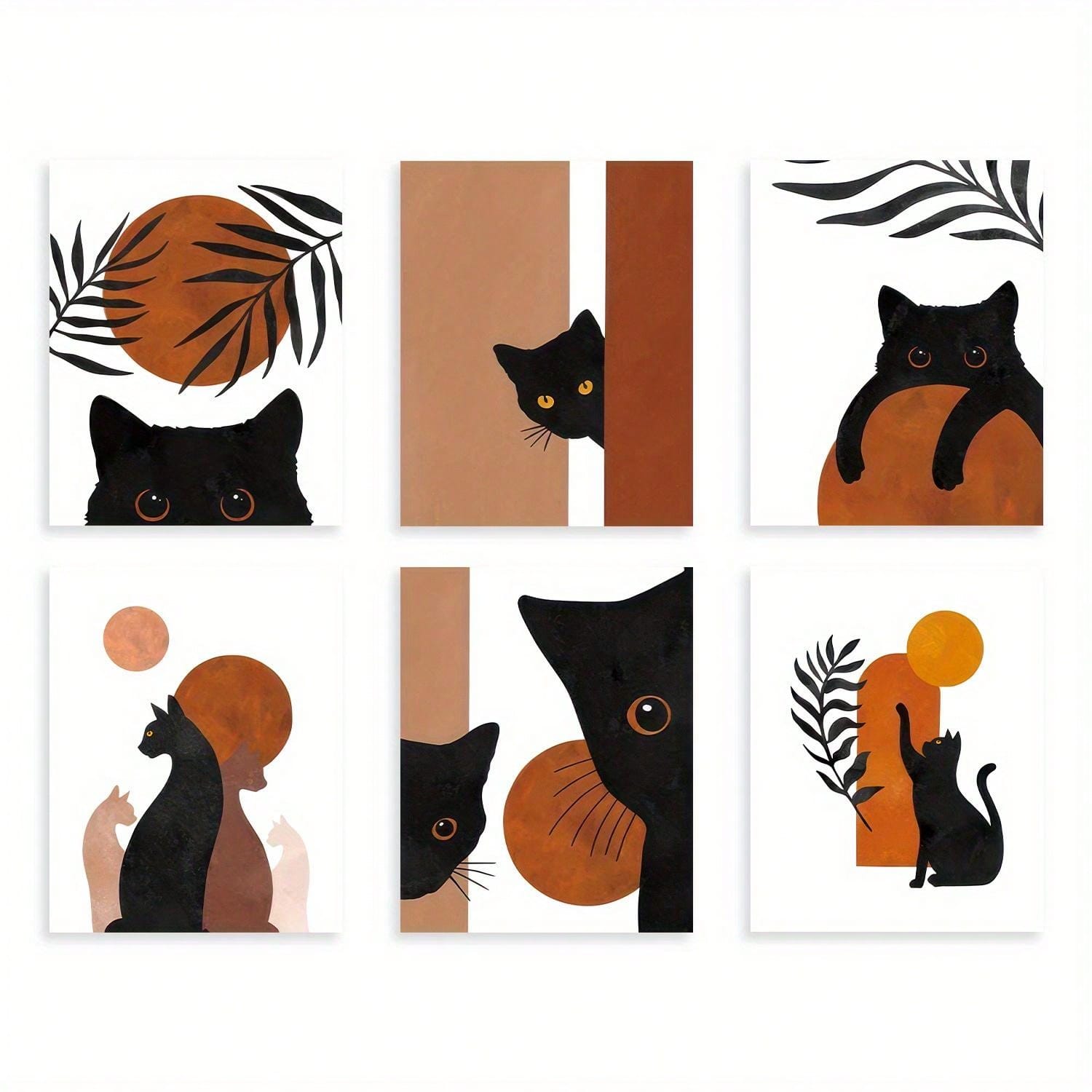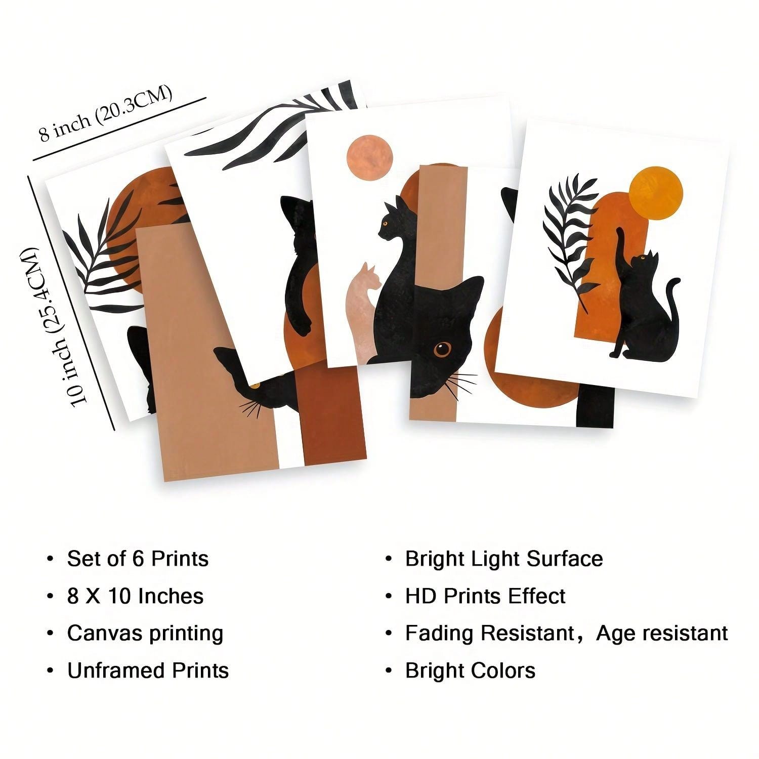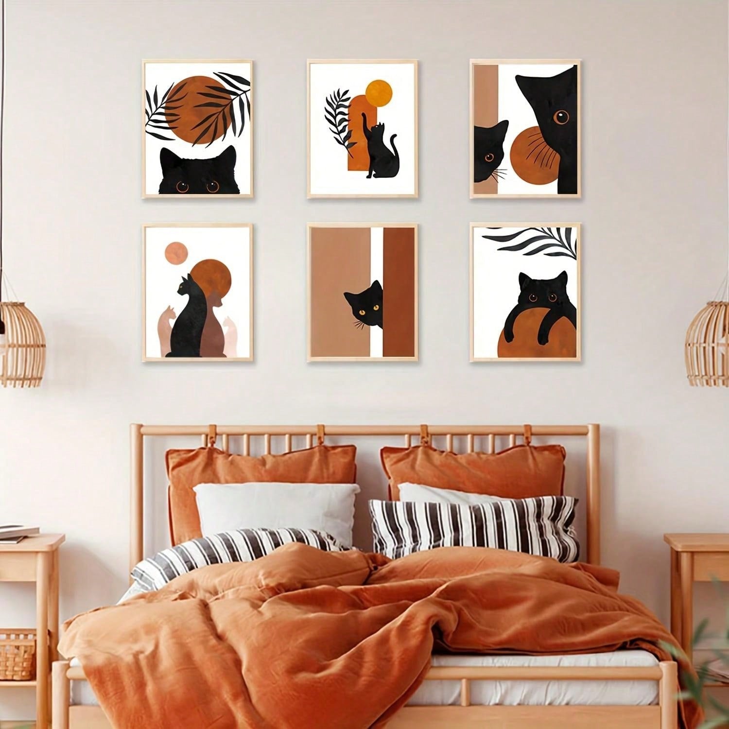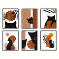 Mystical Meow: 6-Piece Boho Black Cat Canvas Wall Art Set for Every Room in Your Home