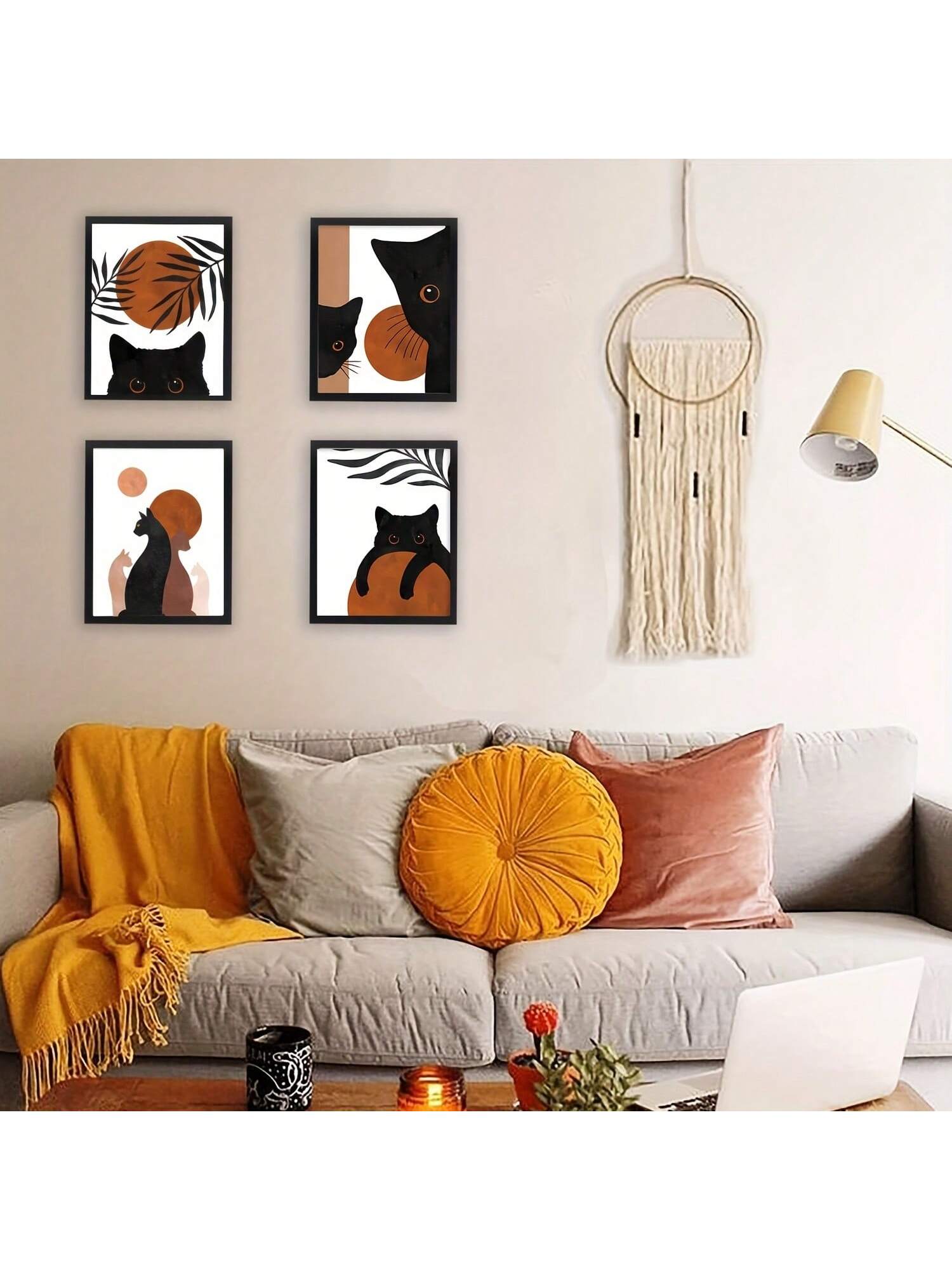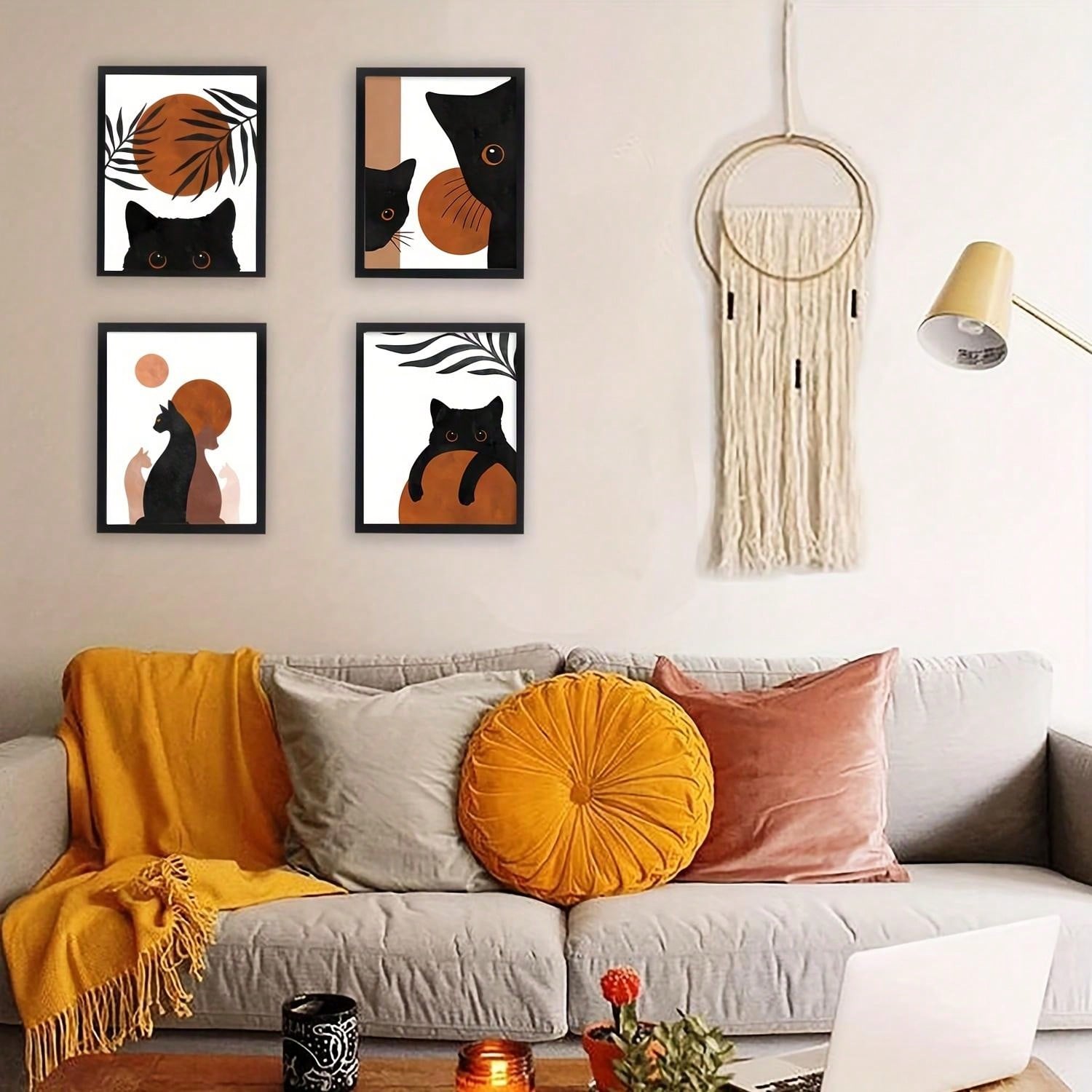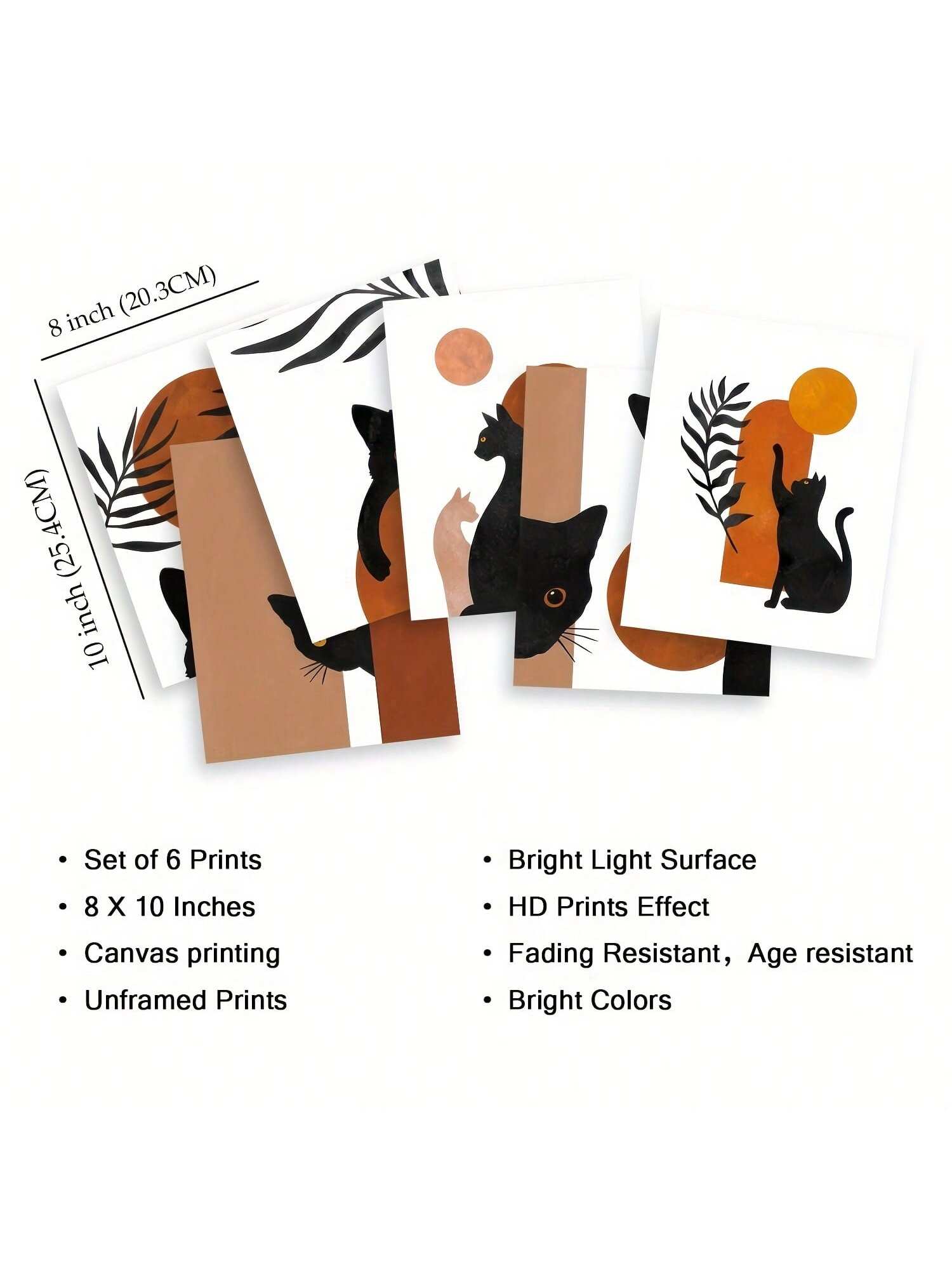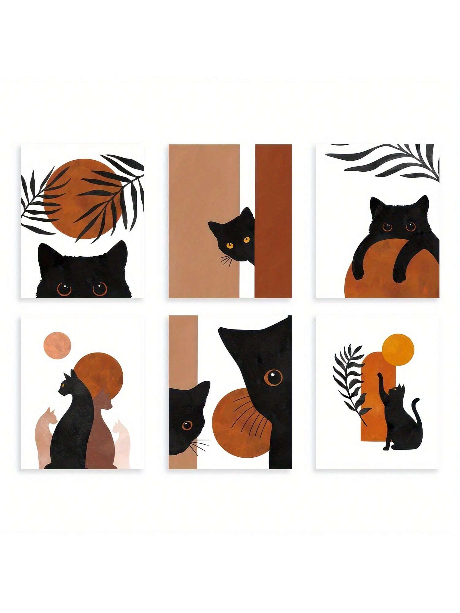 Mystical Meow: 6-Piece Boho Black Cat Canvas Wall Art Set for Every Room in Your Home