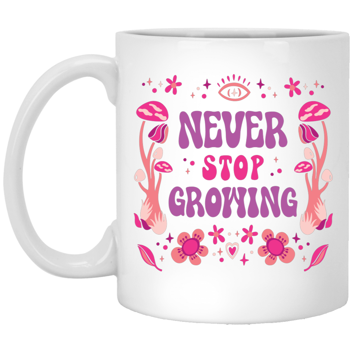 Never Stop Growing, Mushroom Groovy, Groovy Growing White Mug