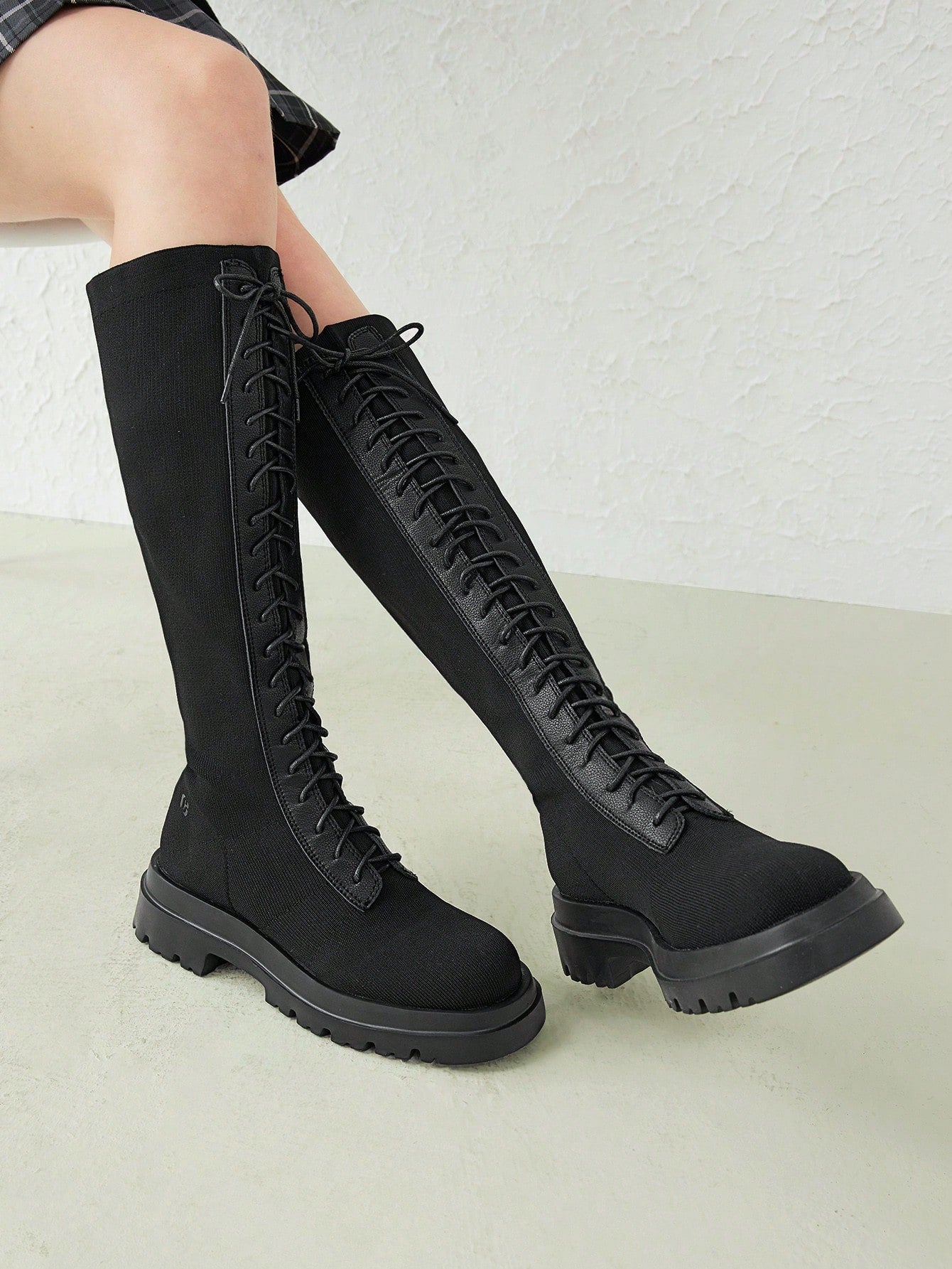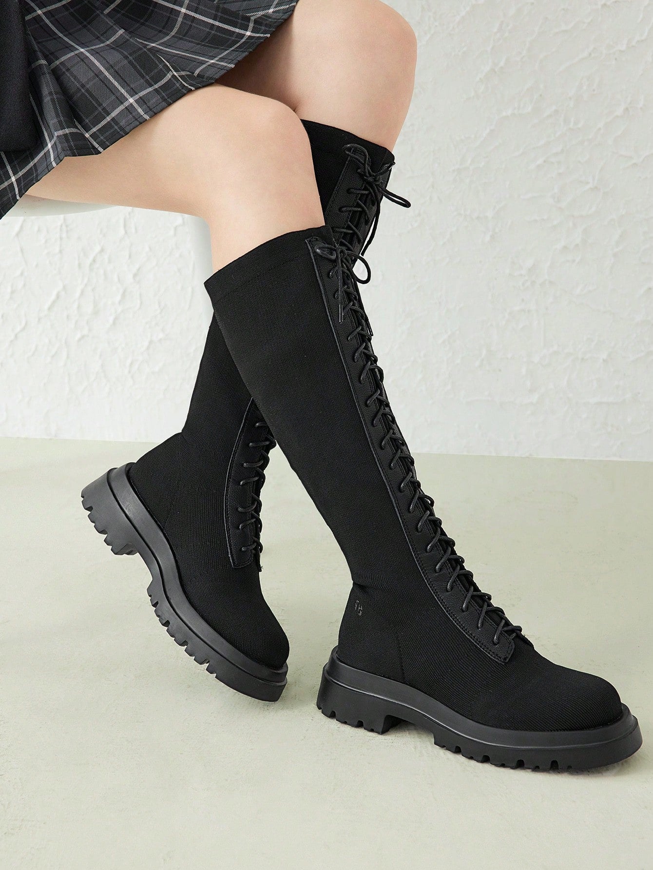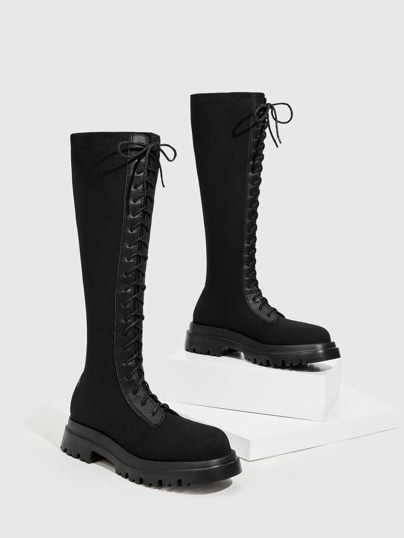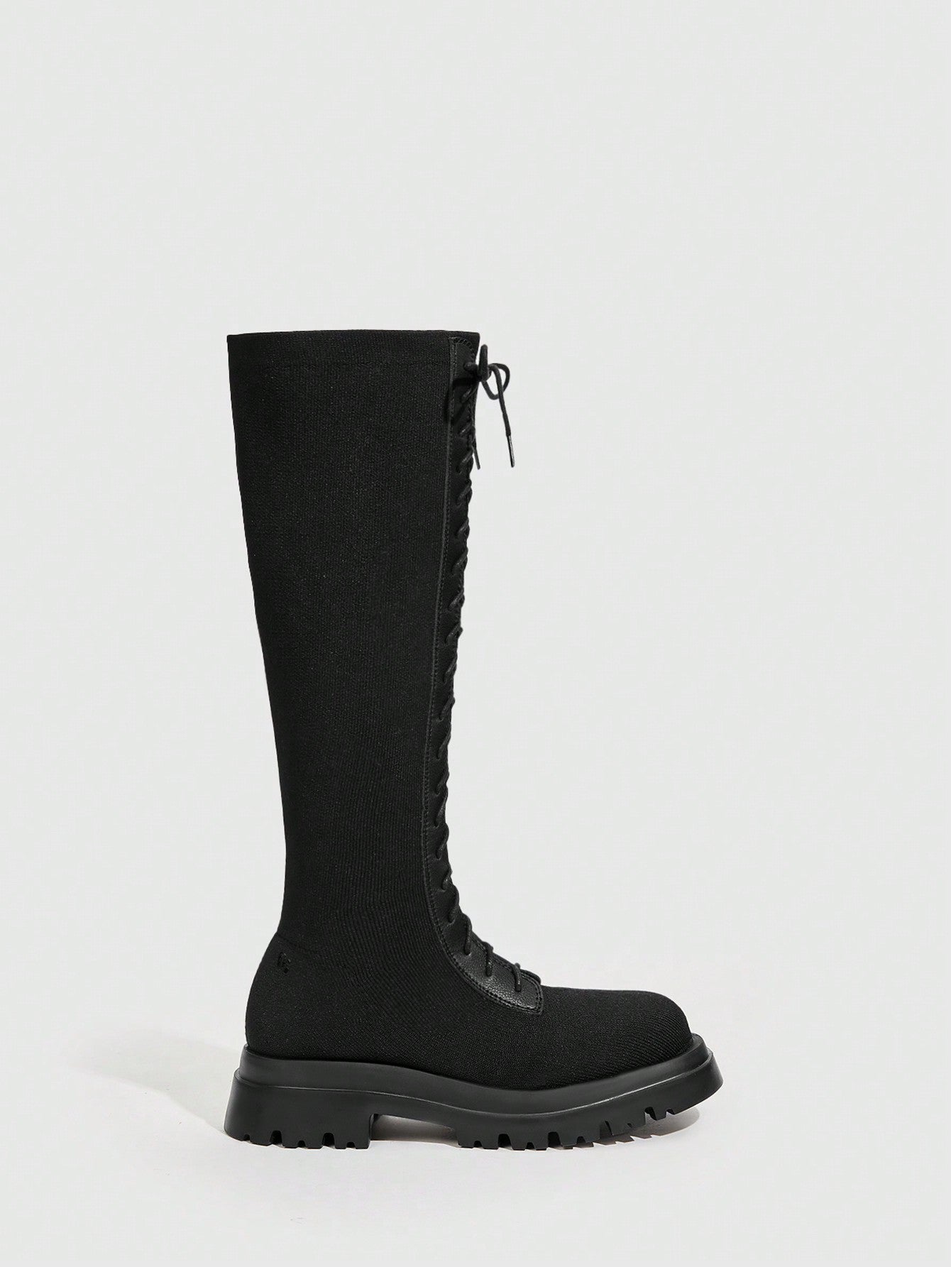 New Fashion: Slip-On Stretch Knee-High Black Sock Boots