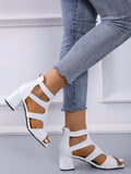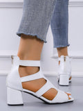 New Summer White High Heel Sandals with Back Zipper for Ladies