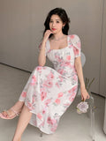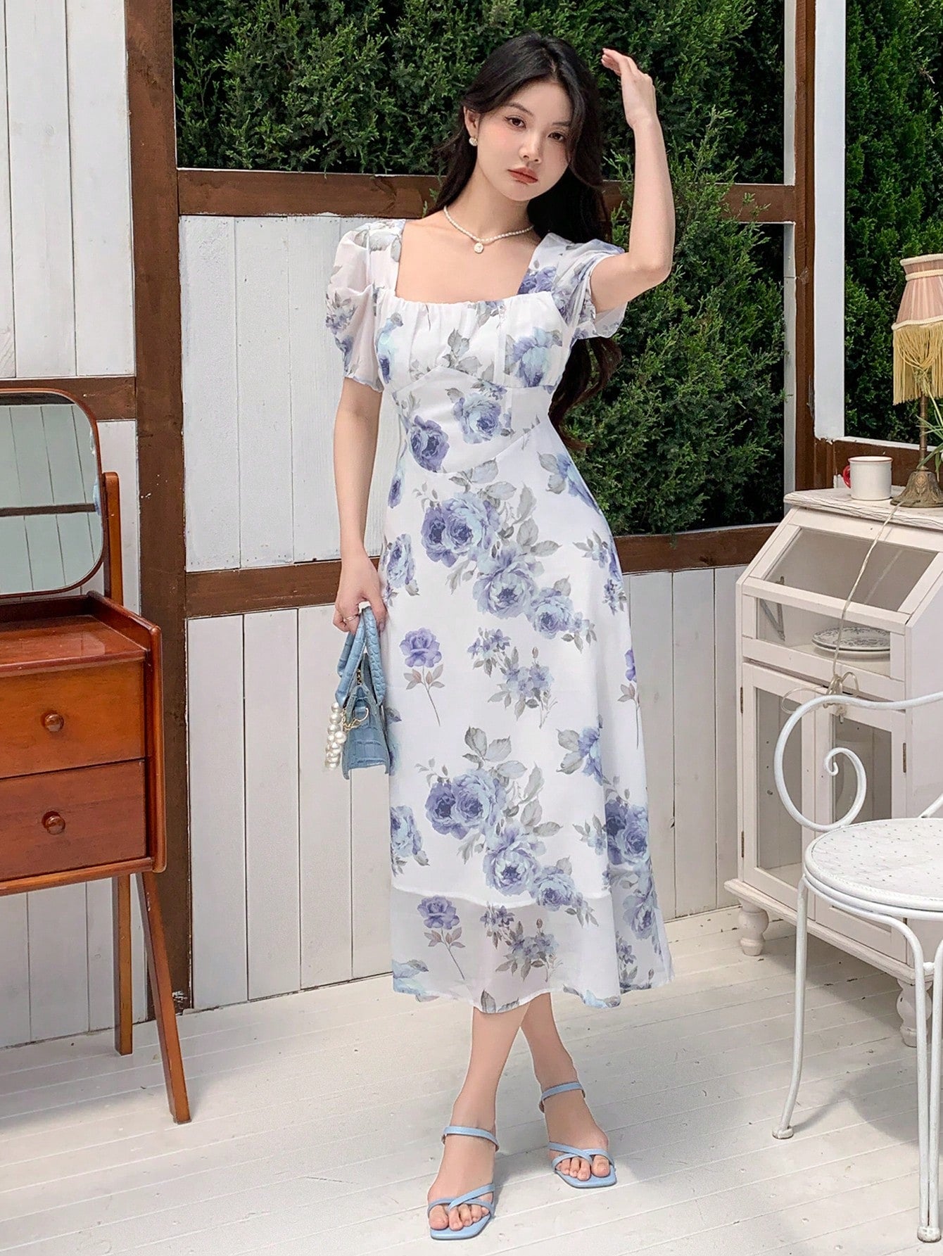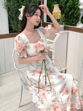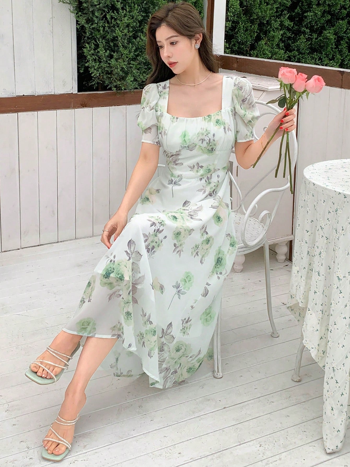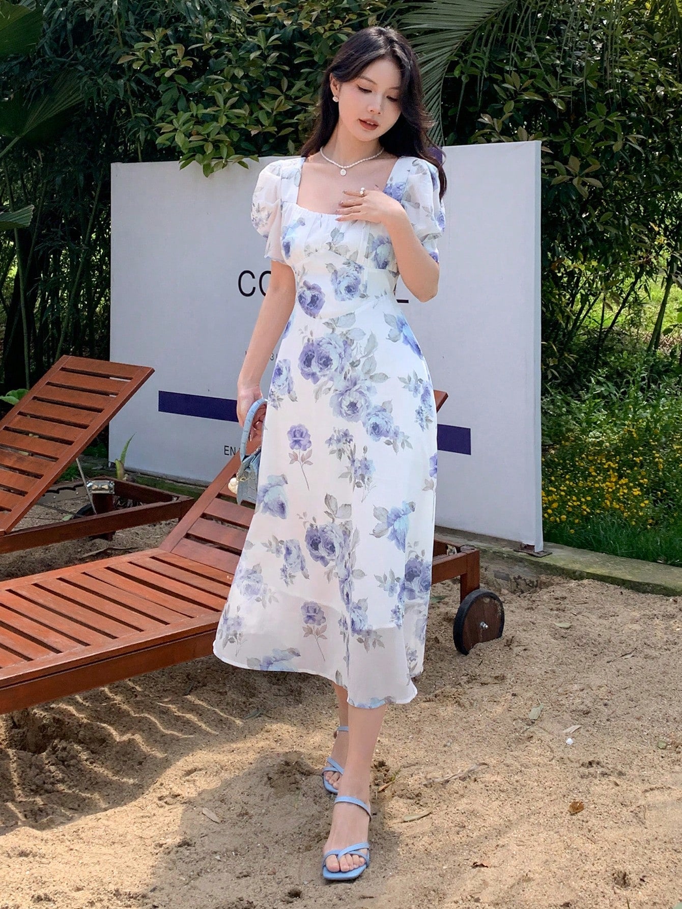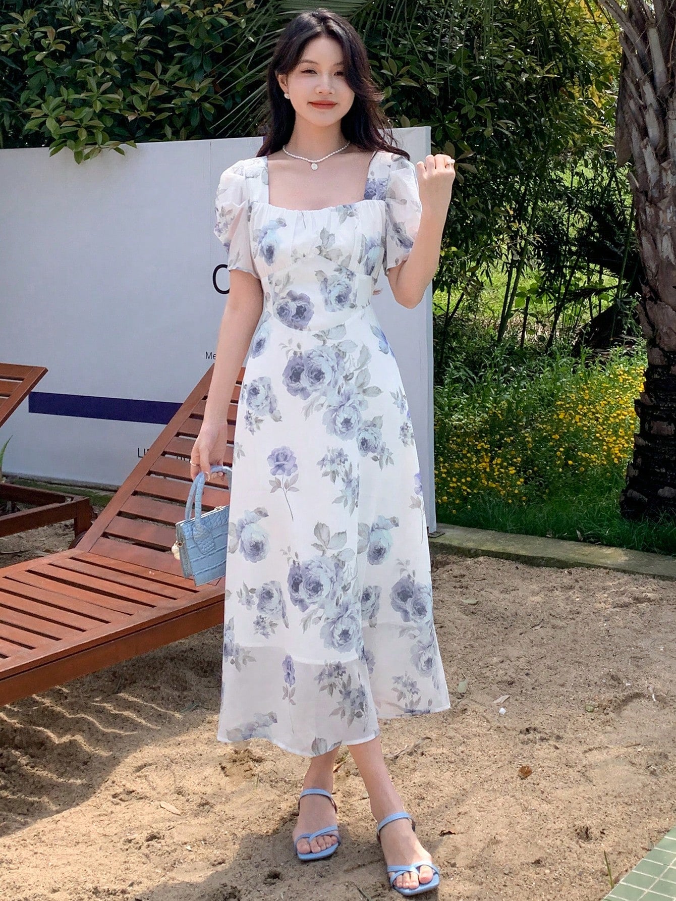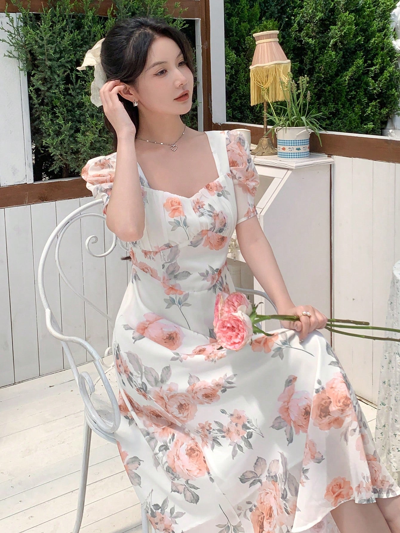 Nice Dreams: Summer Floral Printed Square Neck Short Sleeve Dress