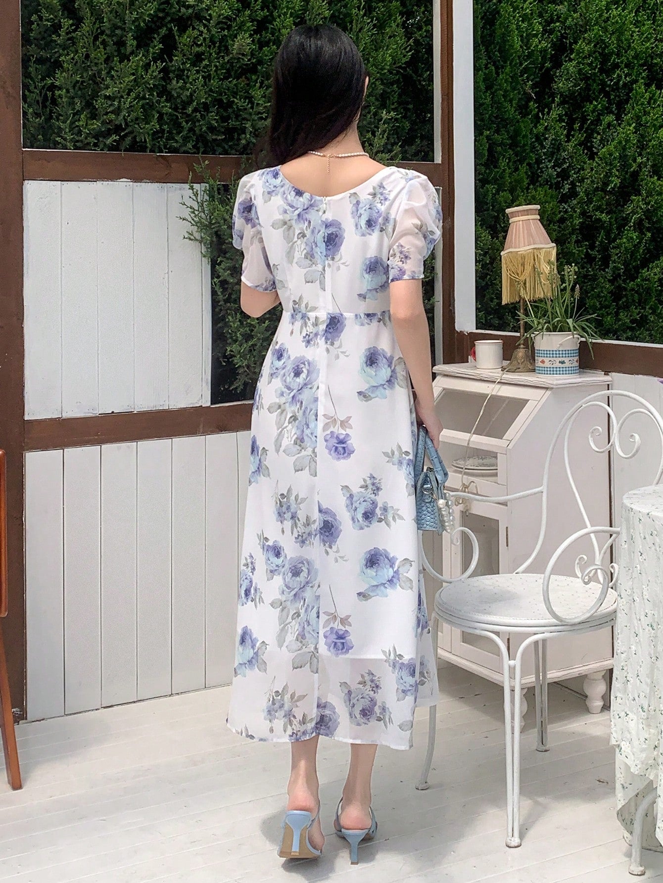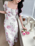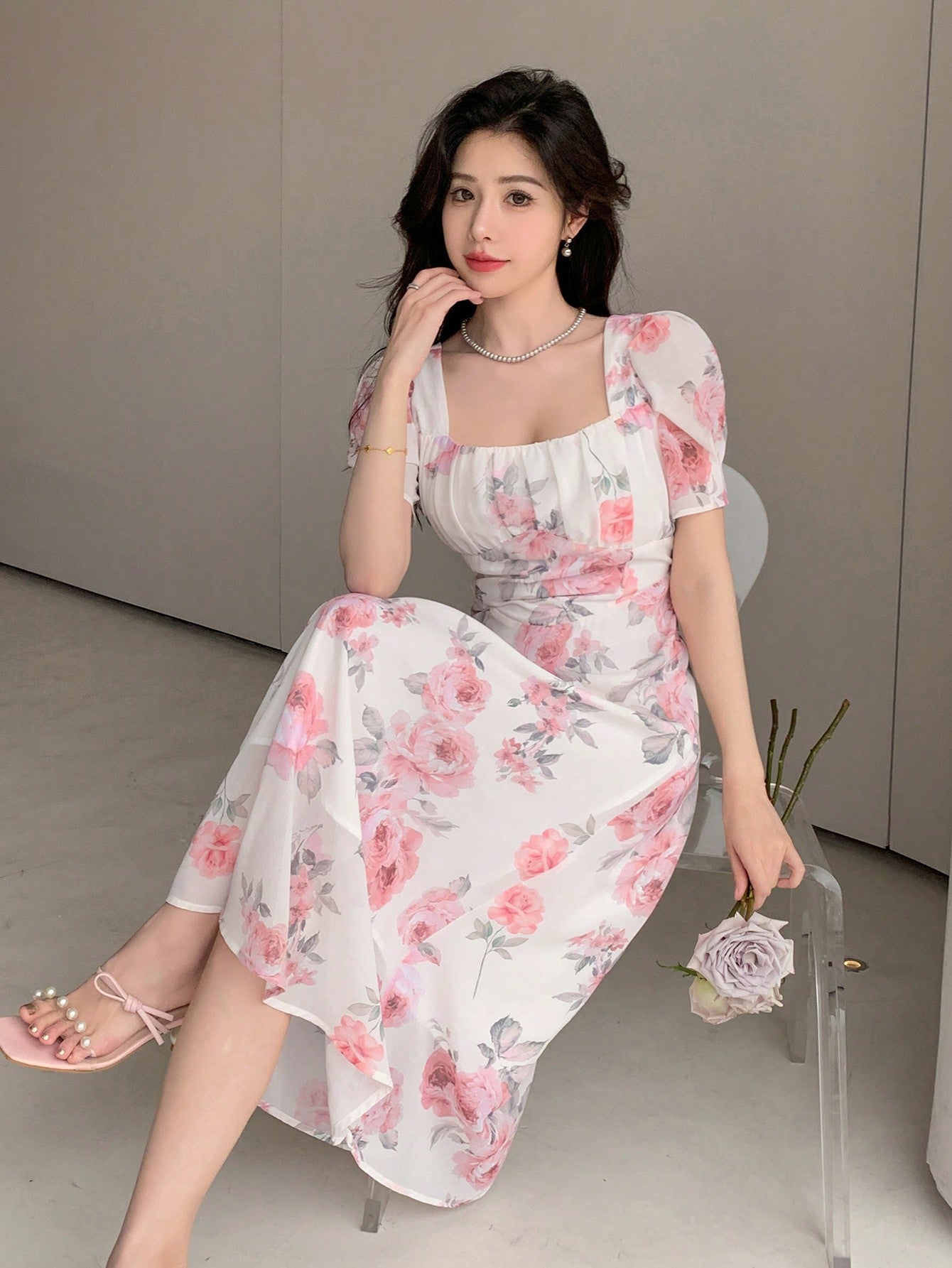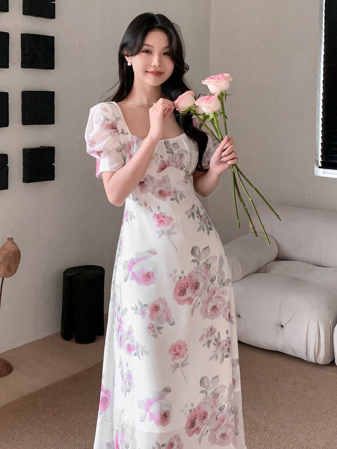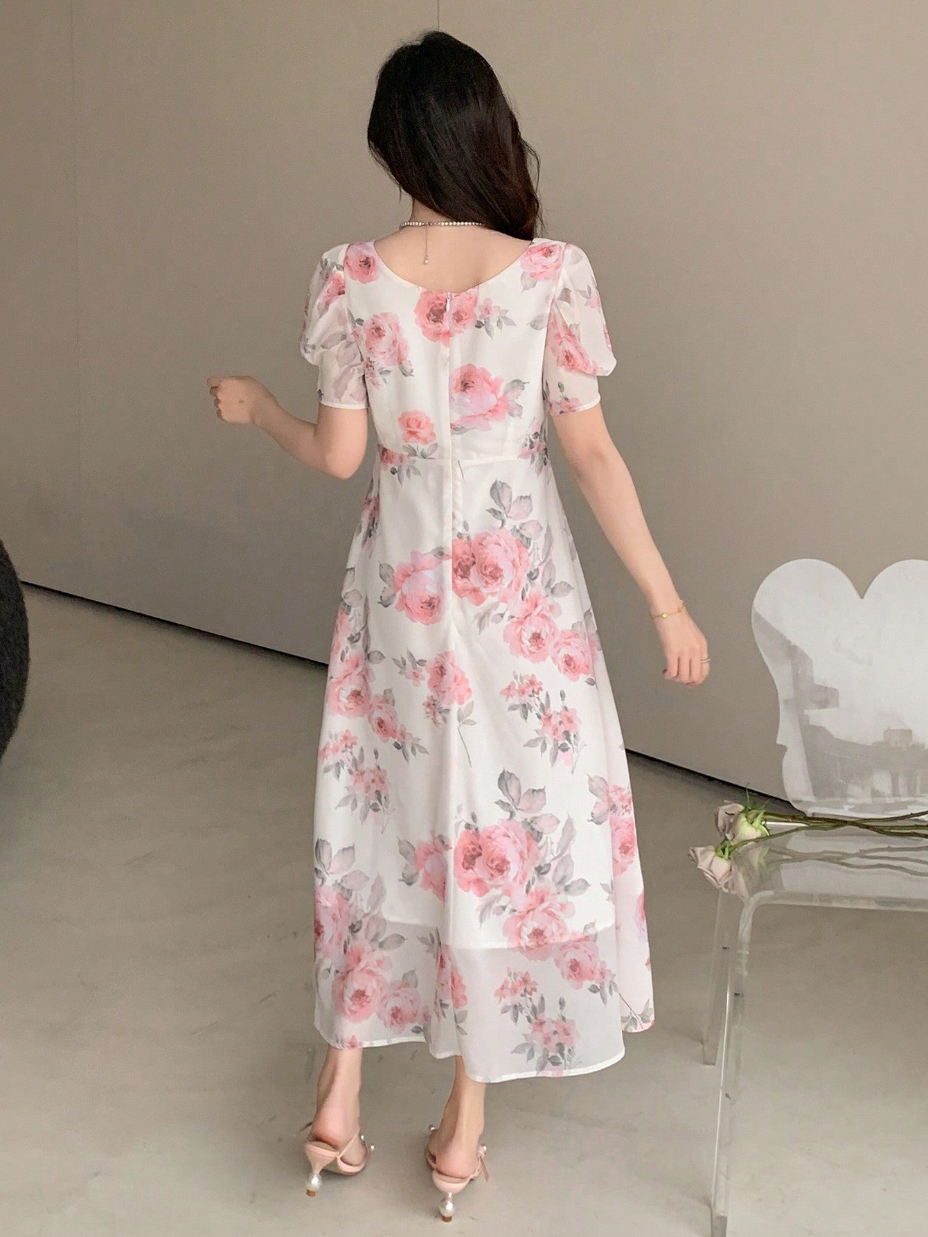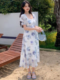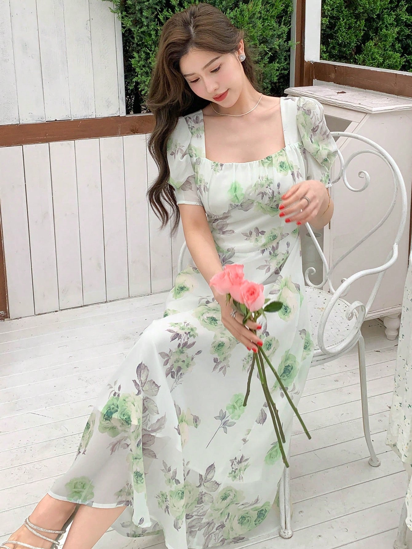 Nice Dreams: Summer Floral Printed Square Neck Short Sleeve Dress