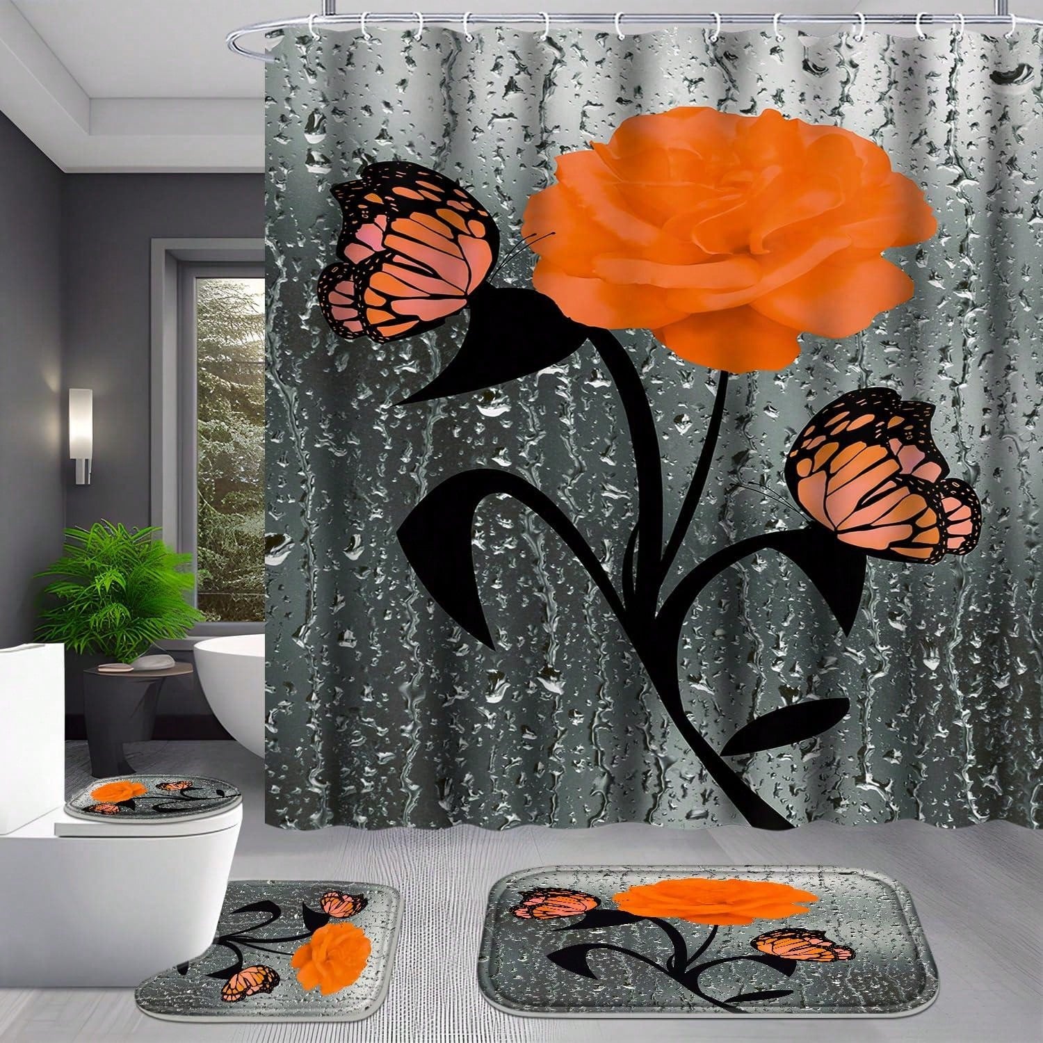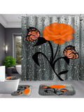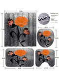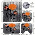 Orange Rose Romance: 4-Piece Bathroom Set with Shower Curtain, Rugs, Bath Mat, and Toilet Lid Cover