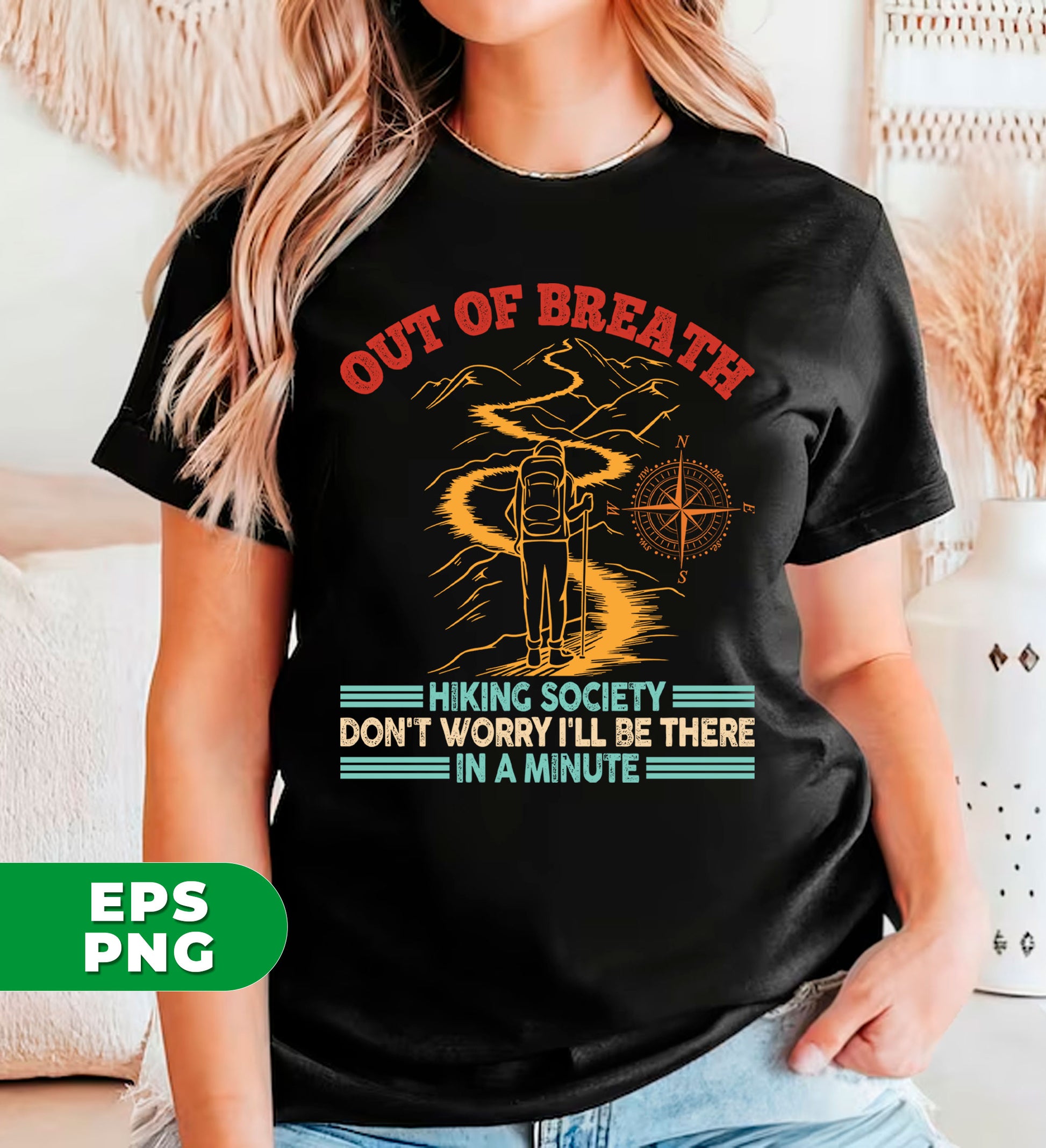 Out Of Breath, Hiking Society, Don't Worry I'll Be There In A Minute, Digital Files, Png Sublimation