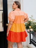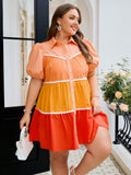 Patchwork Chic: Plus Size Short Sleeve Shirt Dress