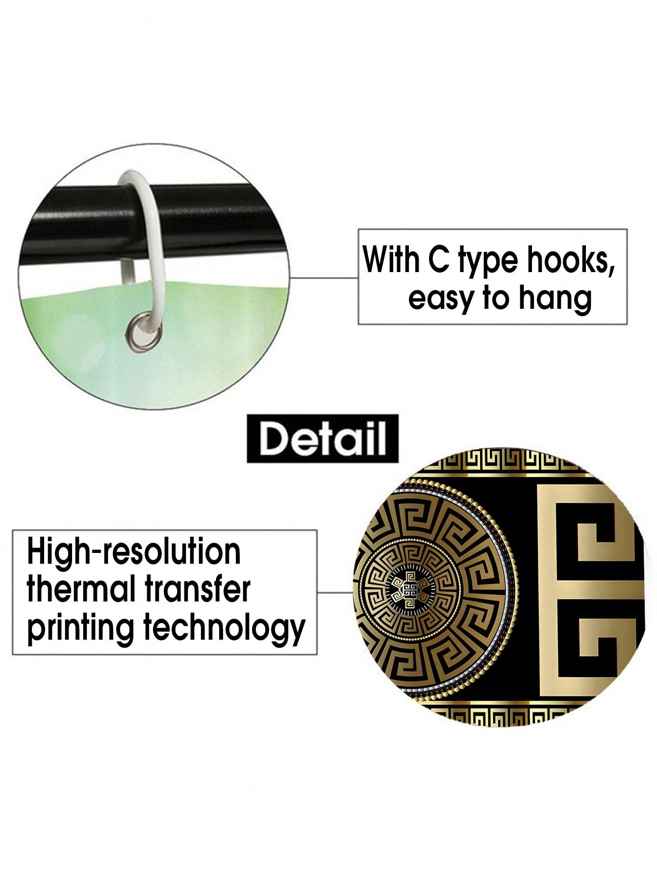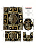 Pattern Printed Simple Style Shower Curtain and Mat Set: Bathroom Waterproof Accessories with 12 Hooks