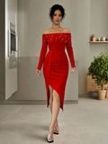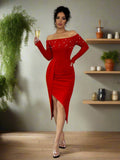 Pearl Perfection: Women's Open Shoulder Bodycon Dress