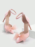 Pink Bow Point Toe Stiletto Heeled Sandals: Perfect for Valentine's Day and Summer Vacations