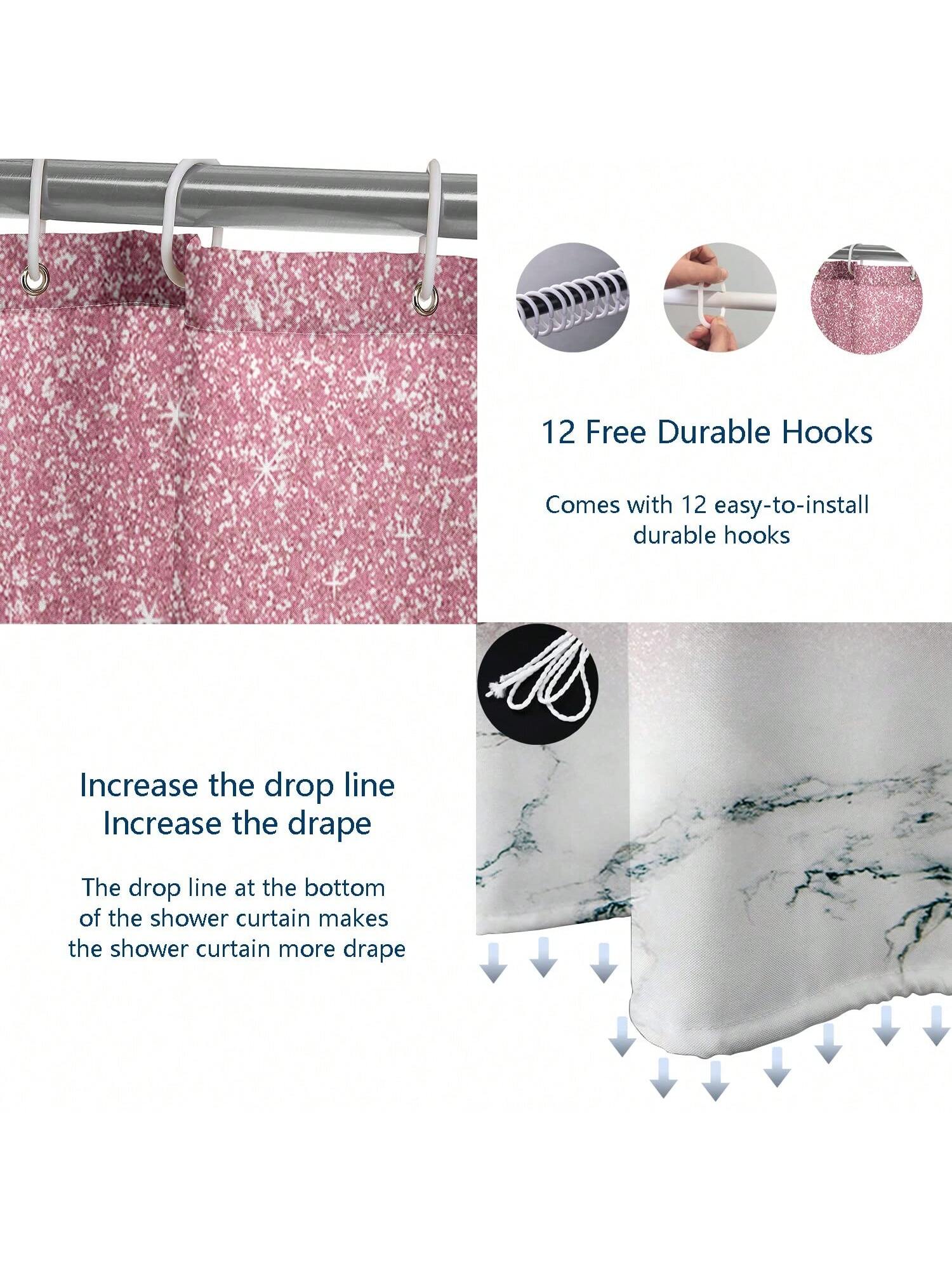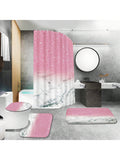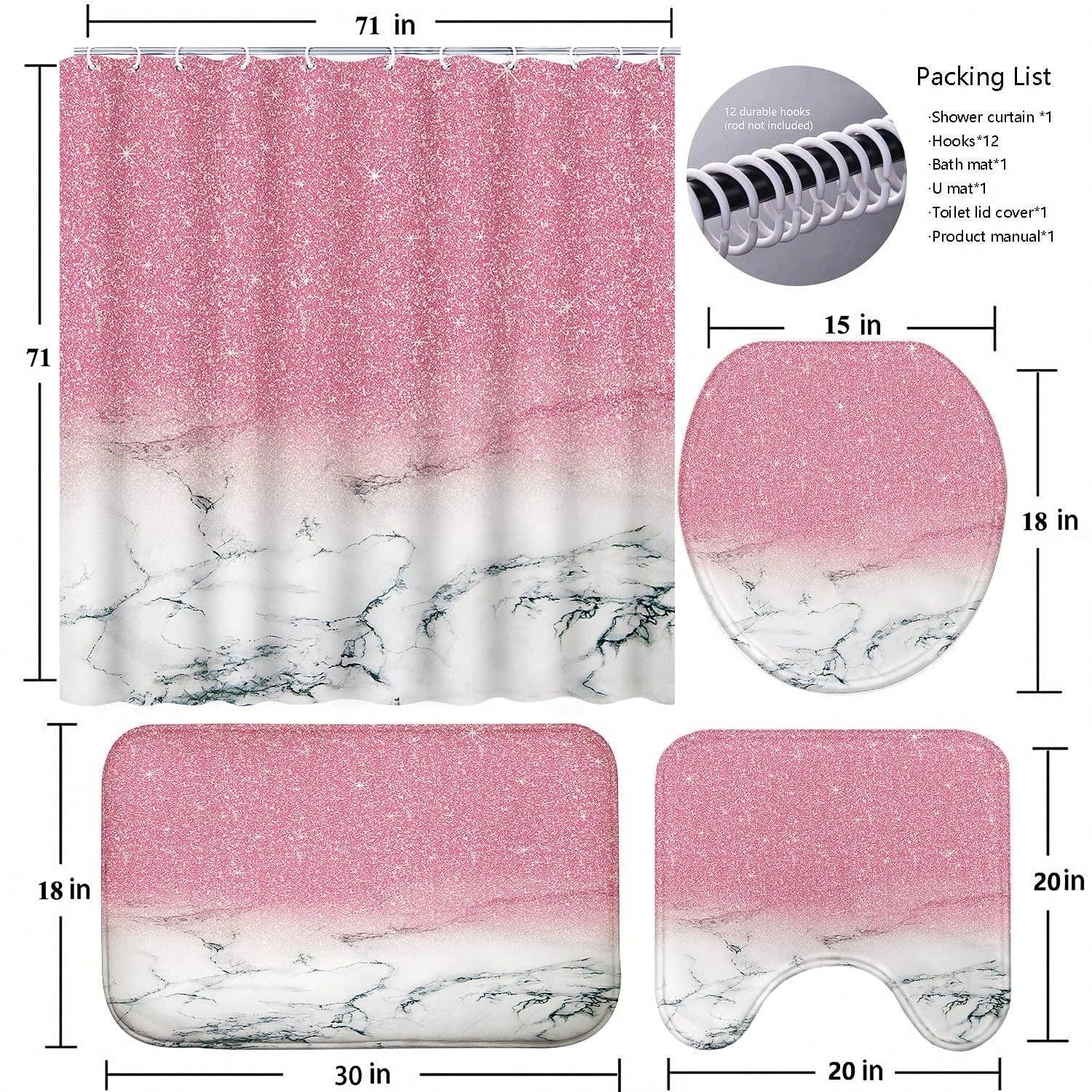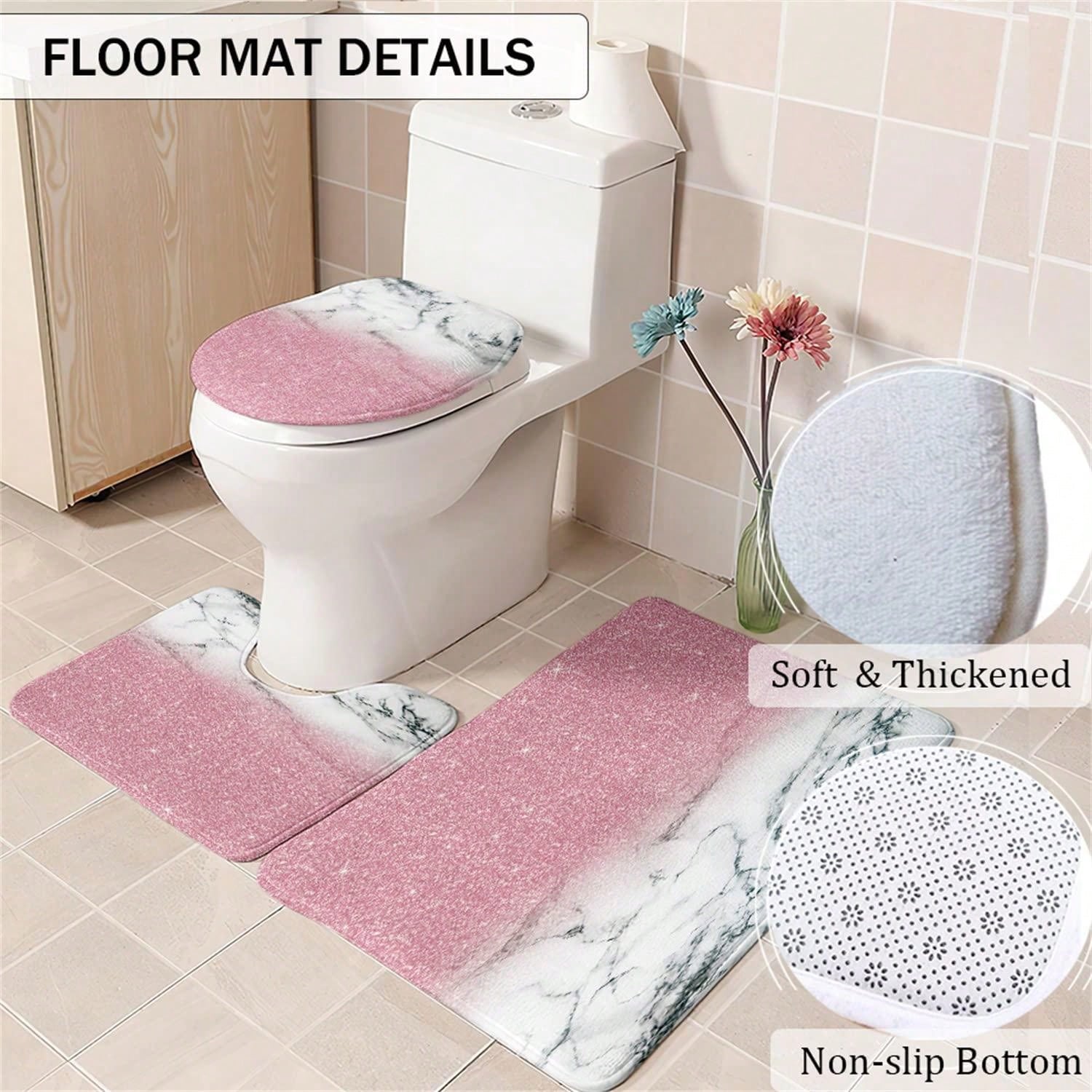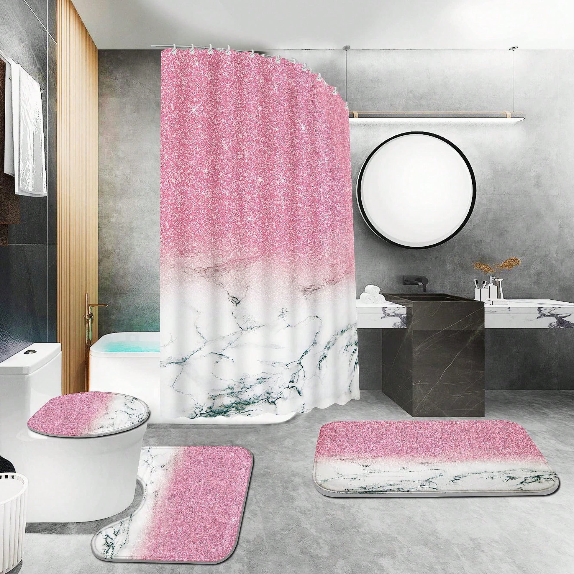 Pink Marble Bathroom Shower Curtain Set: Complete Bathroom Decor Package with Rugs and Mats