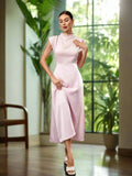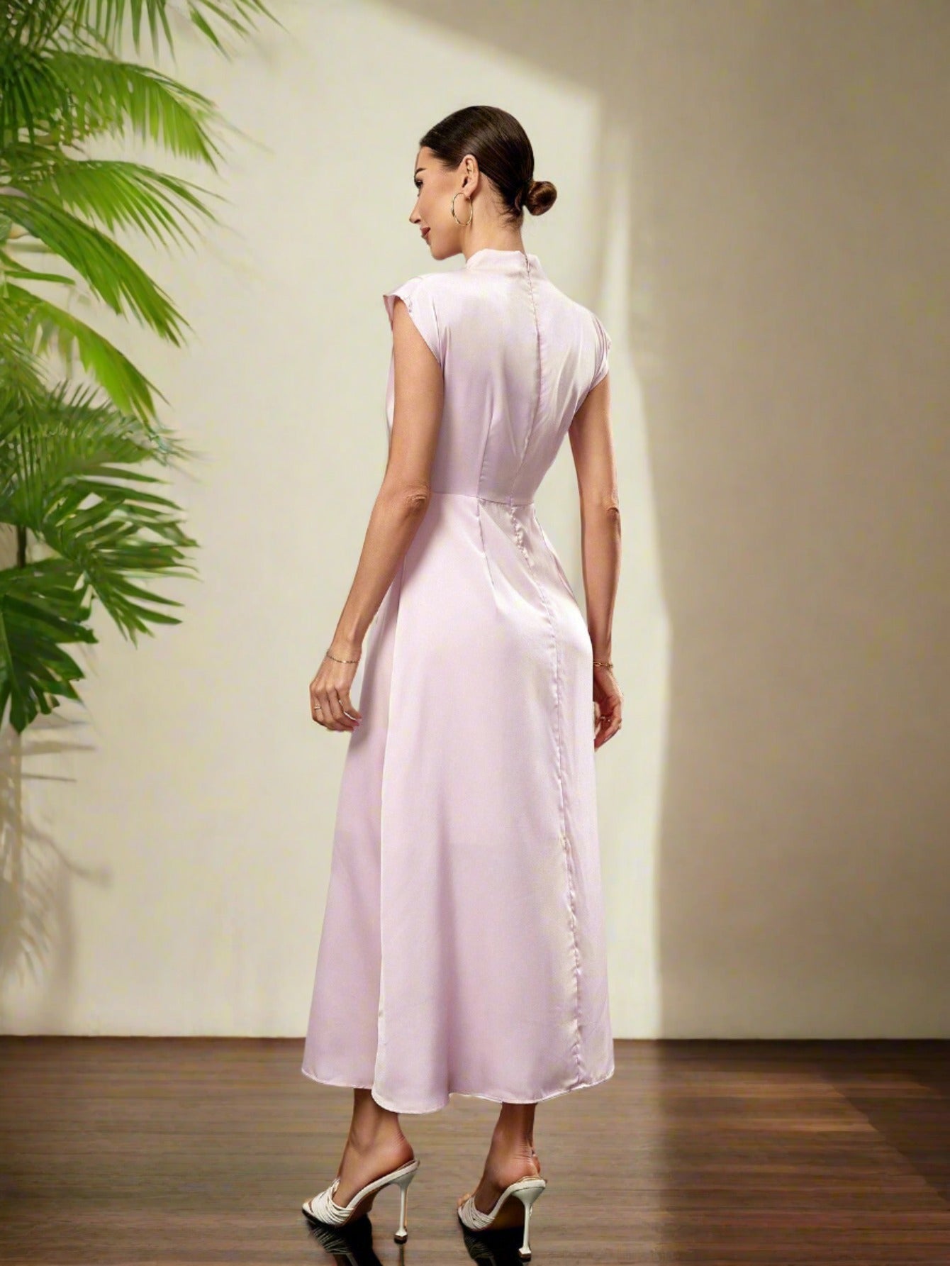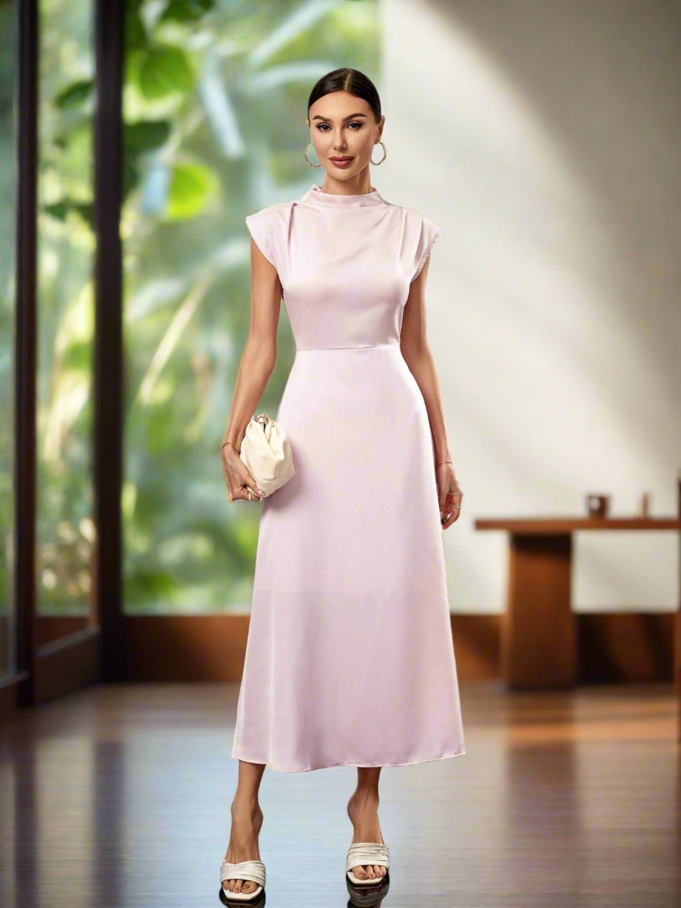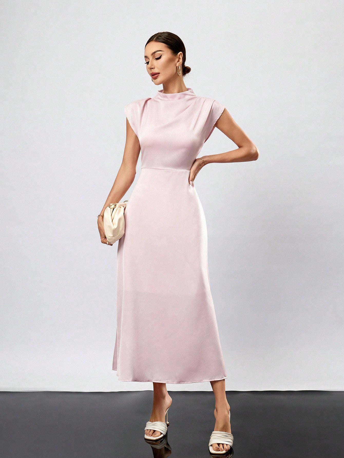 Pink Perfection: Solid Color Simple Half High Collar Dress for Women