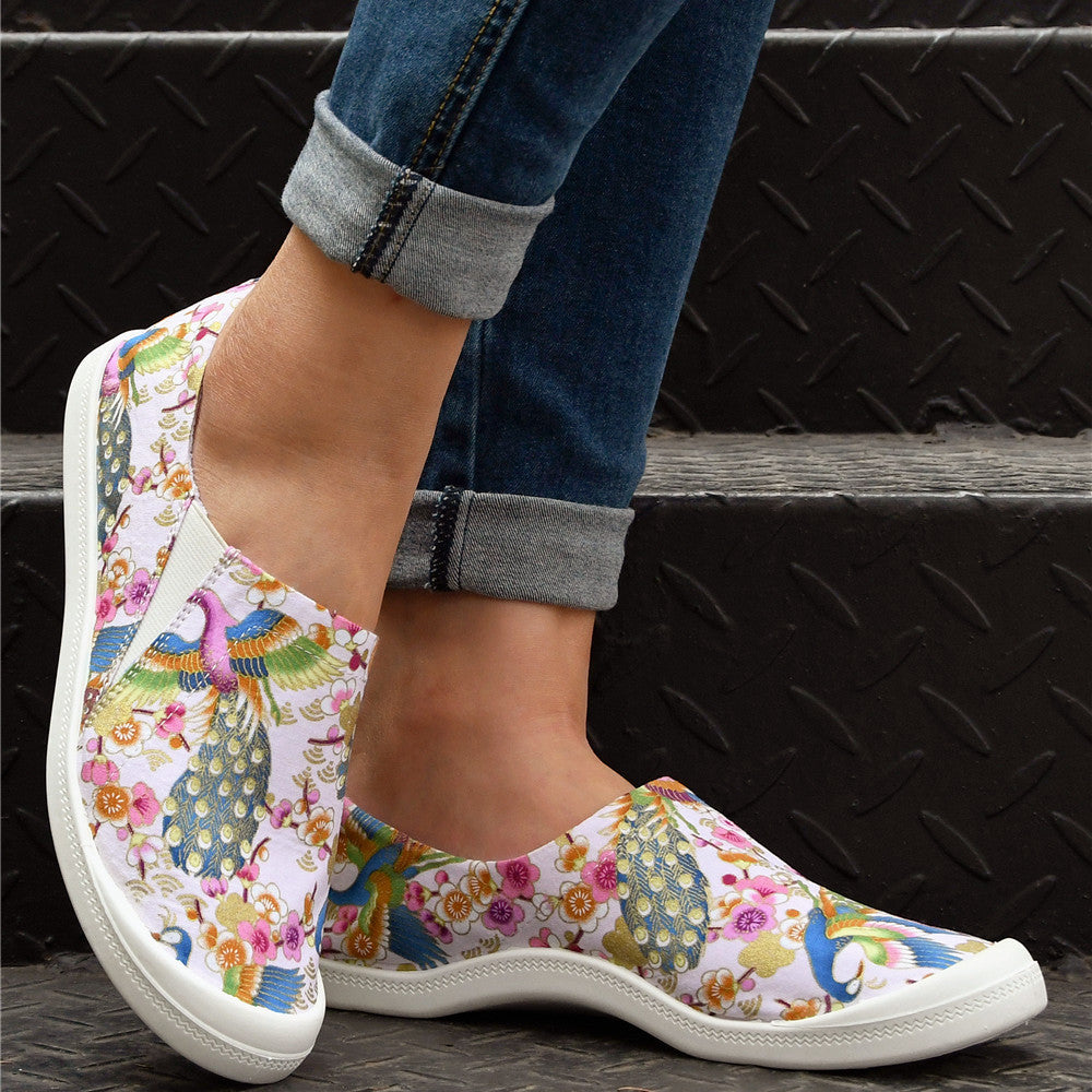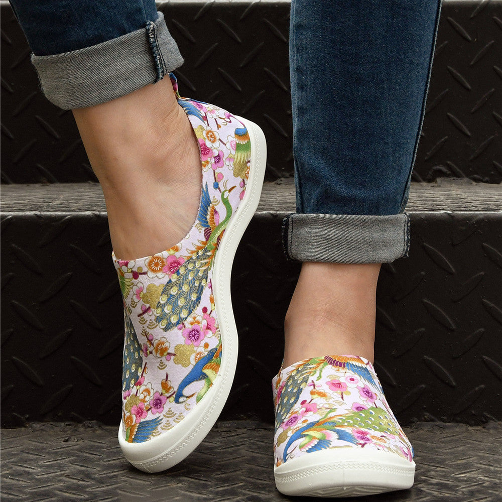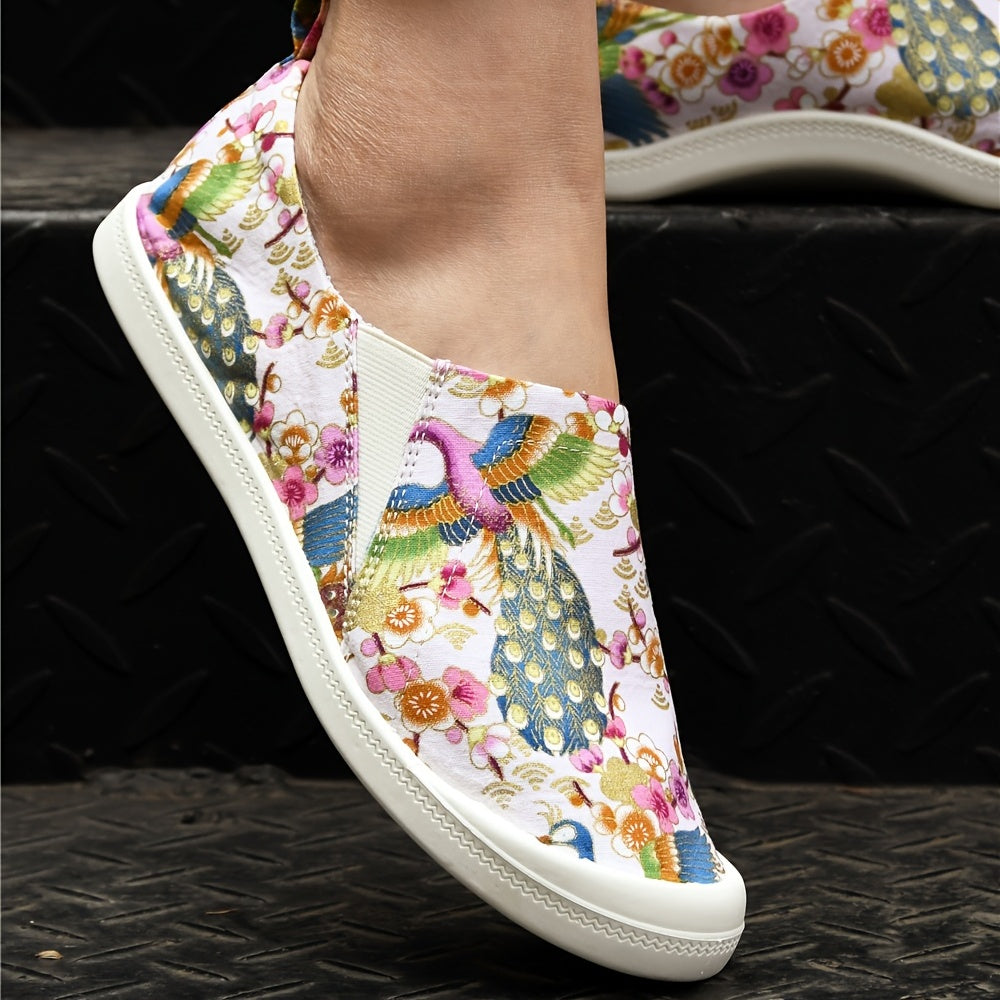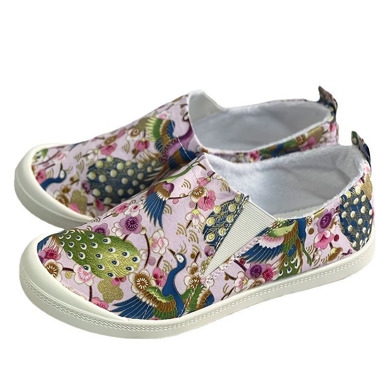 Pink Phoenix and Flower Print Women's Canvas Shoes - Comfortable and Non-Slip Casual Walking Shoes