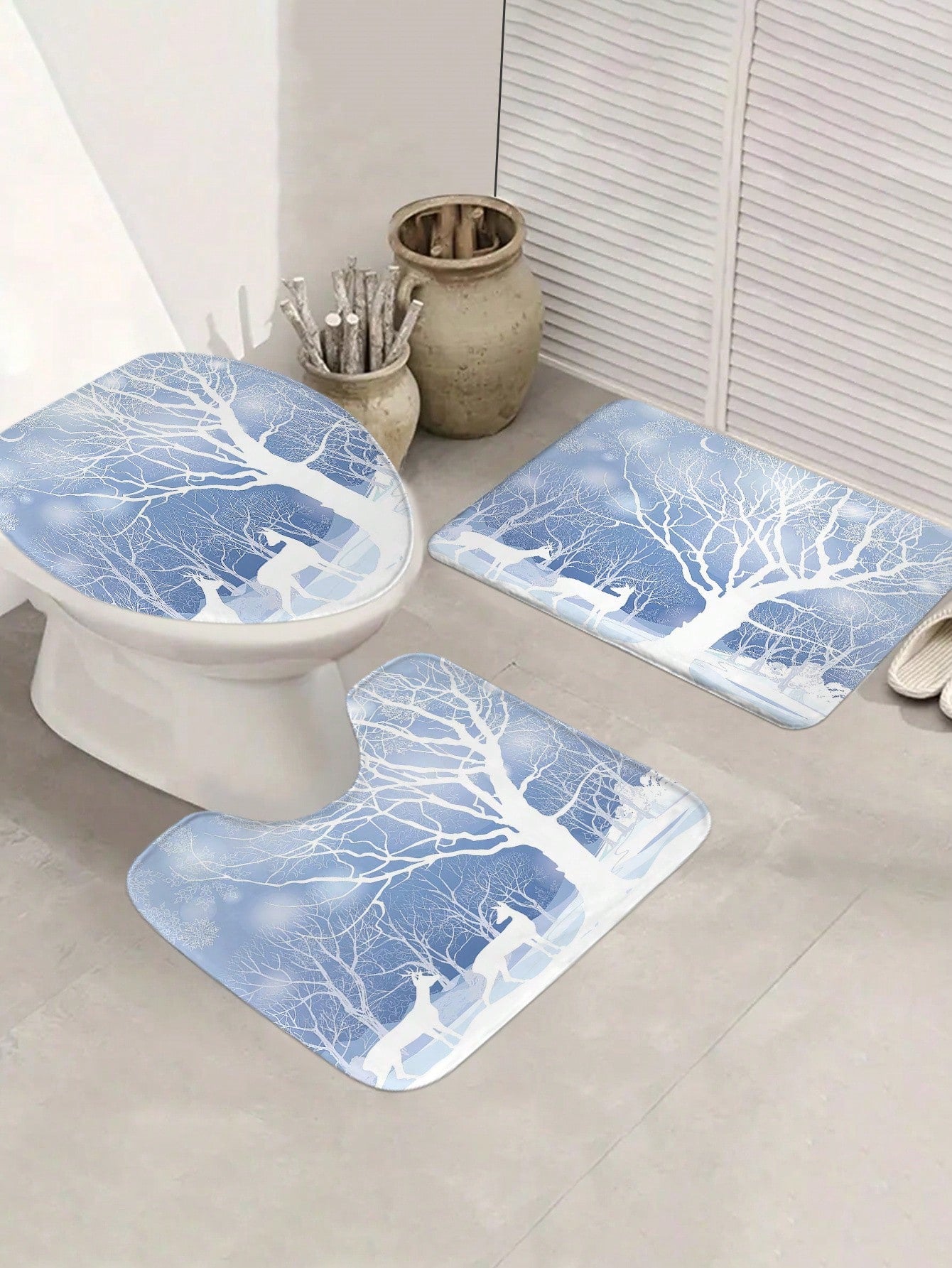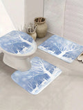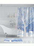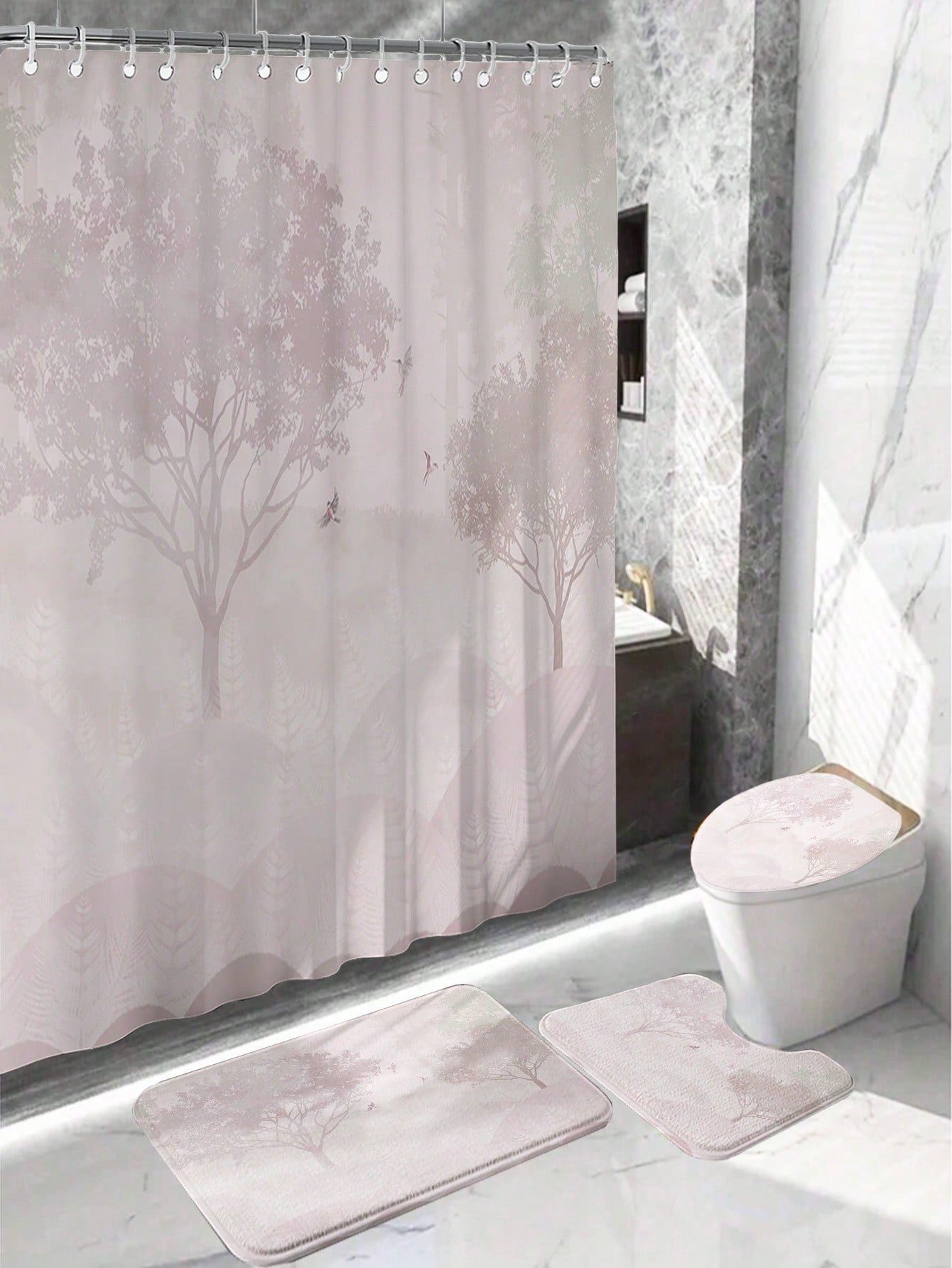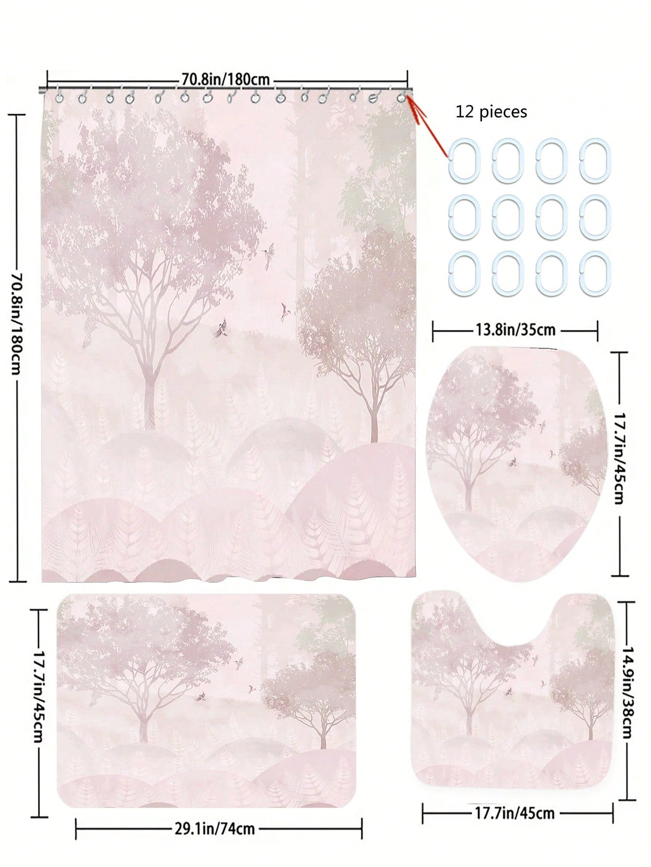 Pink Tree Print Bathroom Shower Set: Includes Curtain, Bath Mat, and Hooks for a Stylish and Functional Bathroom Makeover