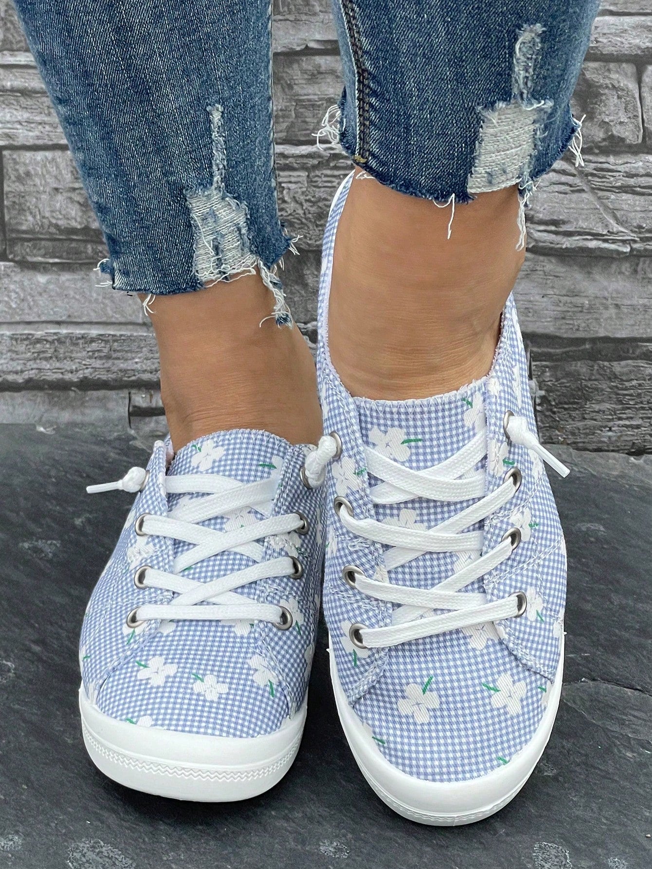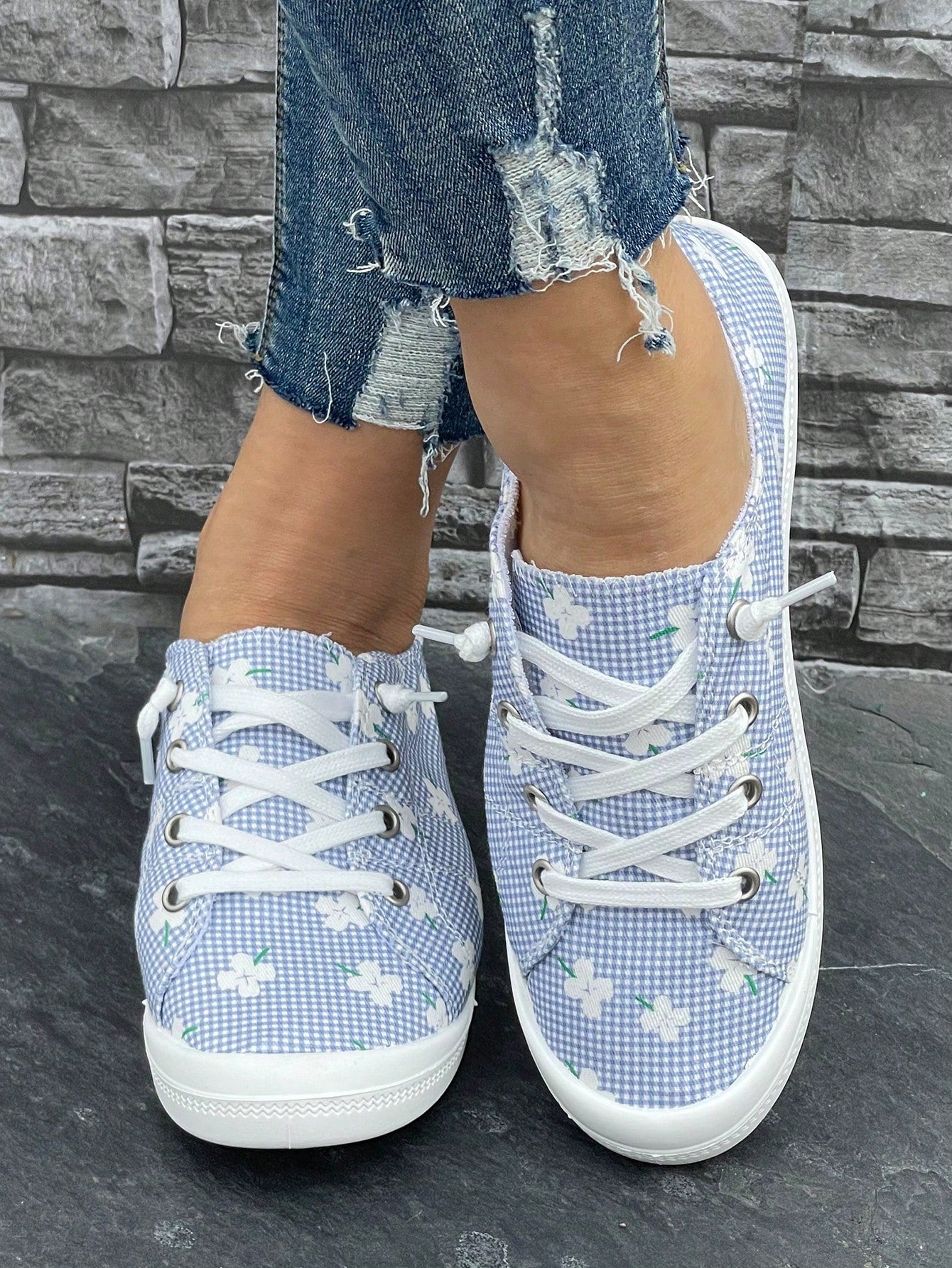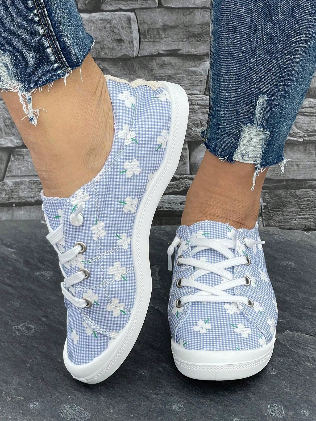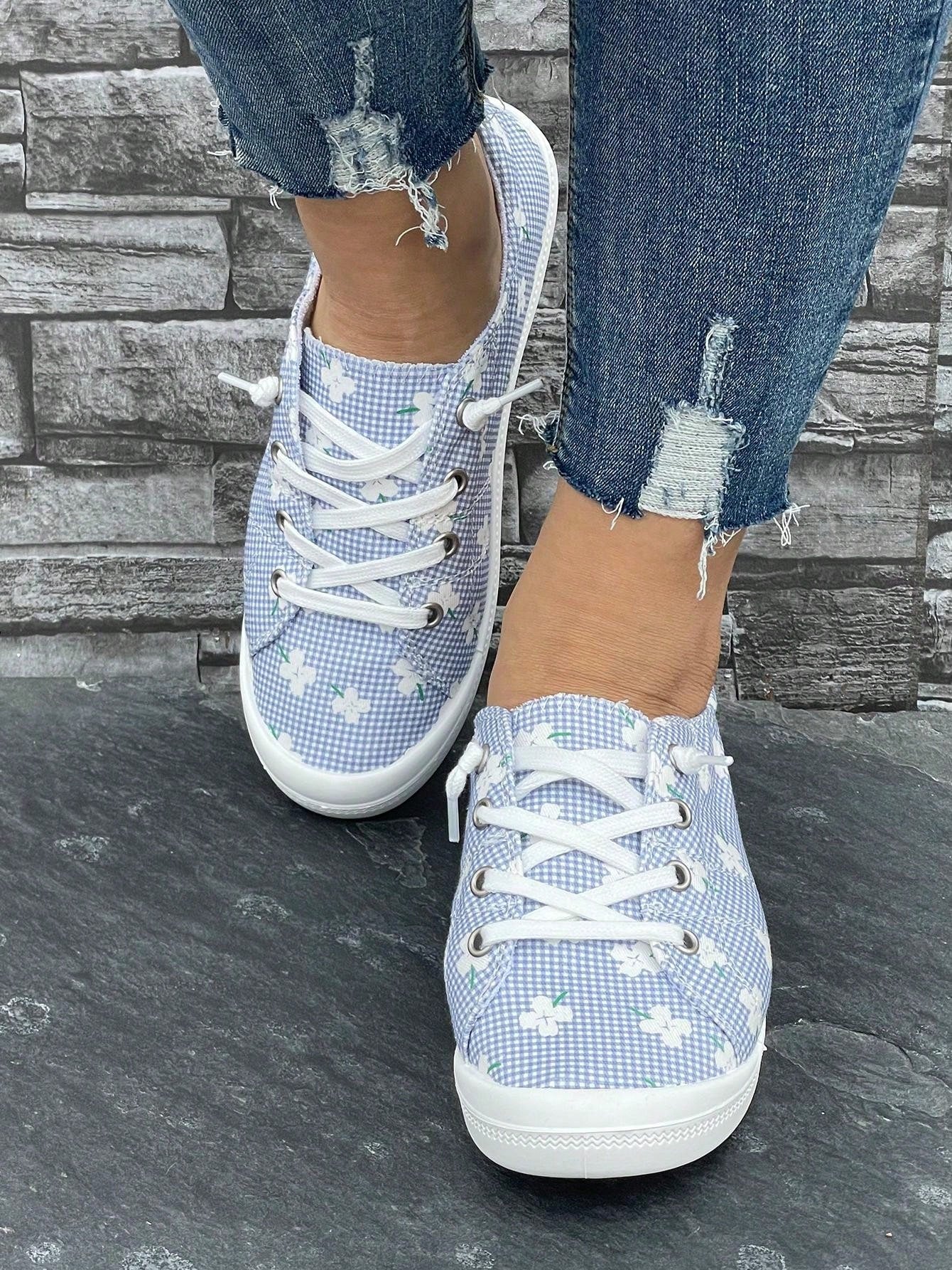 Plaid Print Slip-On Athletic Running Shoes: Stylish and Comfortable