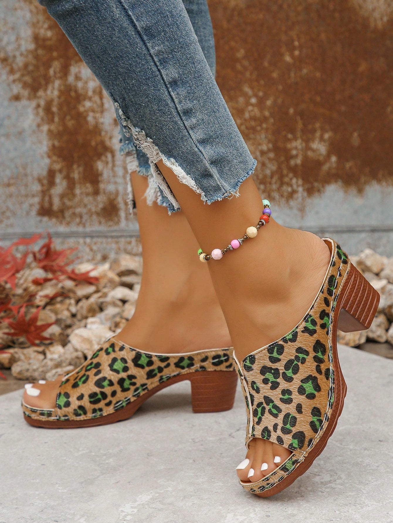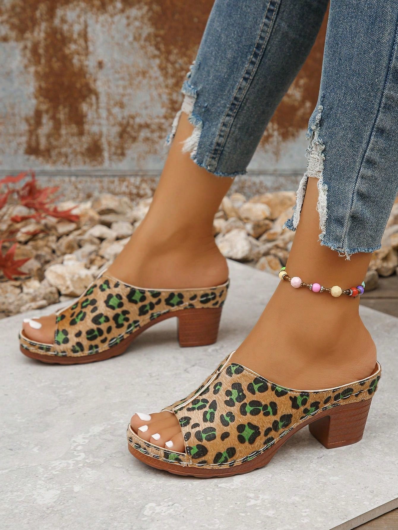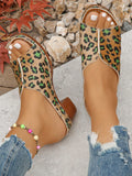 Plus Size Summer Fashion Leopard Heel Sandals: Slip into Style and Comfort all Day