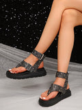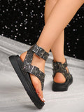 Plus Size Women's Chic Double Buckle Wedge Sandals with Thick Platform Sole