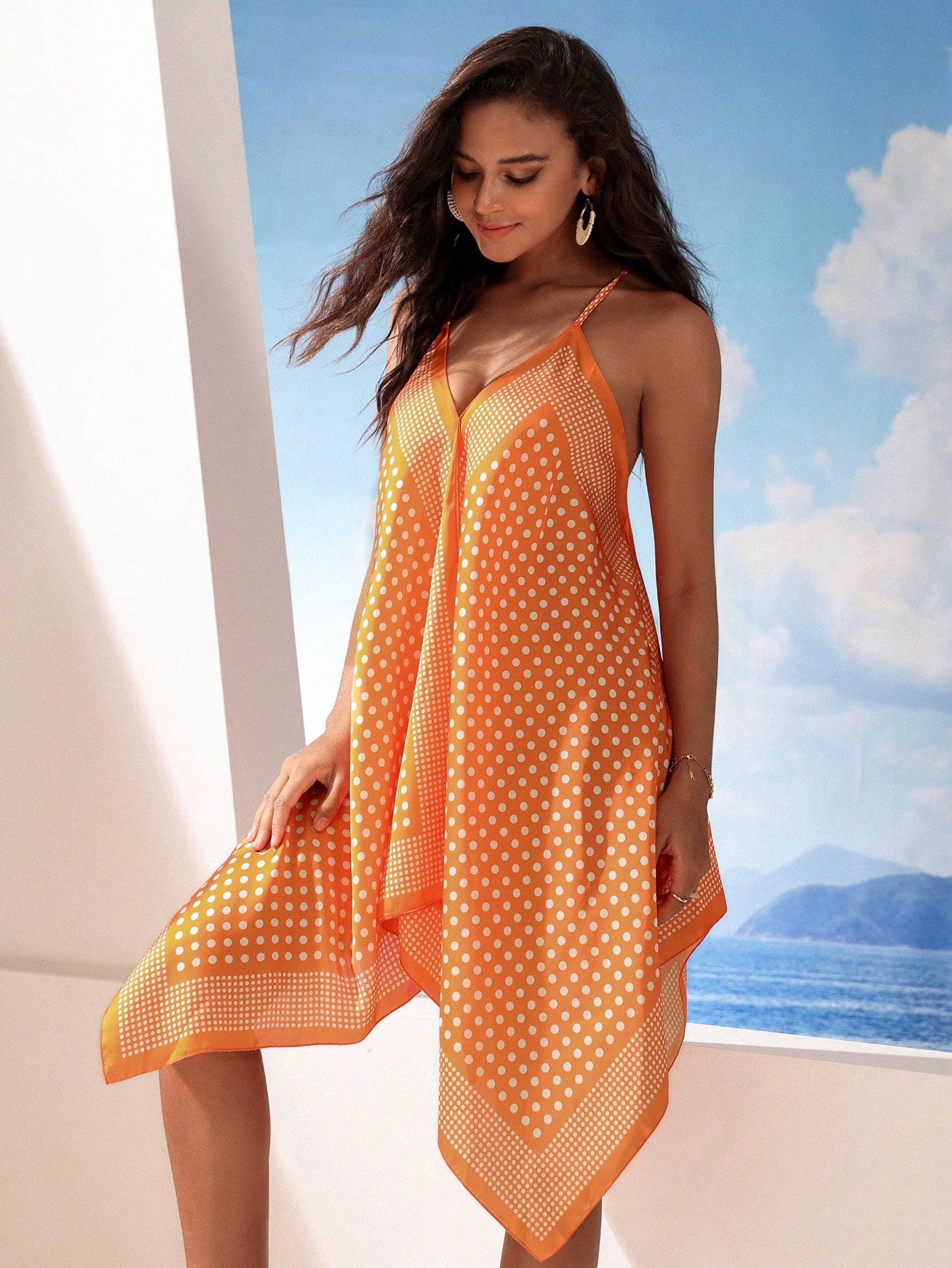 Polka Dot Paradise: Asymmetric Hem Halter Neck Dress