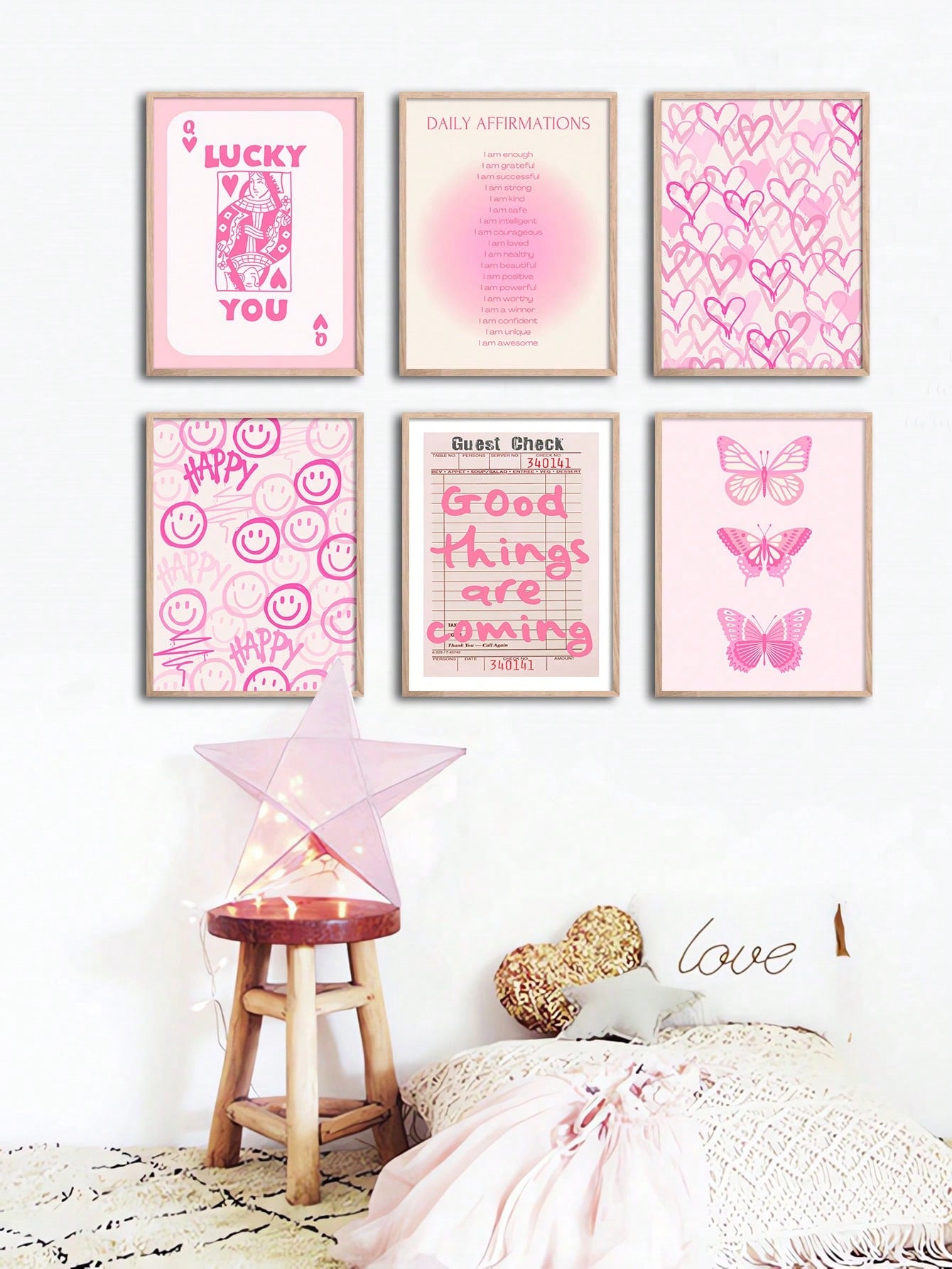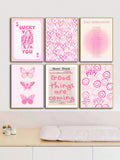 Positivity in Pink: Set of 6 Preppy Art Trendy Posters for Modern Living Spaces