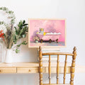 Poster Of Humorous Pop Art Tiger Relaxing In Bubble Bath In Vintage Pink Clawfoot Tub